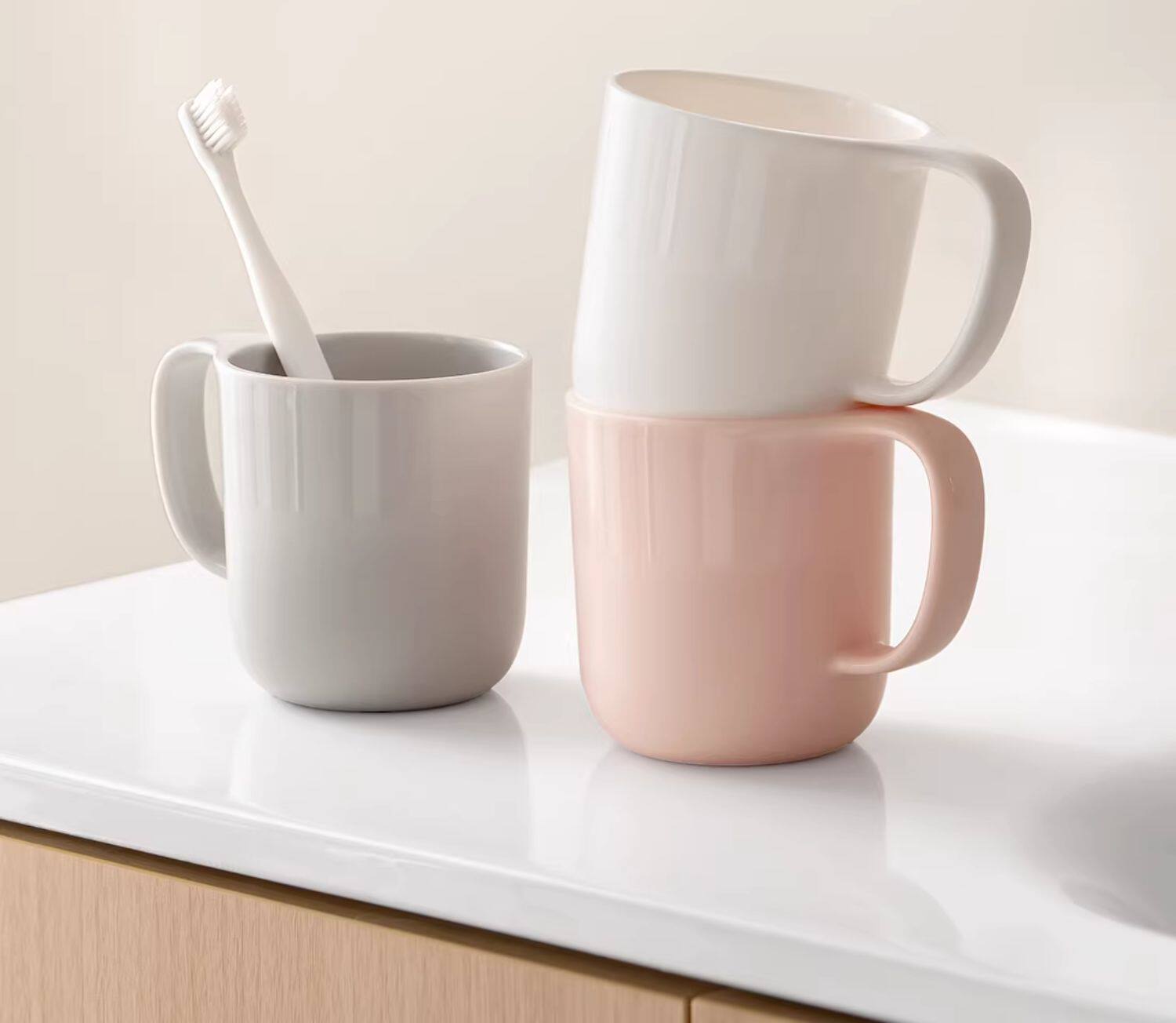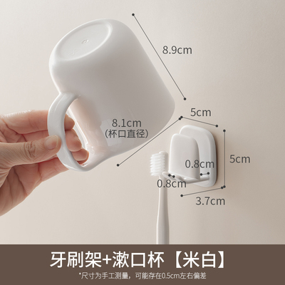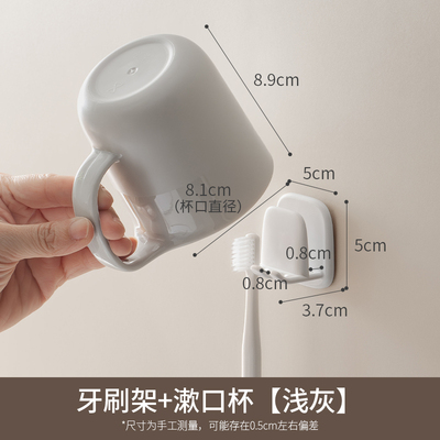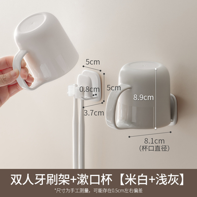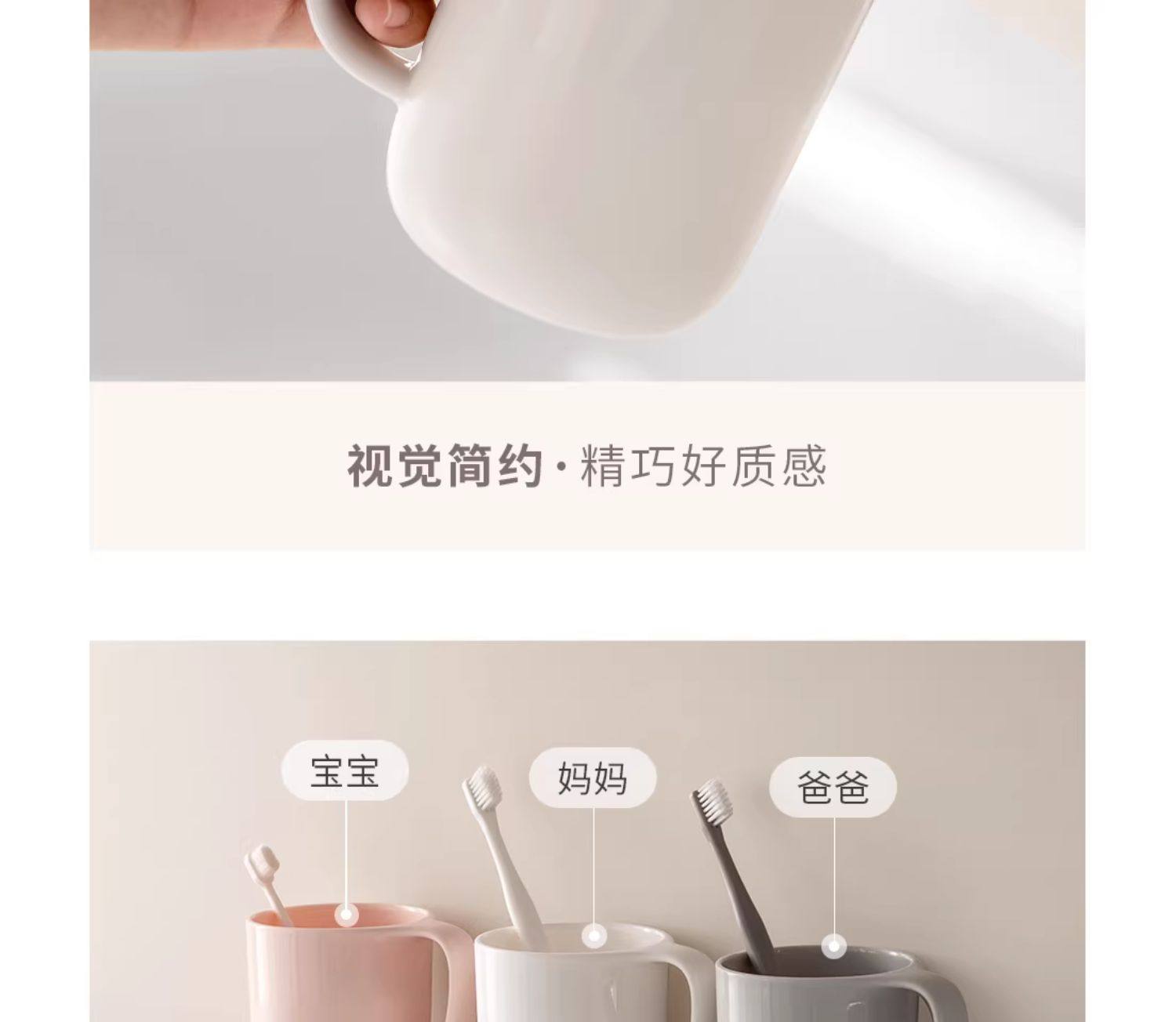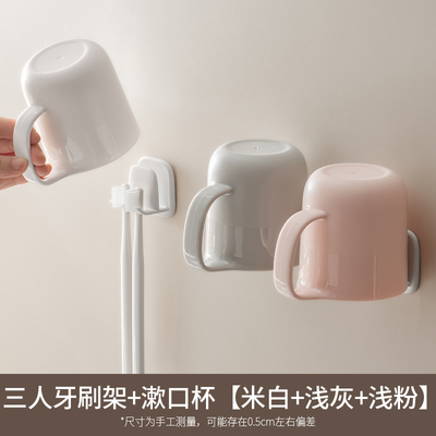 三人牙刷架+漱口杯【米白+浅灰+浅粉】