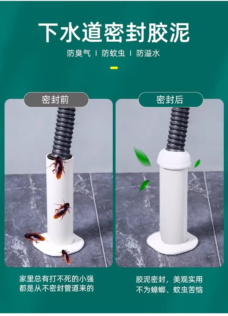 密封胶泥下水道防臭防虫神器空调孔口厨房堵洞防漏水防鼠墙孔家用