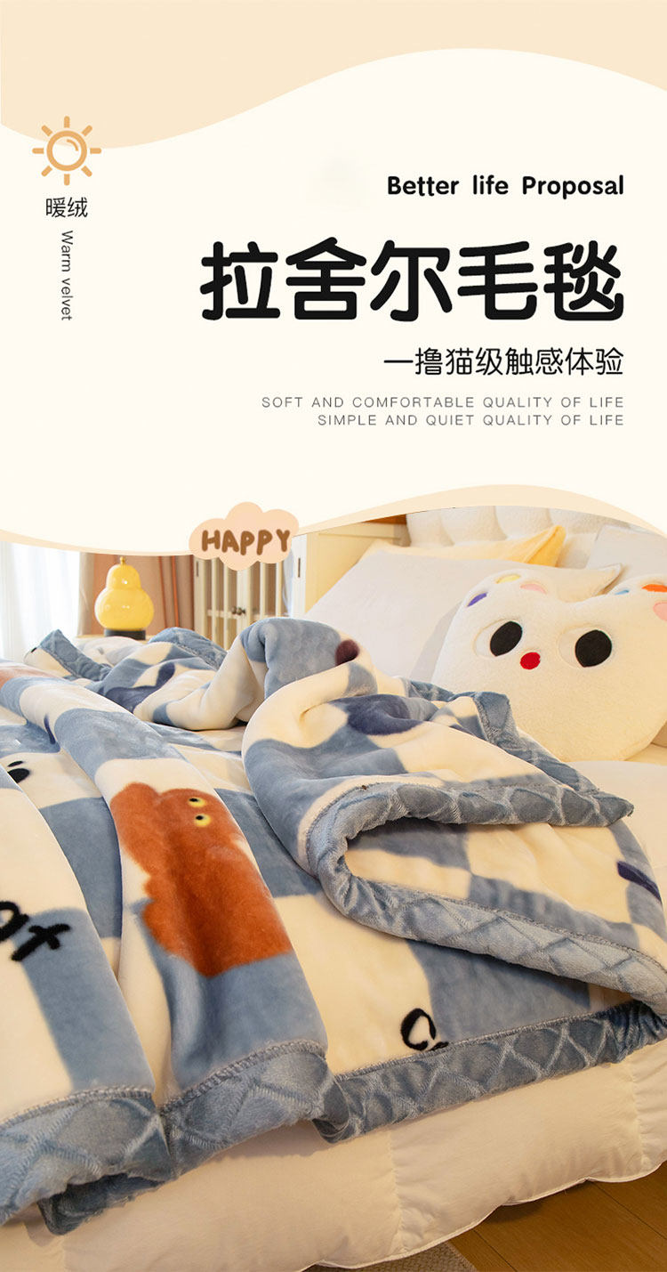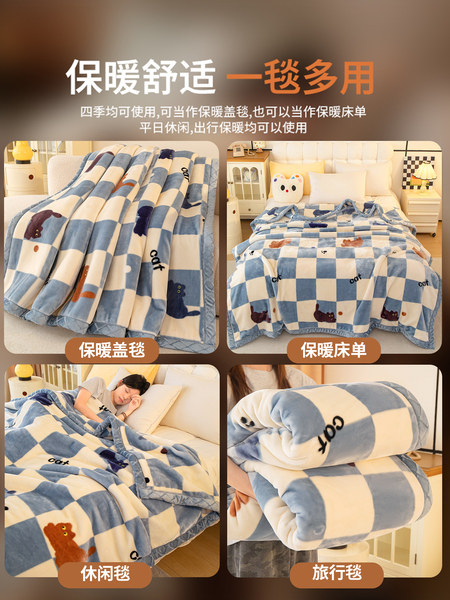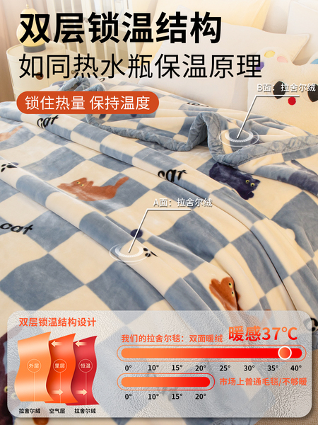 拉舍尔毛毯冬季加厚办公室午睡毯子保暖沙发盖毯珊瑚绒双层被子