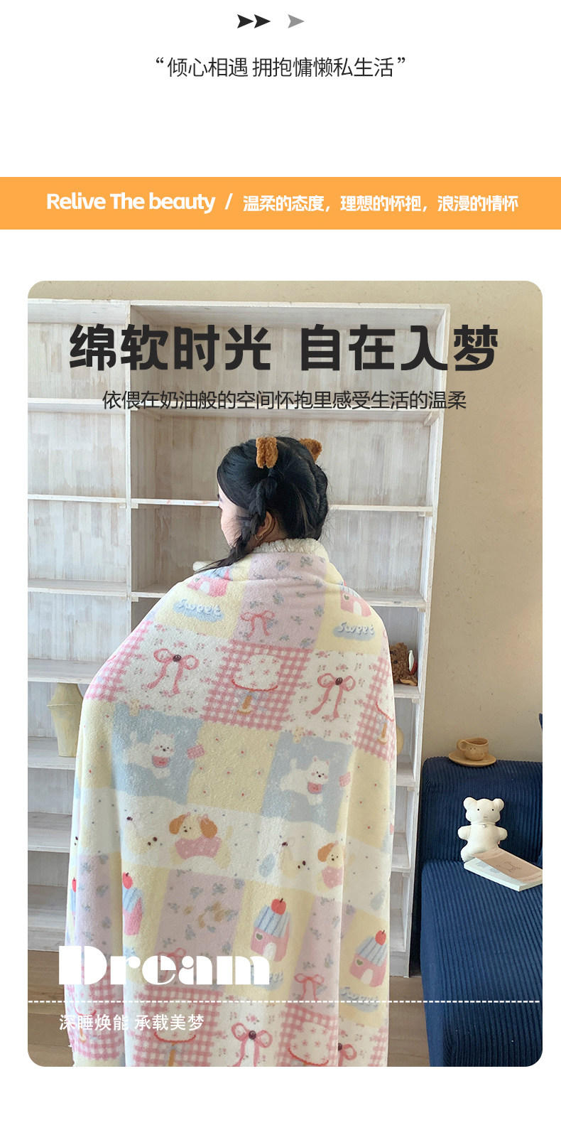 蓝色日记PT【A类面料 牛奶绒亲肤层+羊羔绒蓄热层 双层加厚 锁温保暖】