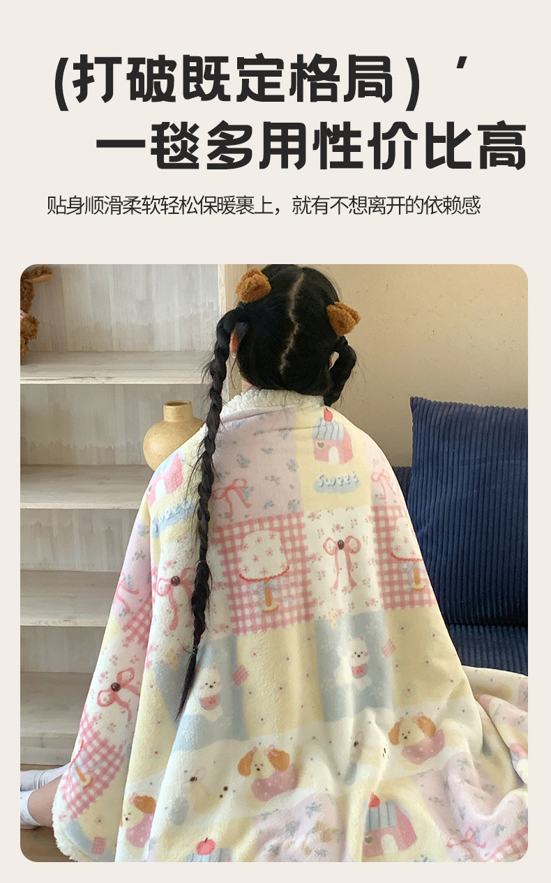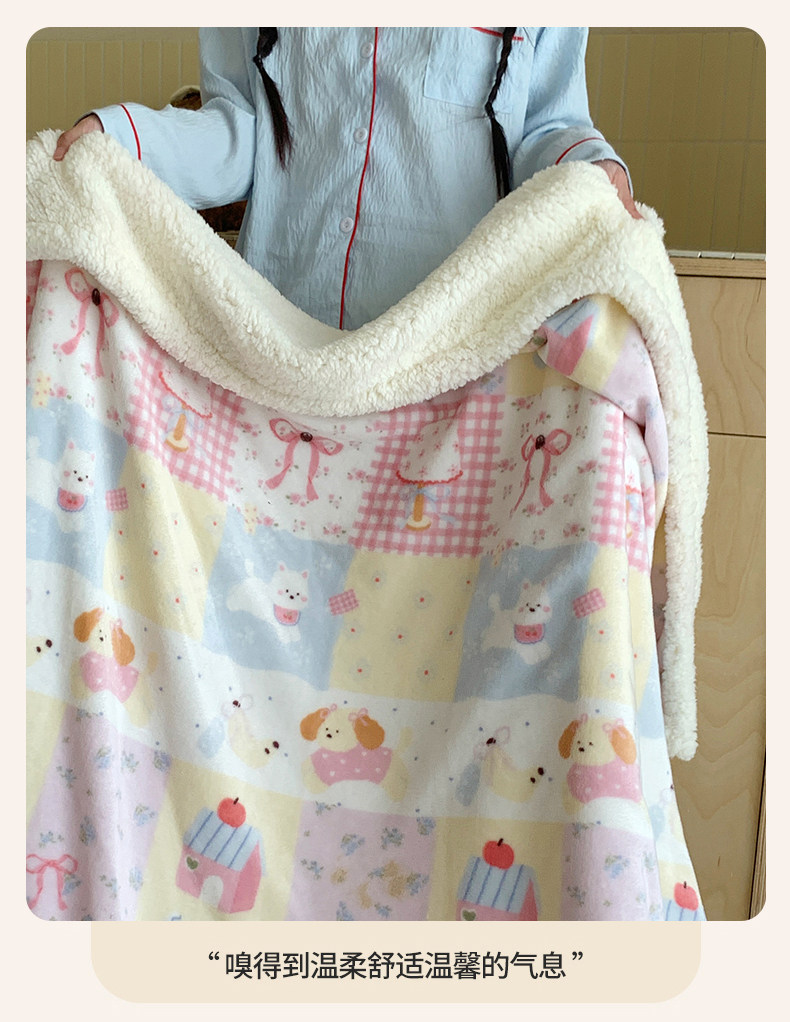 小猫笔记【A类面料 牛奶绒亲肤层+羊羔绒蓄热层 双层加厚 锁温保暖】