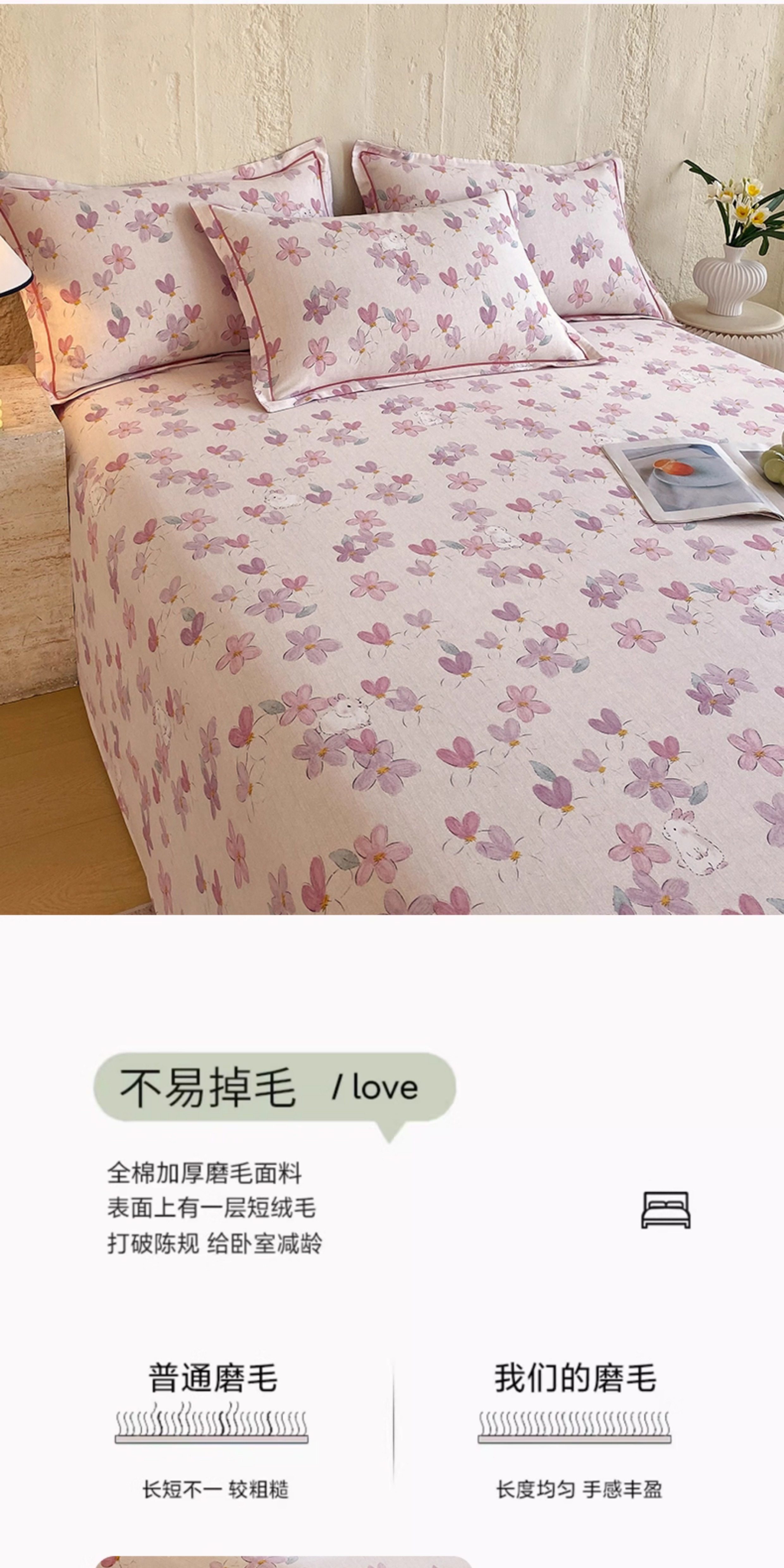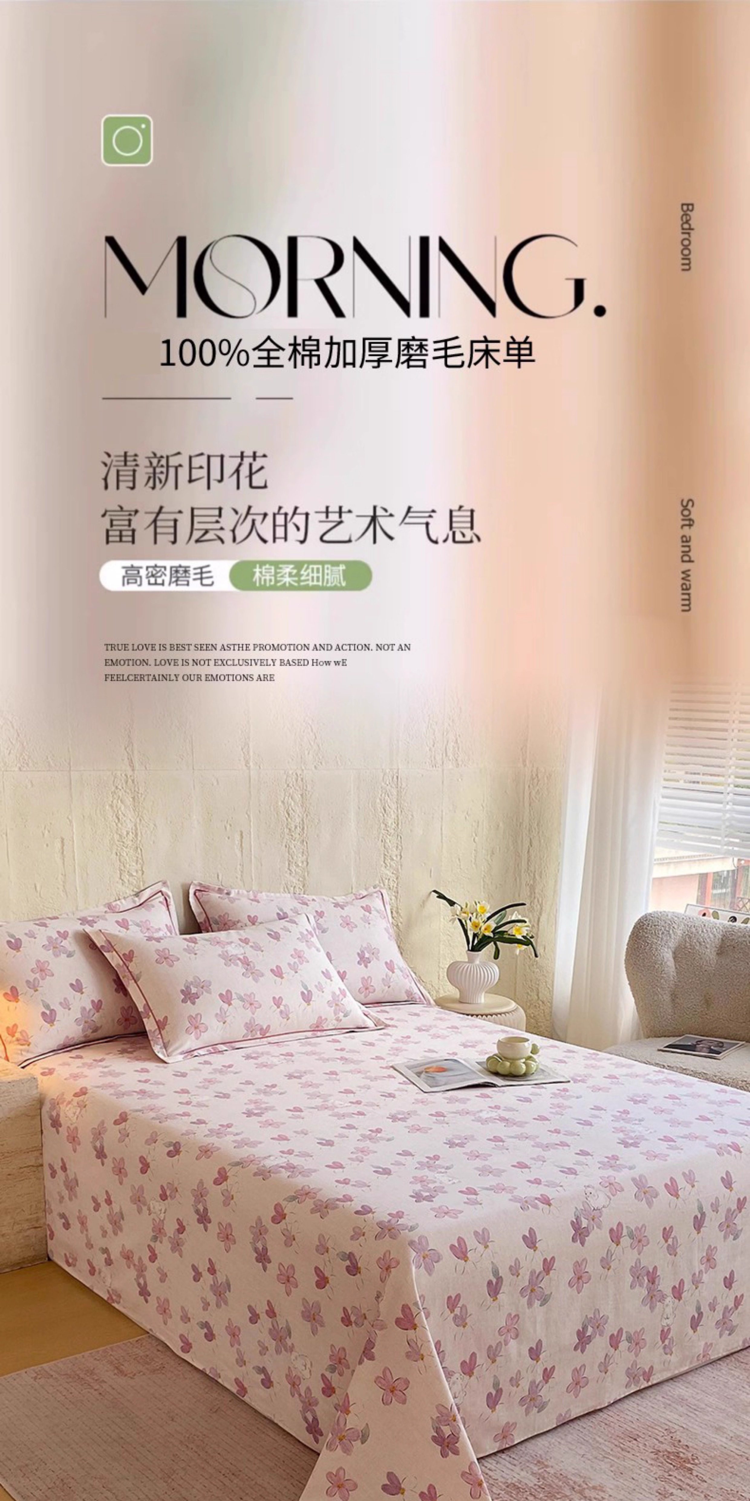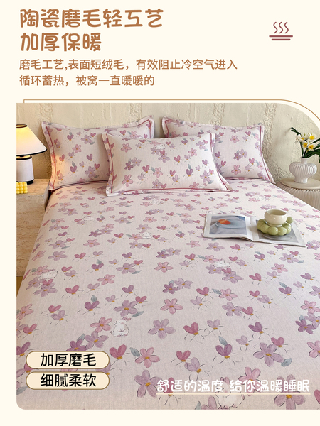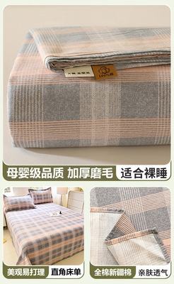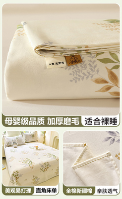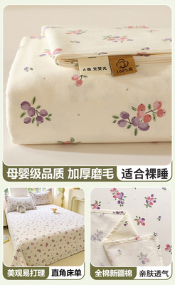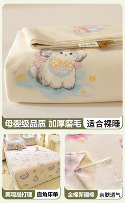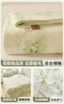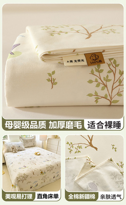 秋冬季加厚磨毛床单单件纯棉100全棉1.5米单人宿舍被单三件套床笠