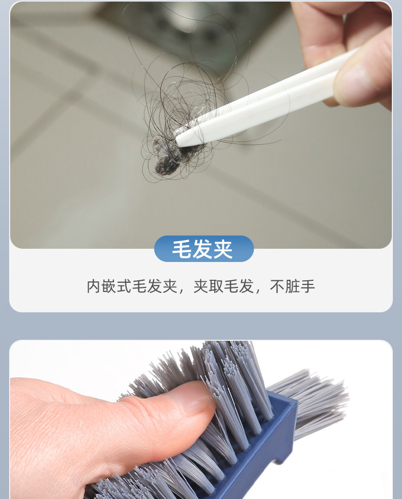 三合一缝隙刷卫生间地缝刷地板洗墙角浴室长柄硬毛无死角清洁刷子