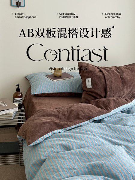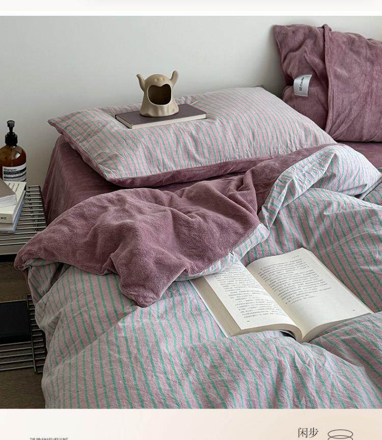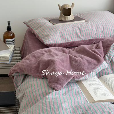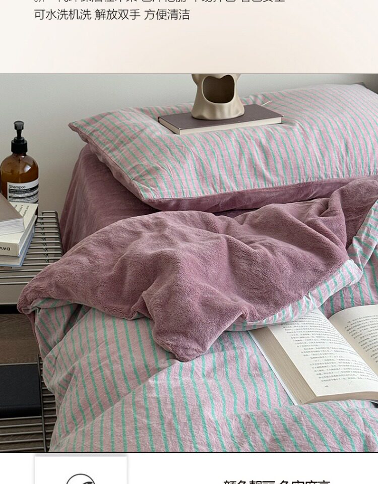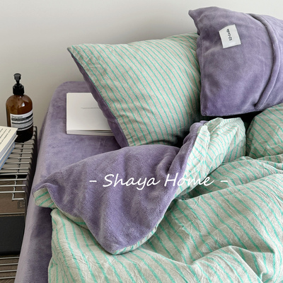 秋冬ab版全棉牛奶绒床上四件套加厚珊瑚绒面被套床单床笠款三件套