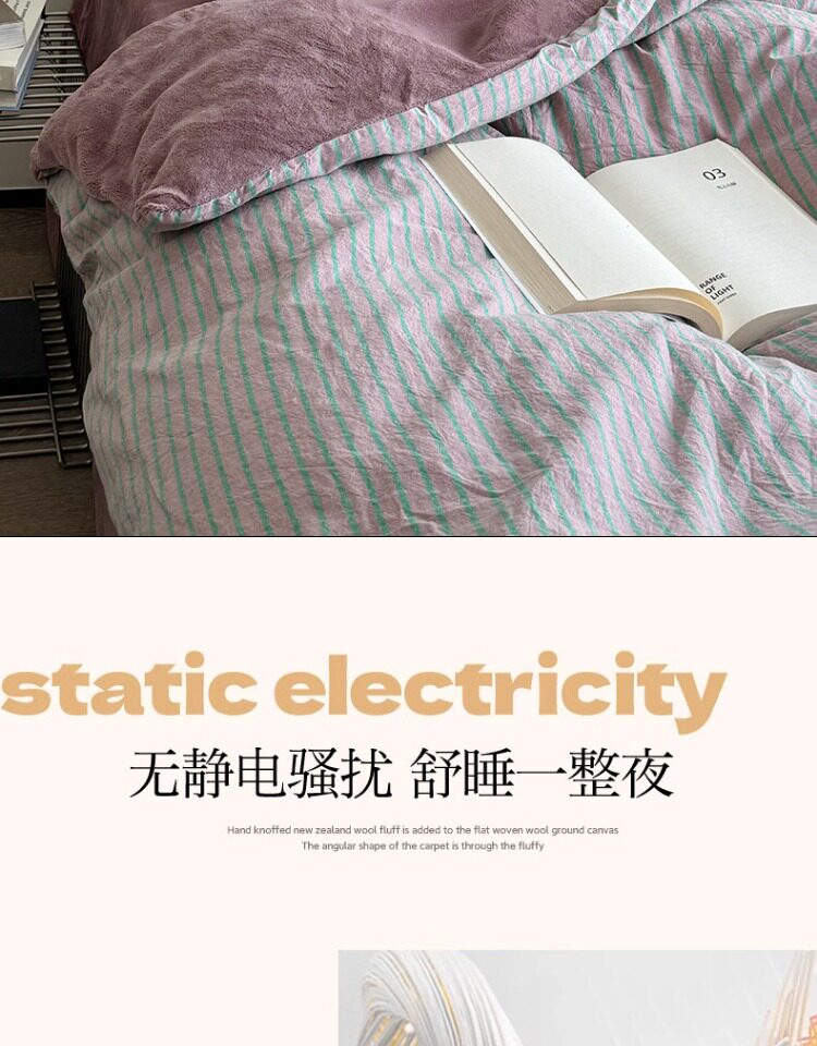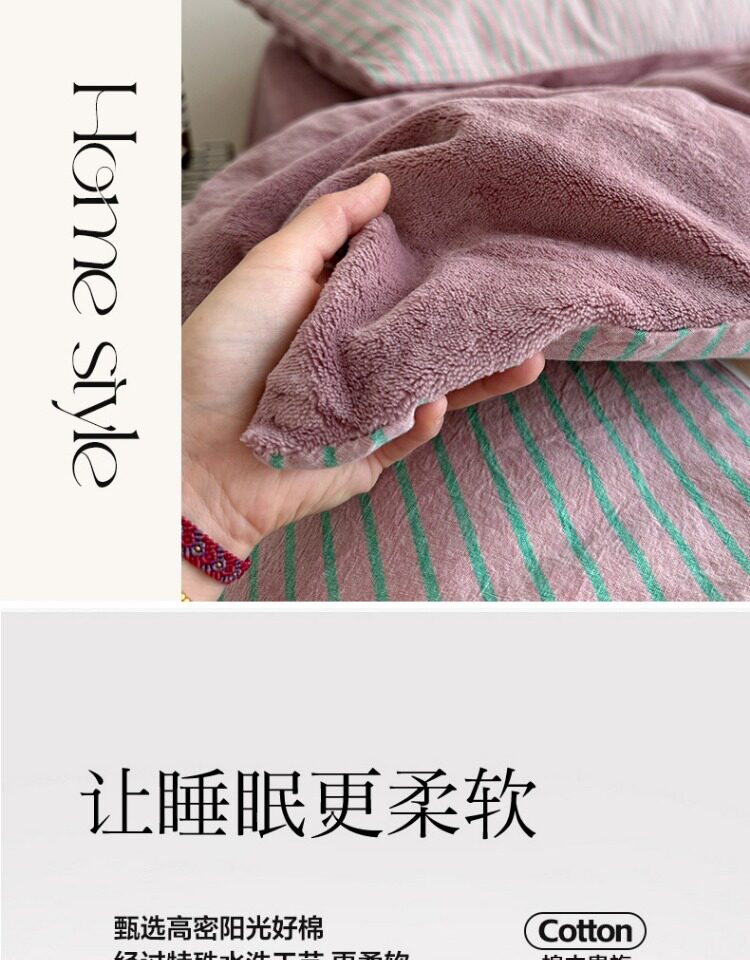 棉+绒米密条【A面全棉水洗棉 B面保暖牛奶绒】