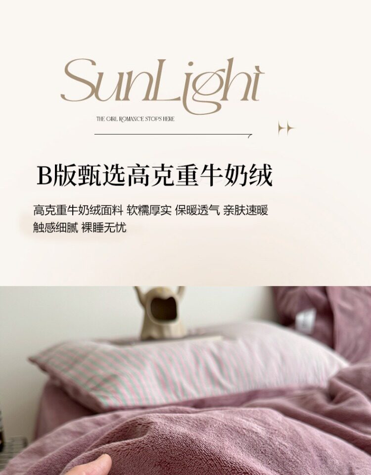 暮光-粉【A面全棉水洗棉 B面保暖牛奶绒】