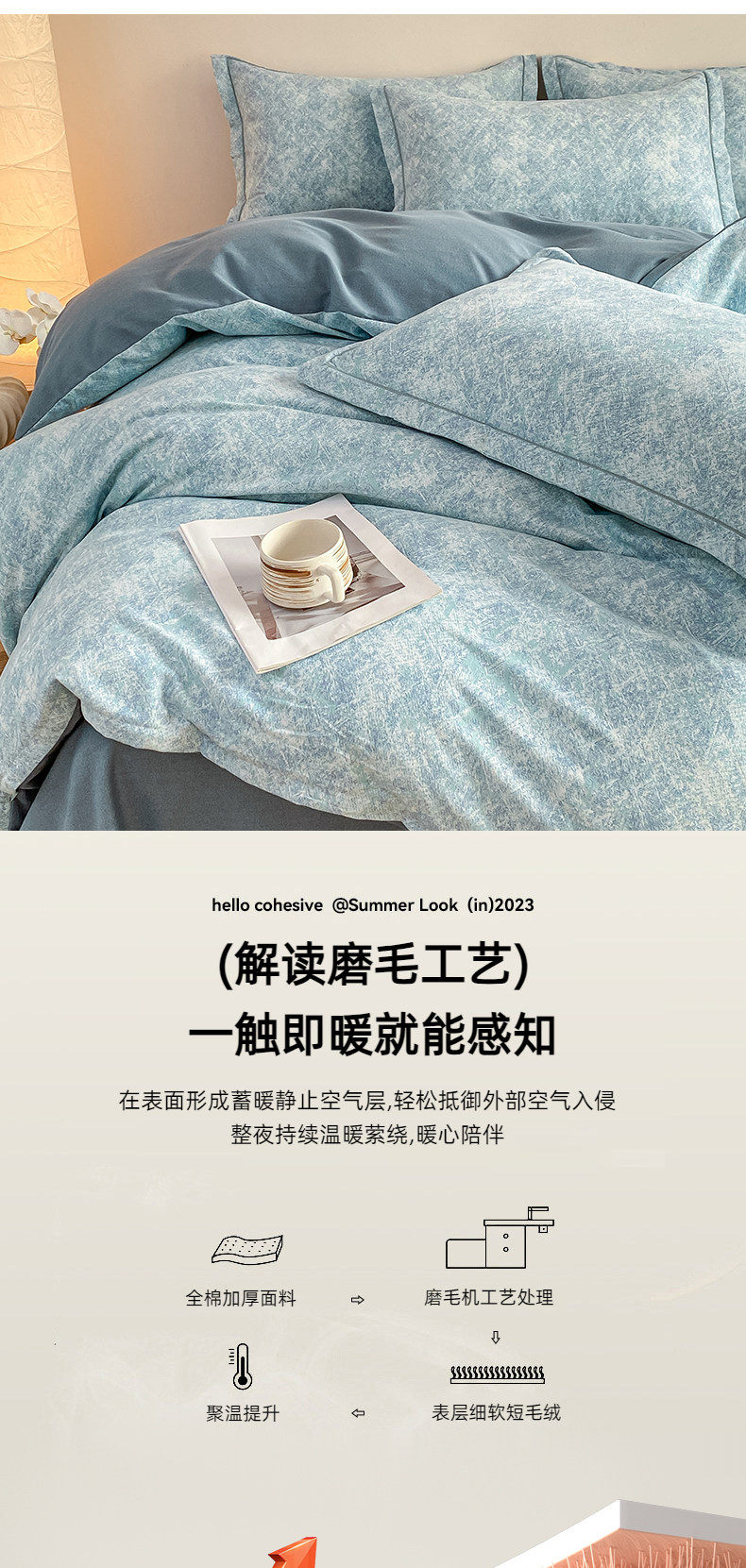 全棉磨毛暖感被套两件套-【被套200x230cm+枕套一只】