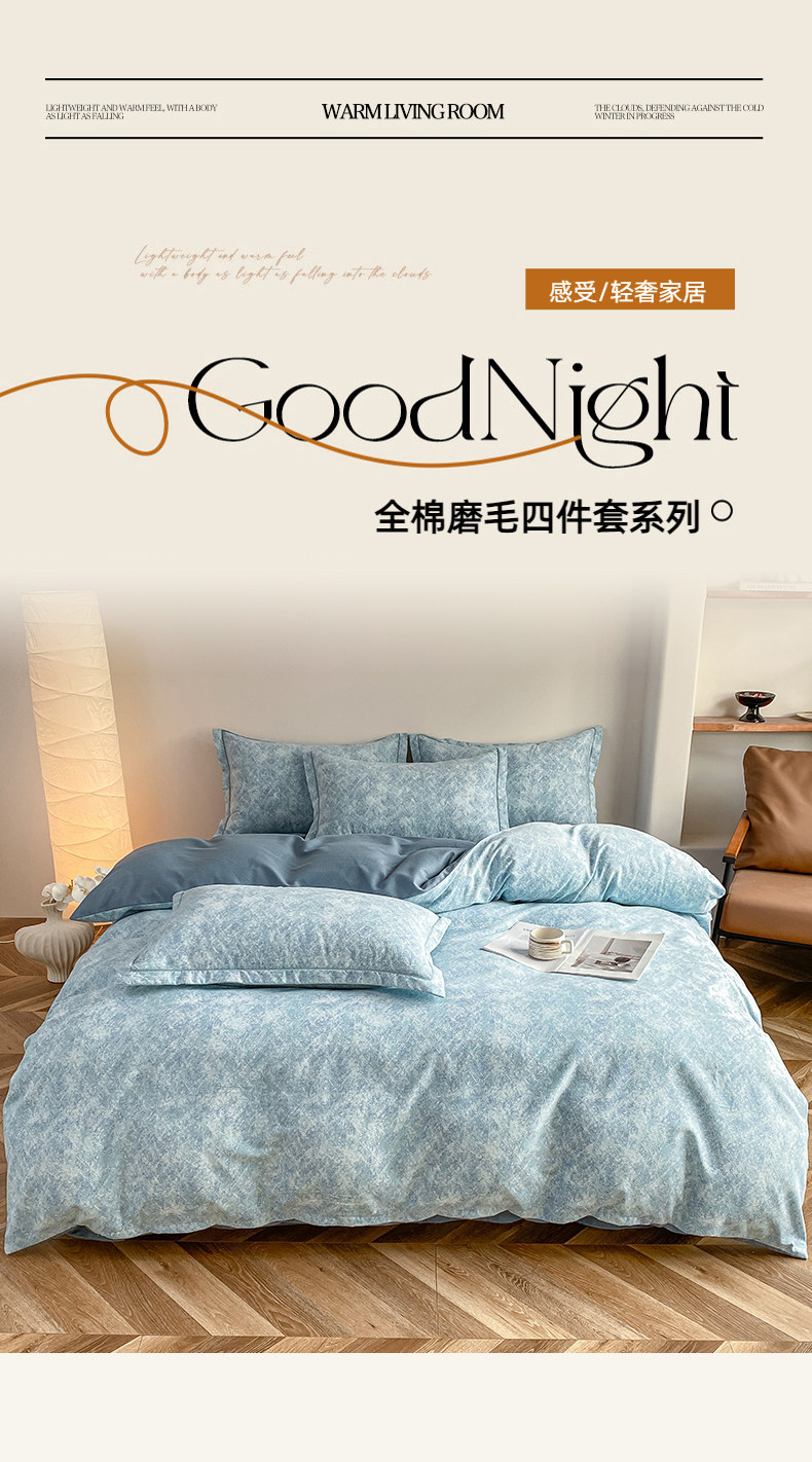 全棉磨毛暖感被套两件套-【被套180x220cm+枕套一只】