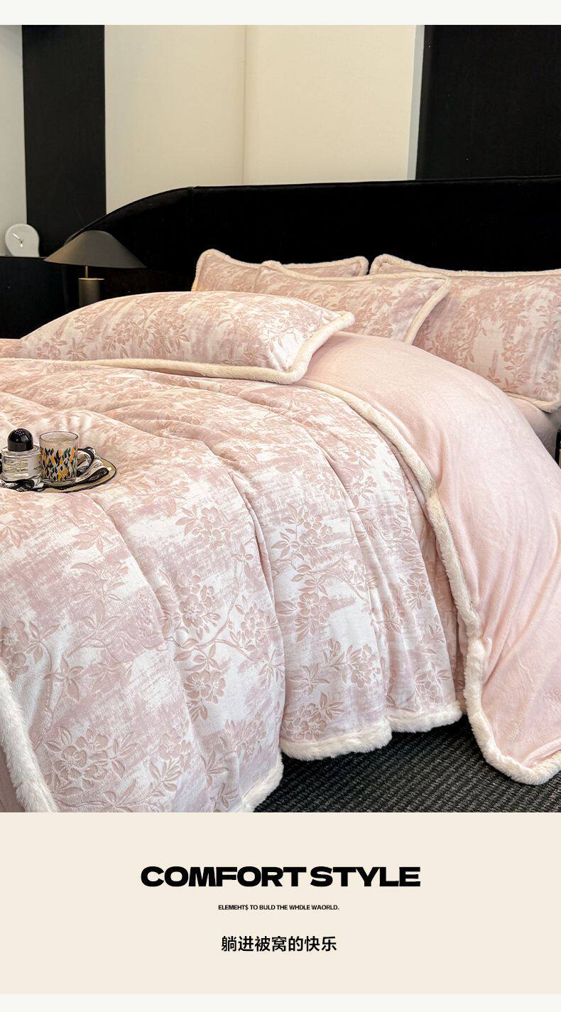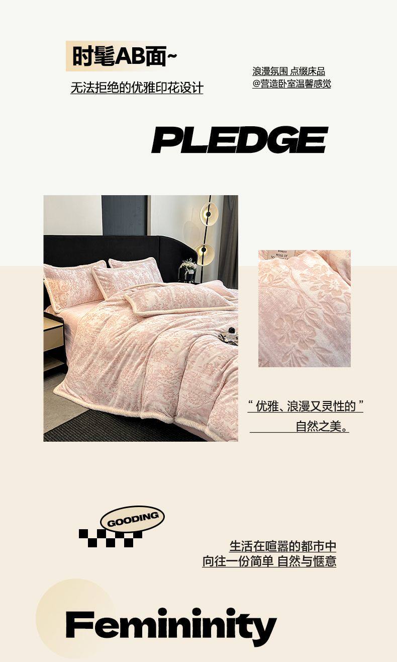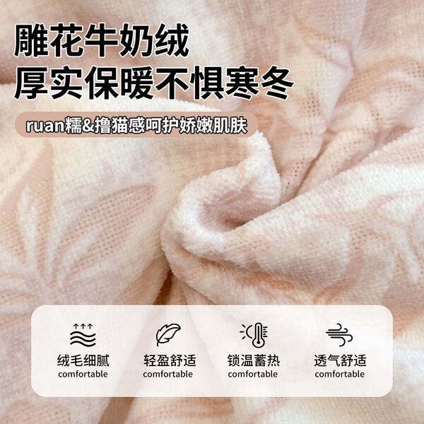 山茶-粉【加厚雕花牛奶绒/抗静电不掉毛】