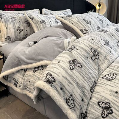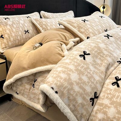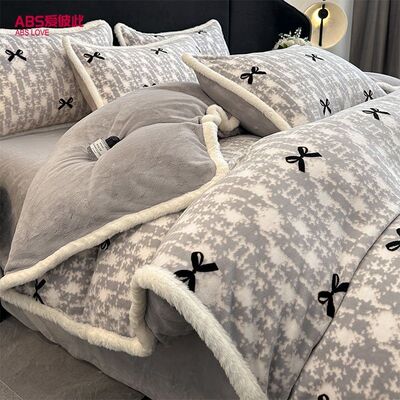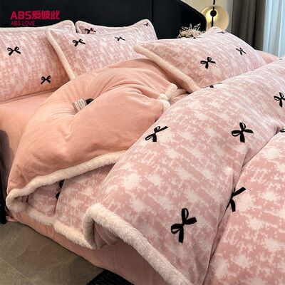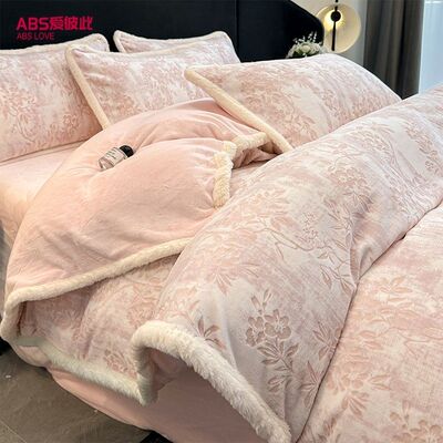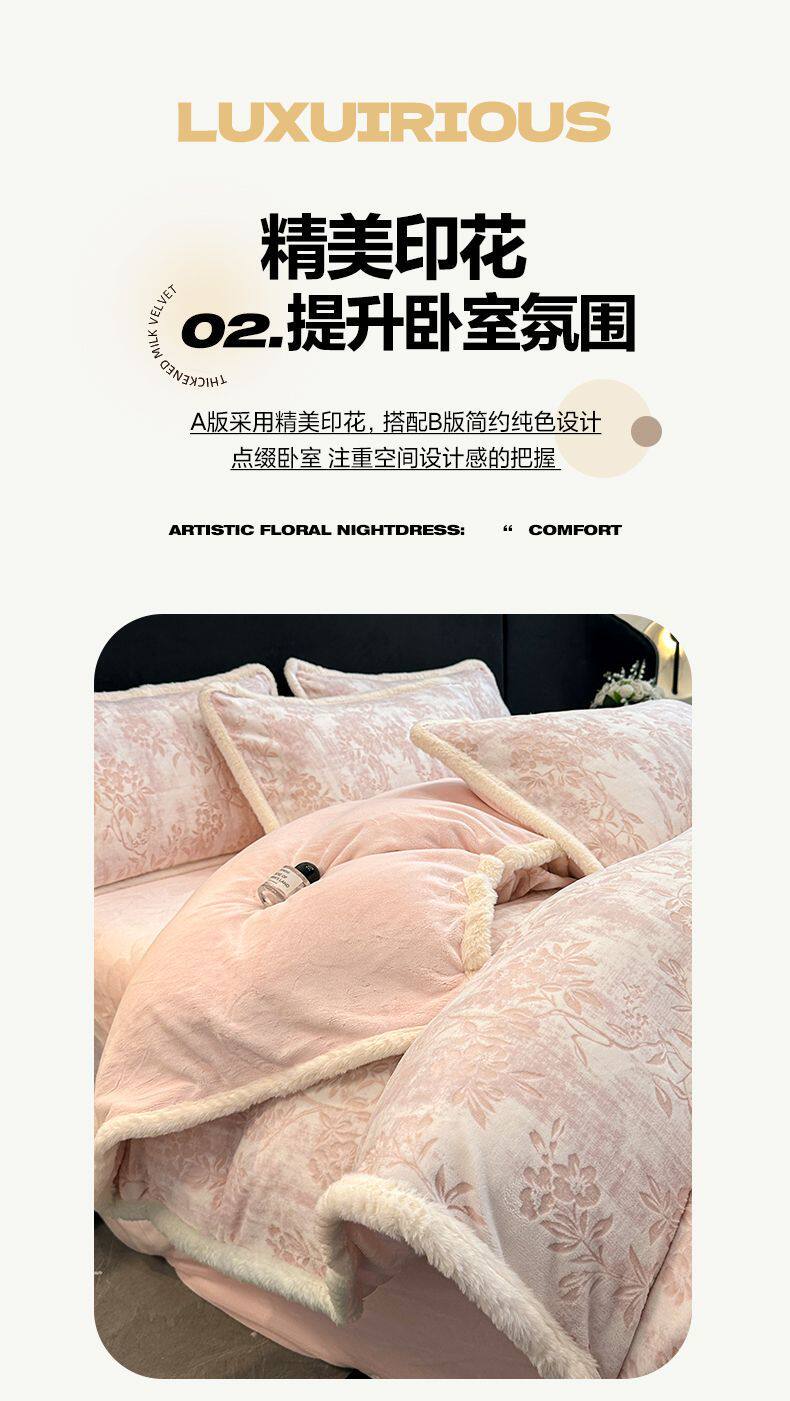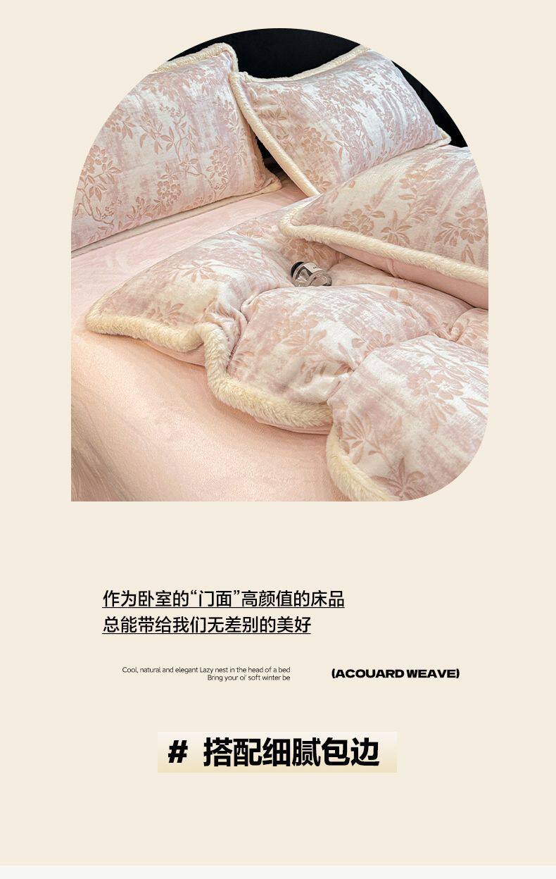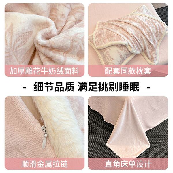 雕花牛奶绒床上四件套秋冬轻奢高级感加厚珊瑚法兰绒被套床品床单