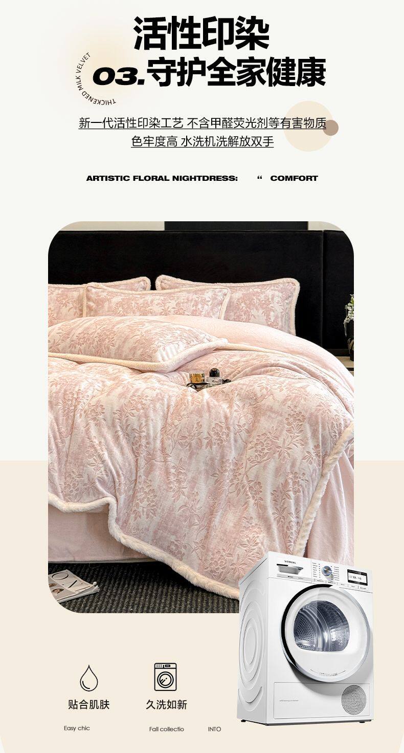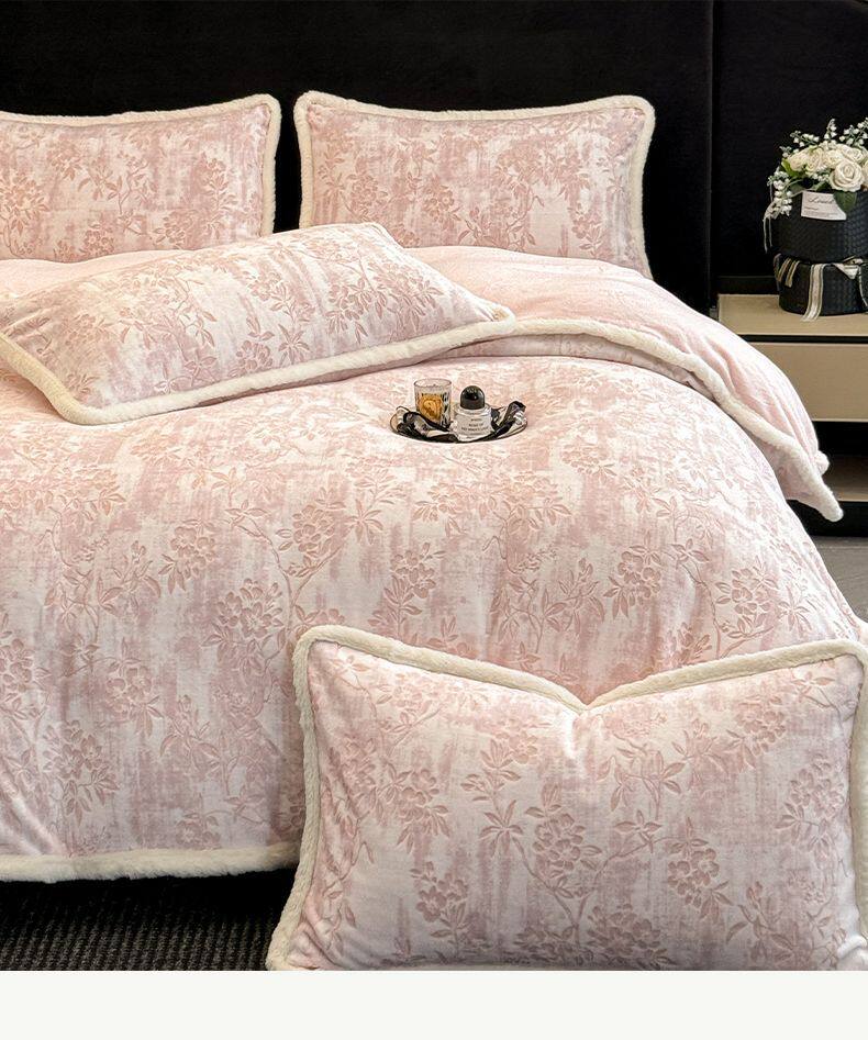 花枝-粉【加厚雕花牛奶绒/抗静电不掉毛】