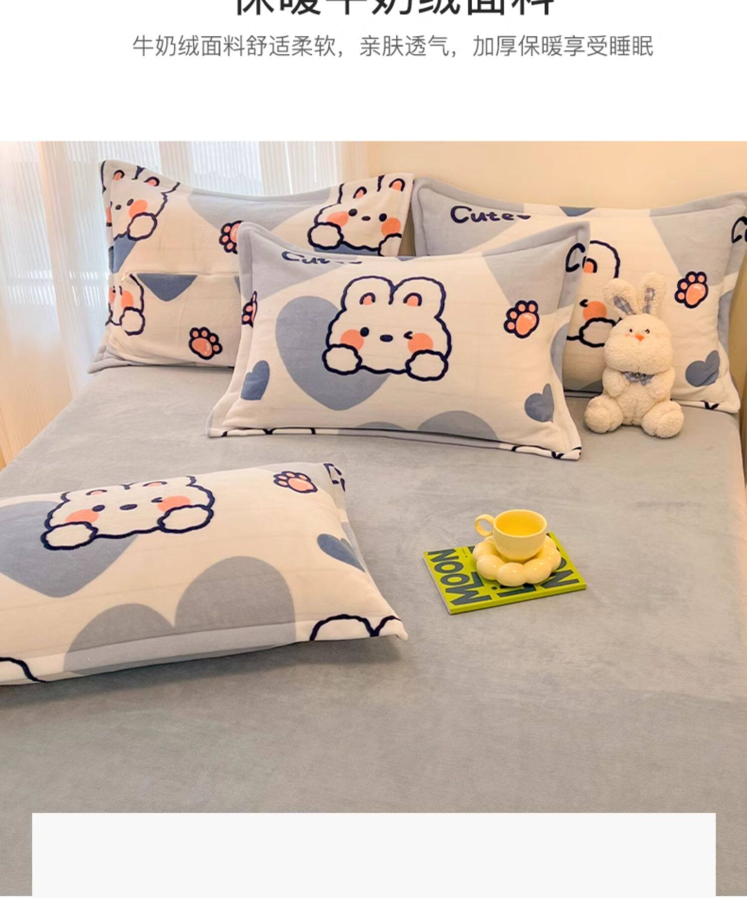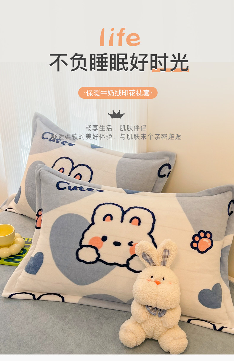 甜兔星语【一对装】加绒加厚牛奶绒枕套