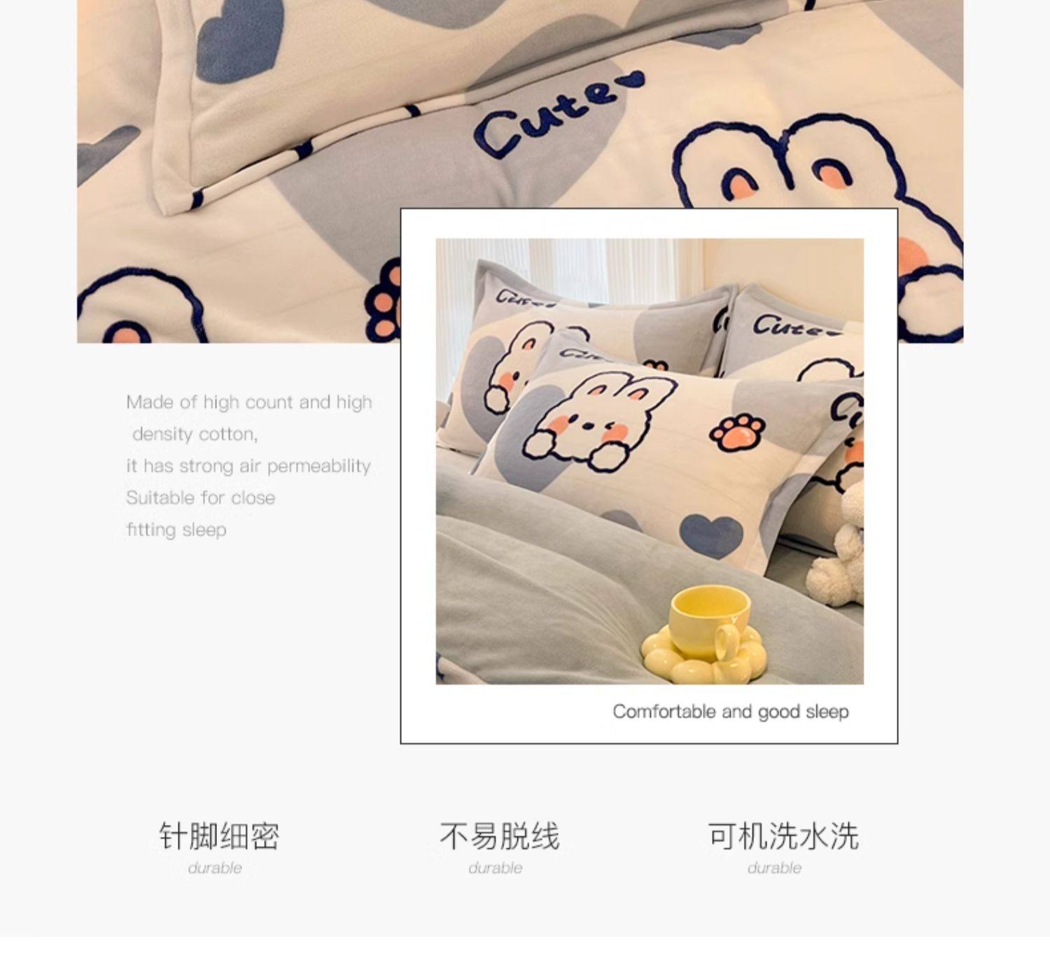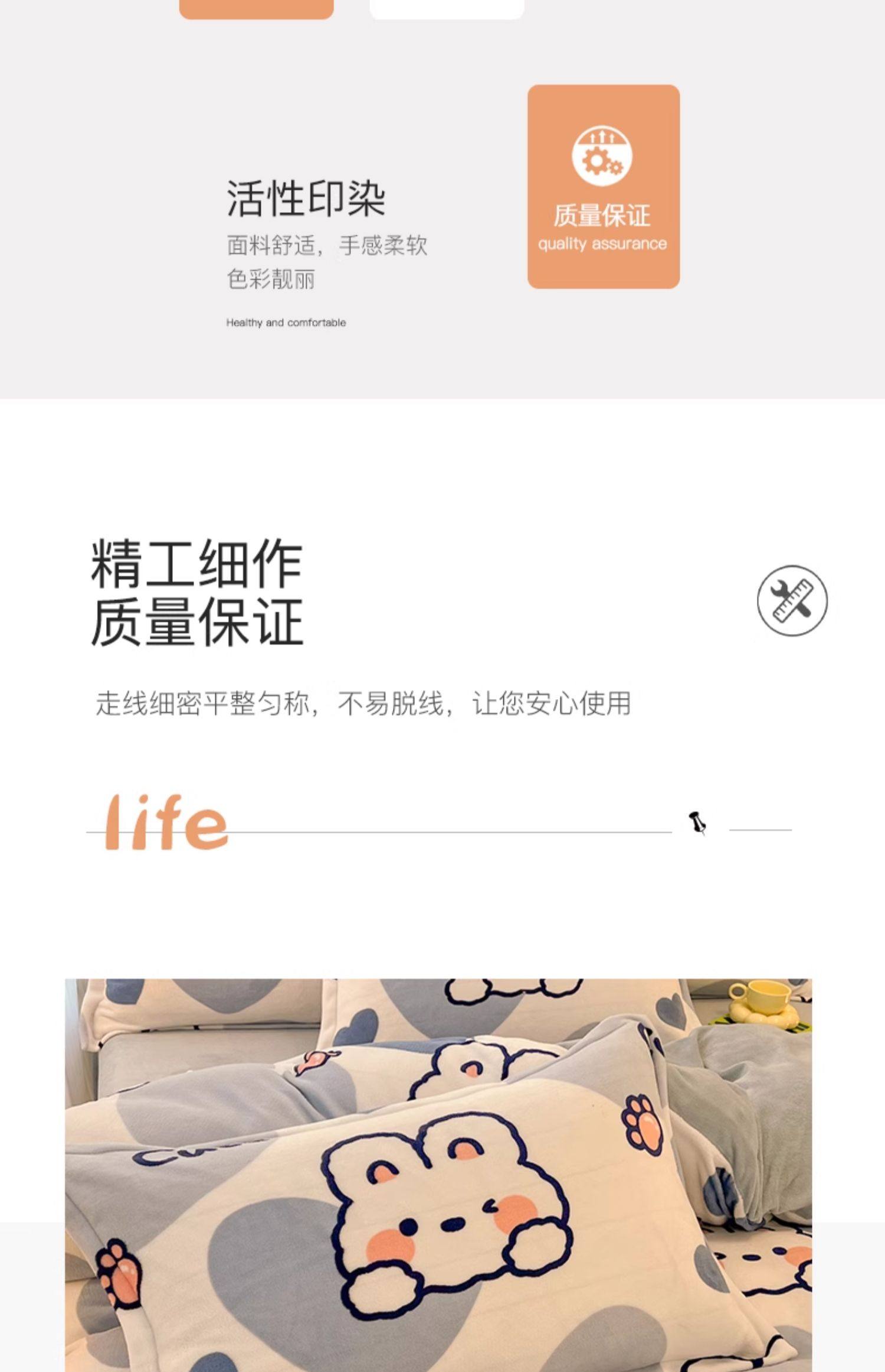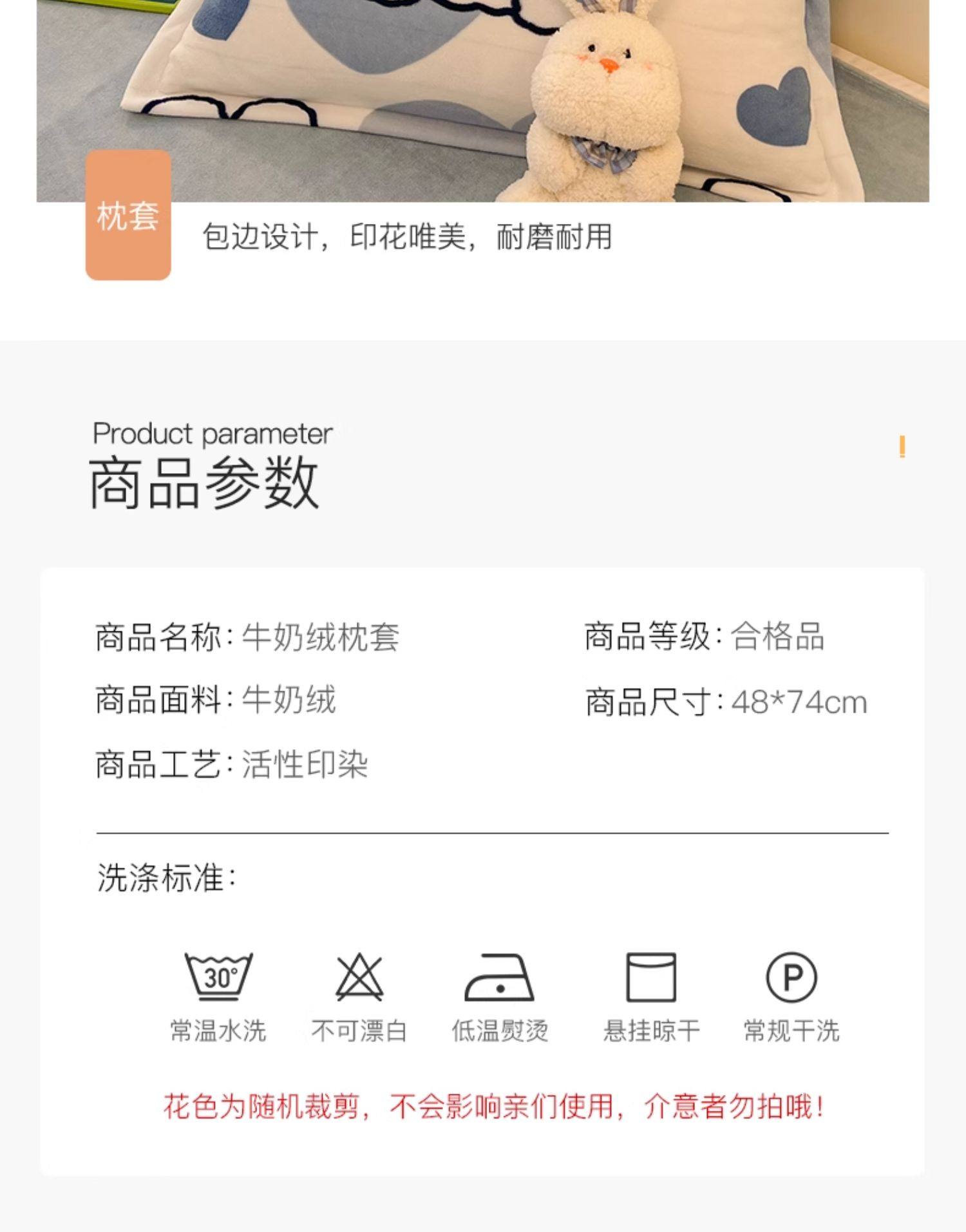 甜兔星语【单只装】加绒加厚牛奶绒枕套