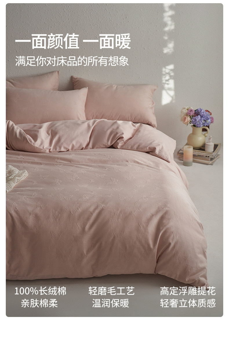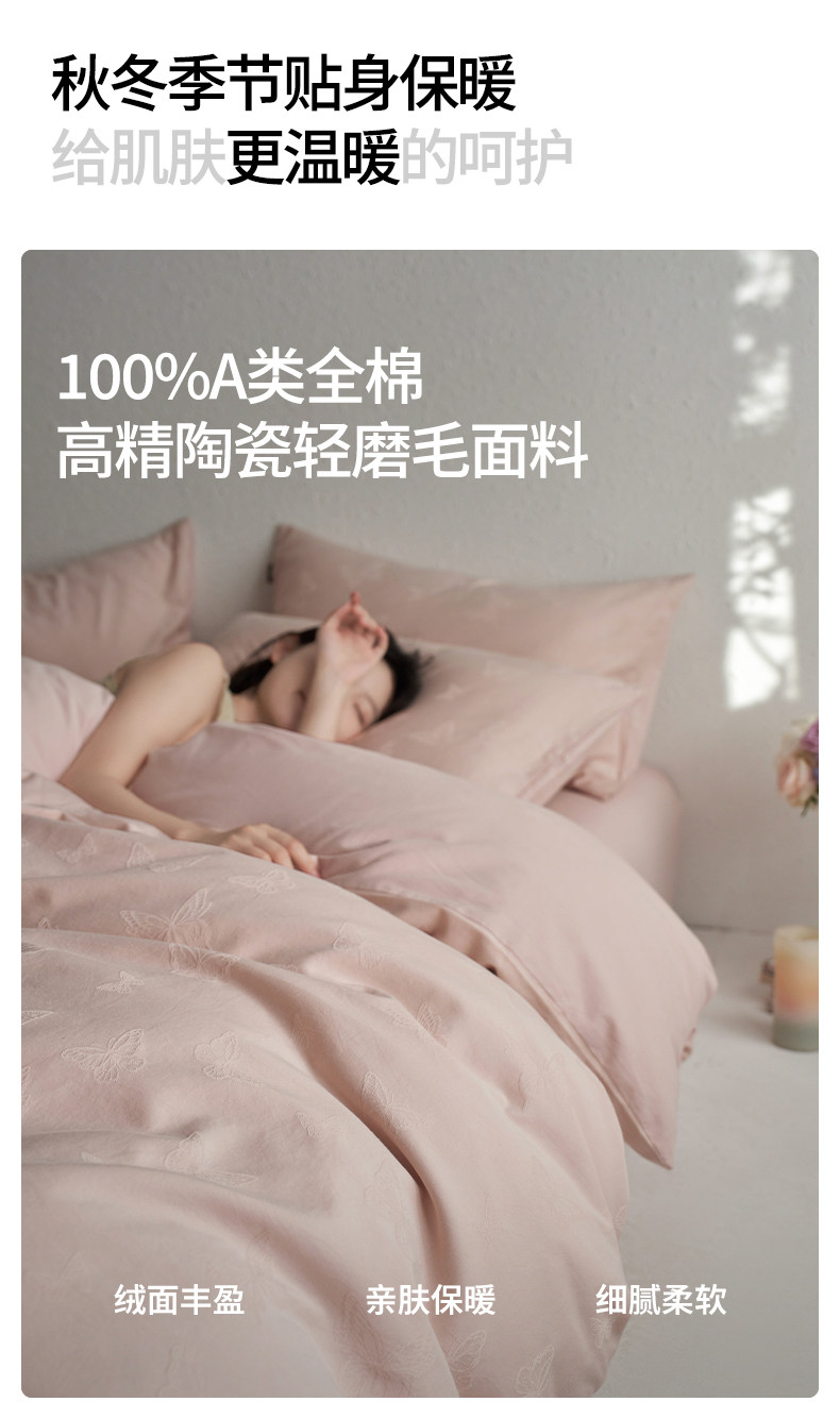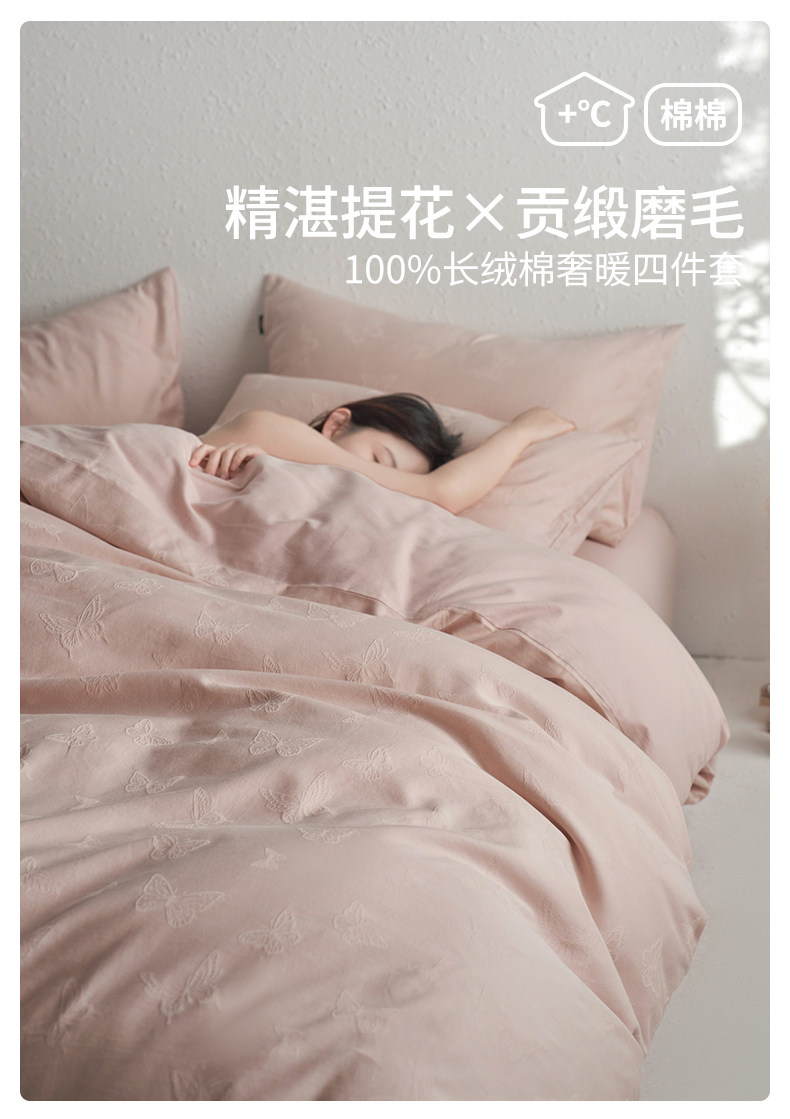 简蝶-淡粉【全棉磨毛+蓄热保暖】