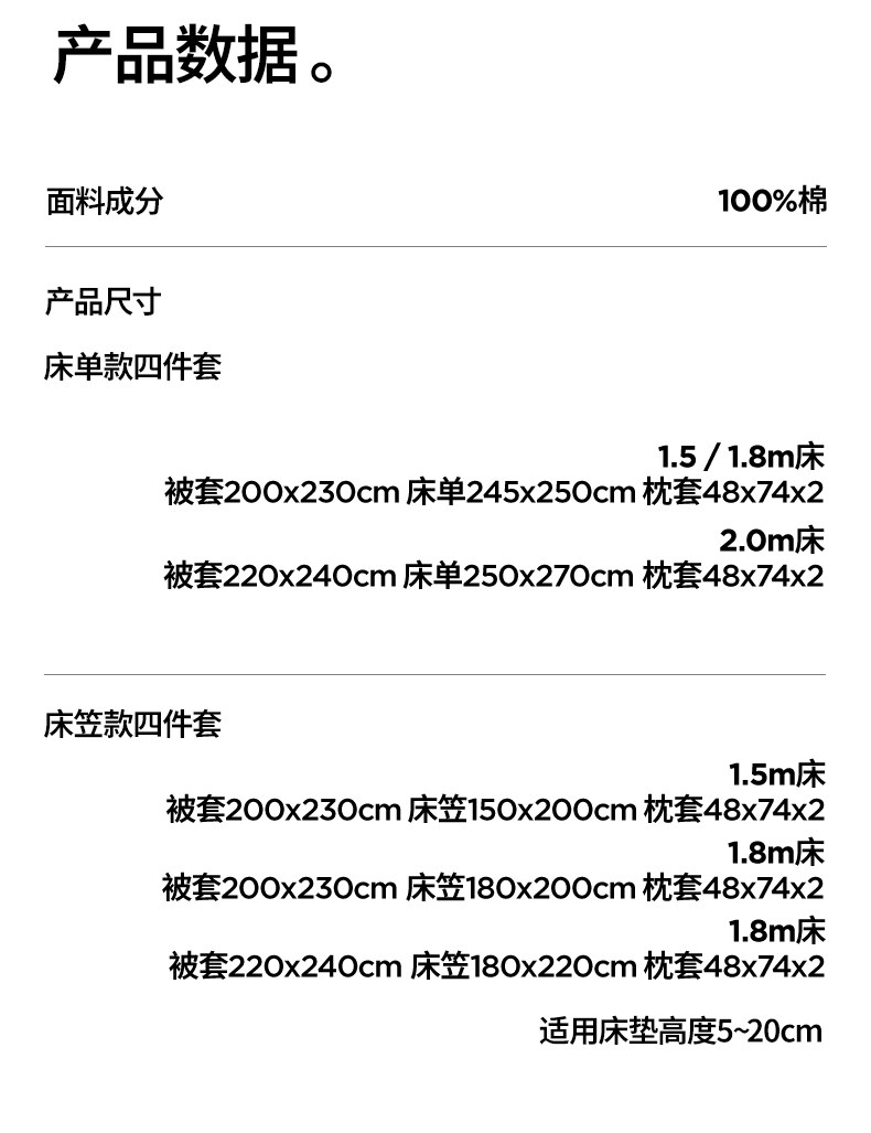 1.8m床 床笠款四件套(被套200*230cm/床笠180*200cm/枕套48*74cm*2)