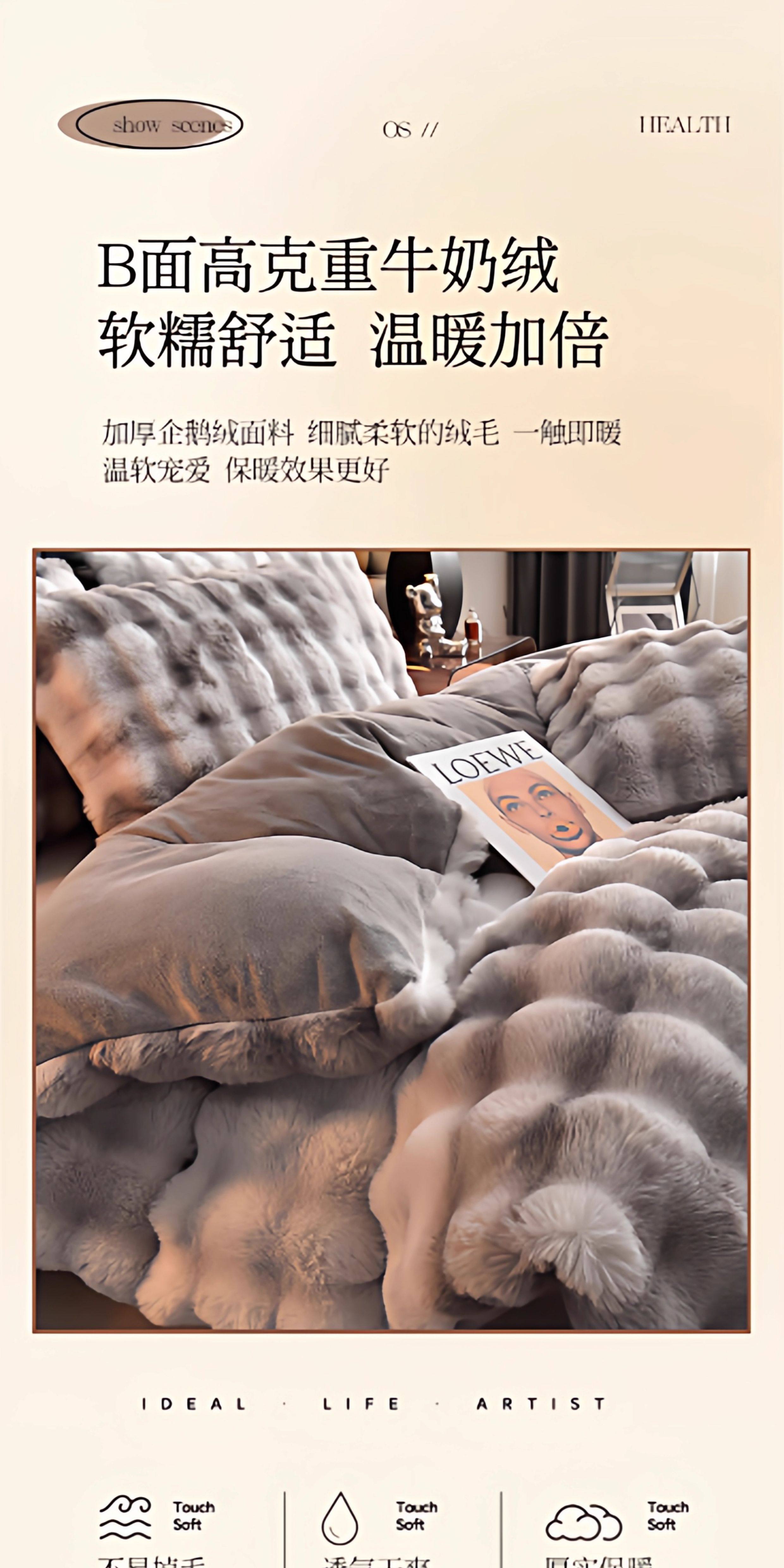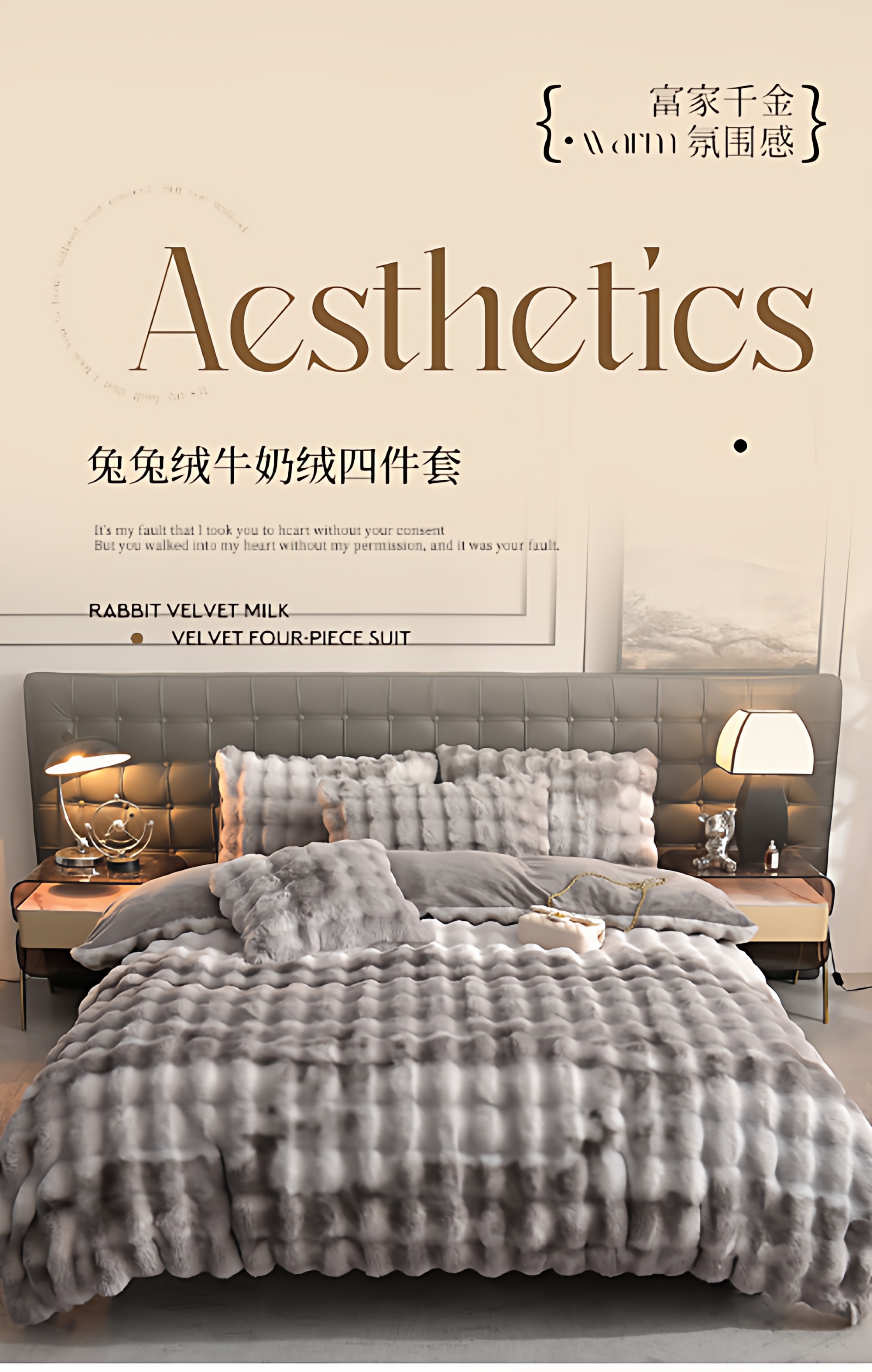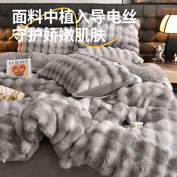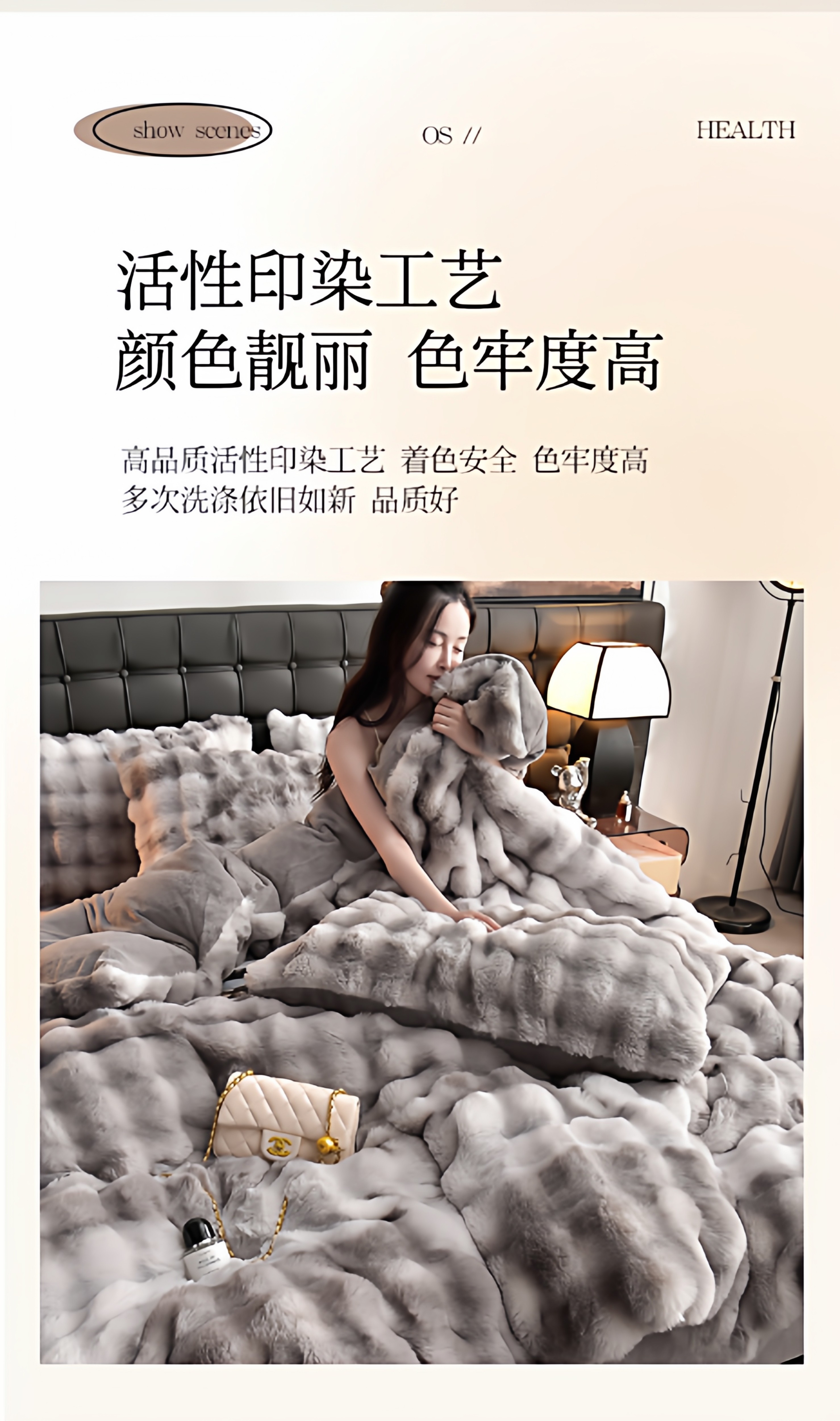 1.8m床笠款四件套【被套200*230cm】-绵密兔毛绒 更柔软更舒适