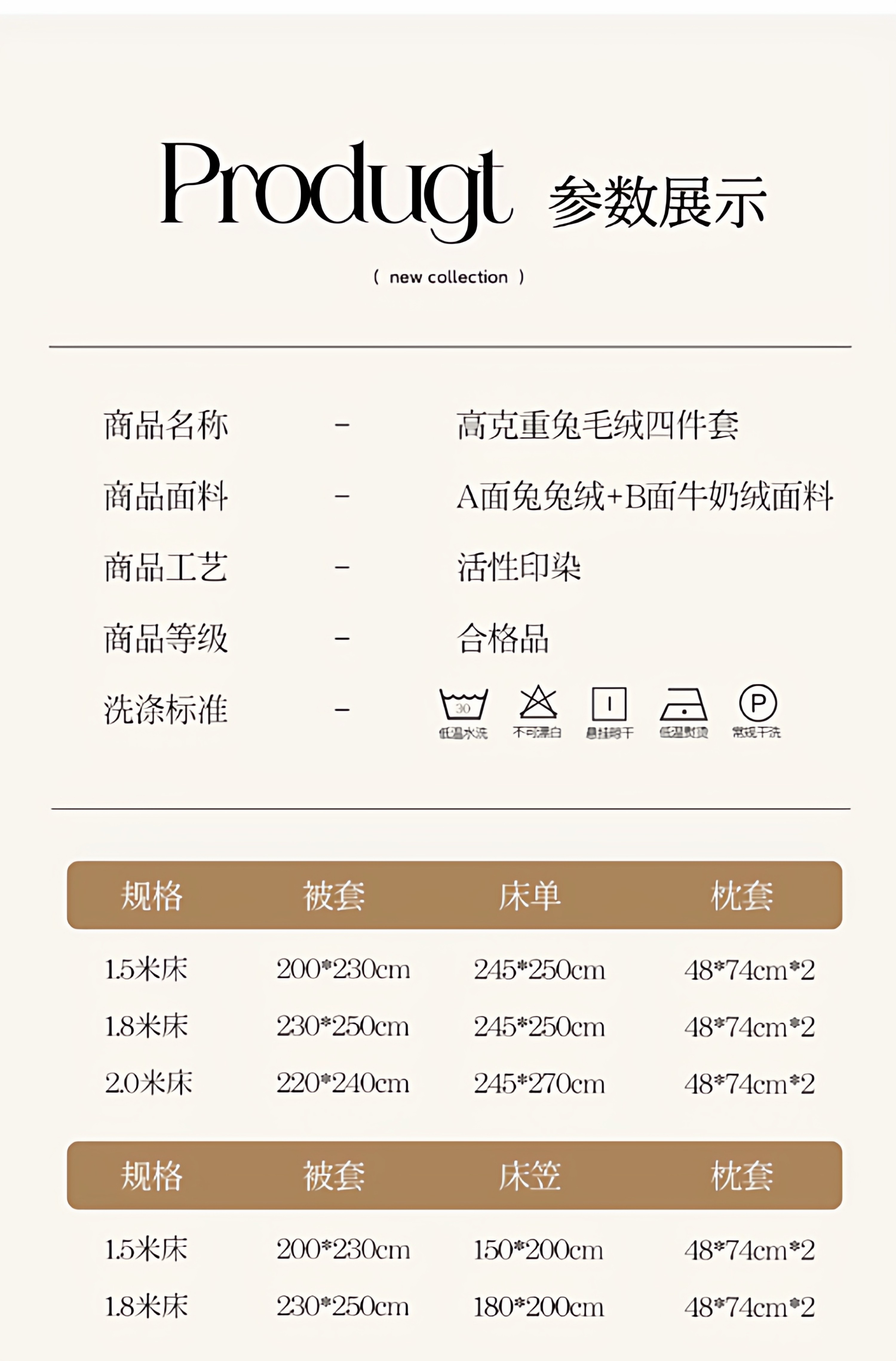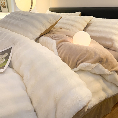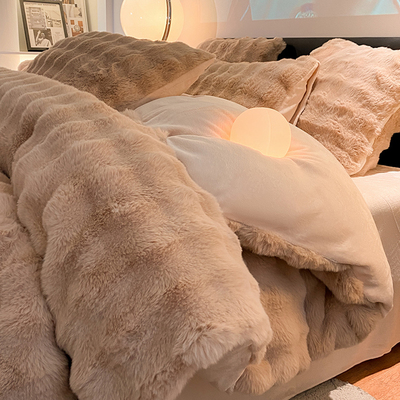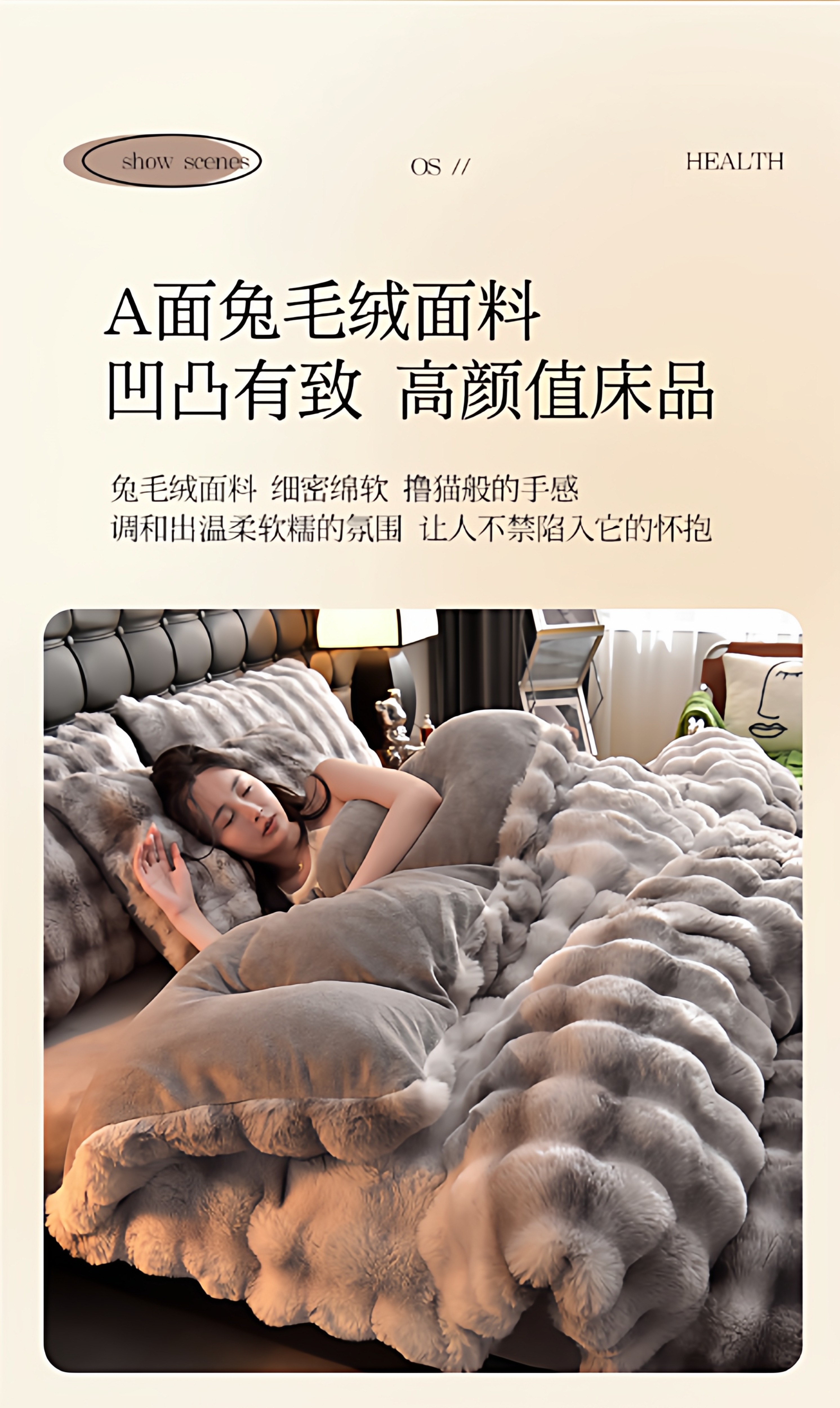 1.5m床笠款四件套【被套200*230cm】-绵密兔毛绒 更柔软更舒适