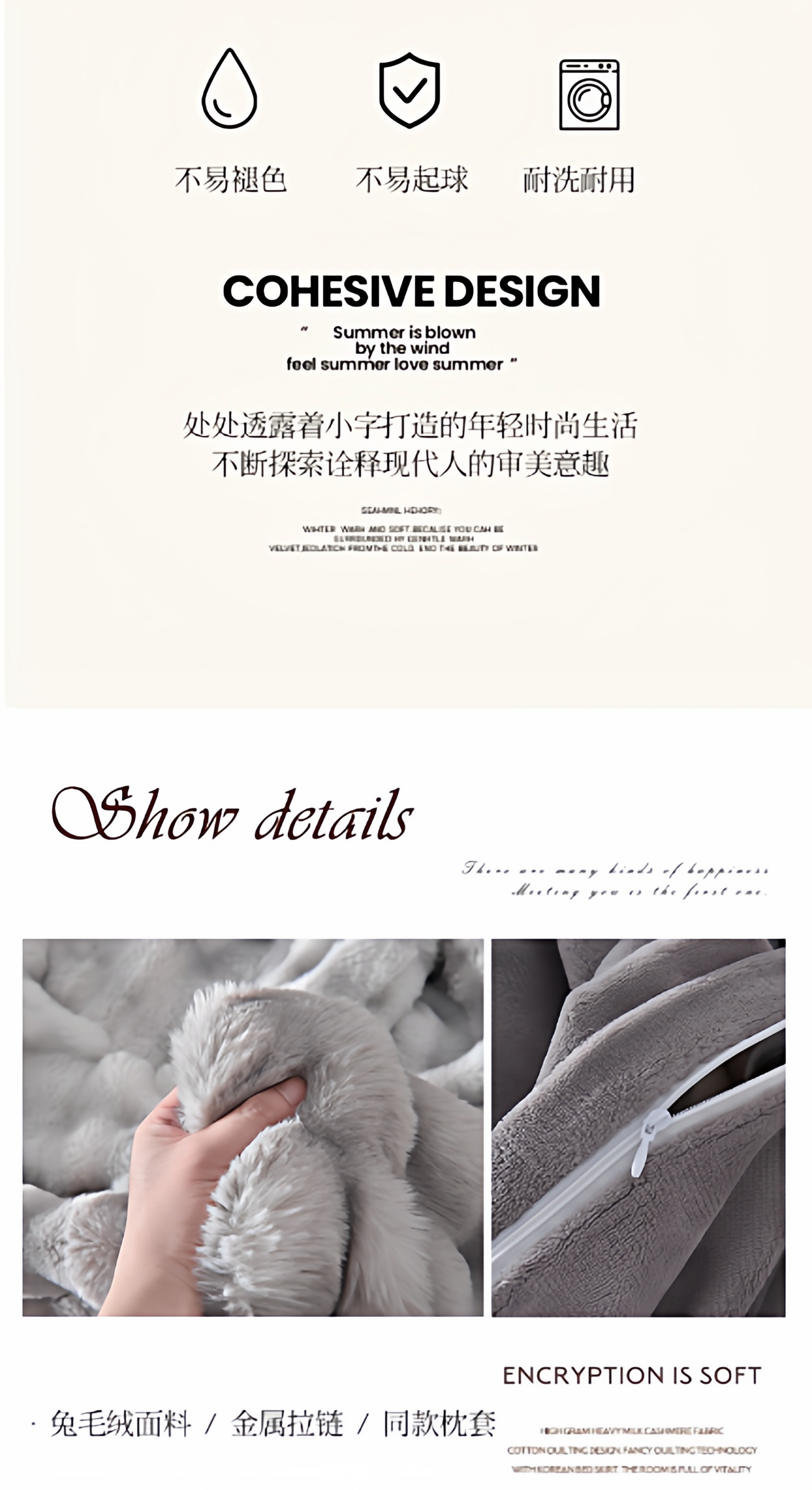 1.8m床单款四件套【被套200*230cm】-绵密兔毛绒 更柔软更舒适