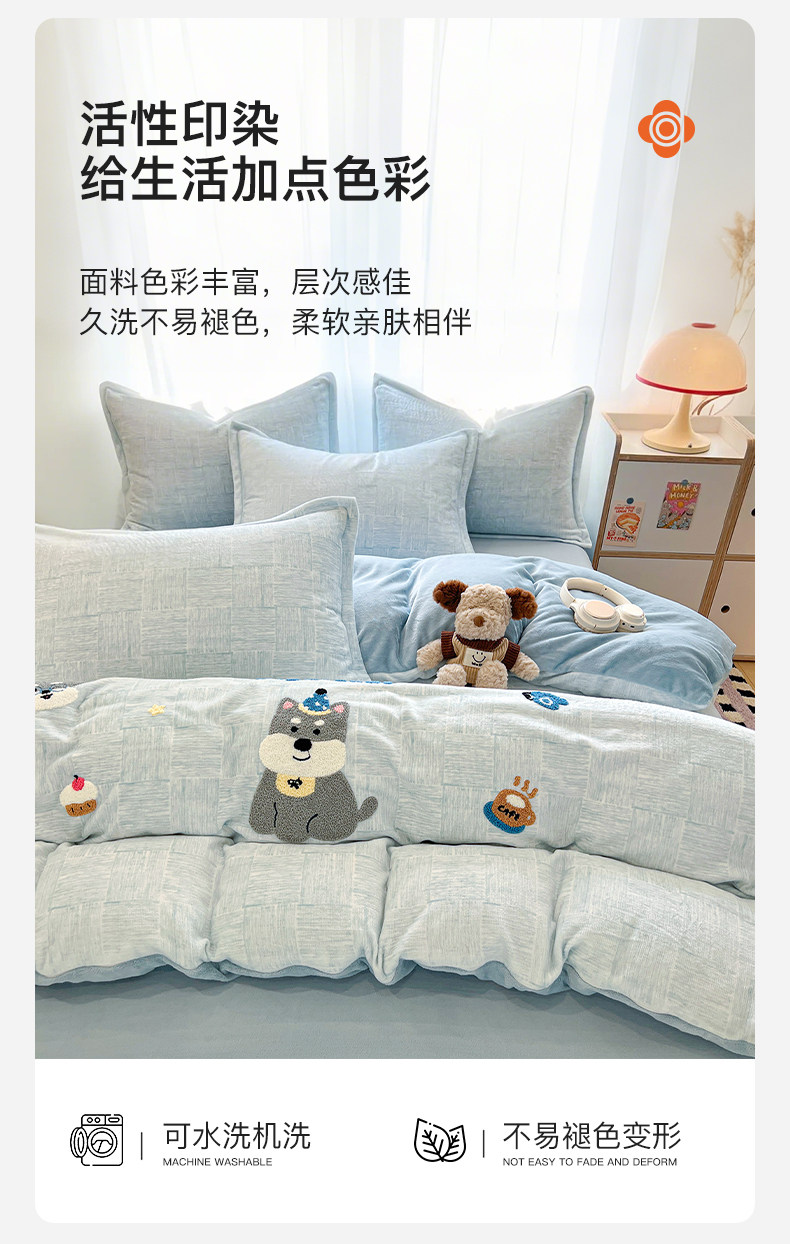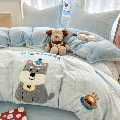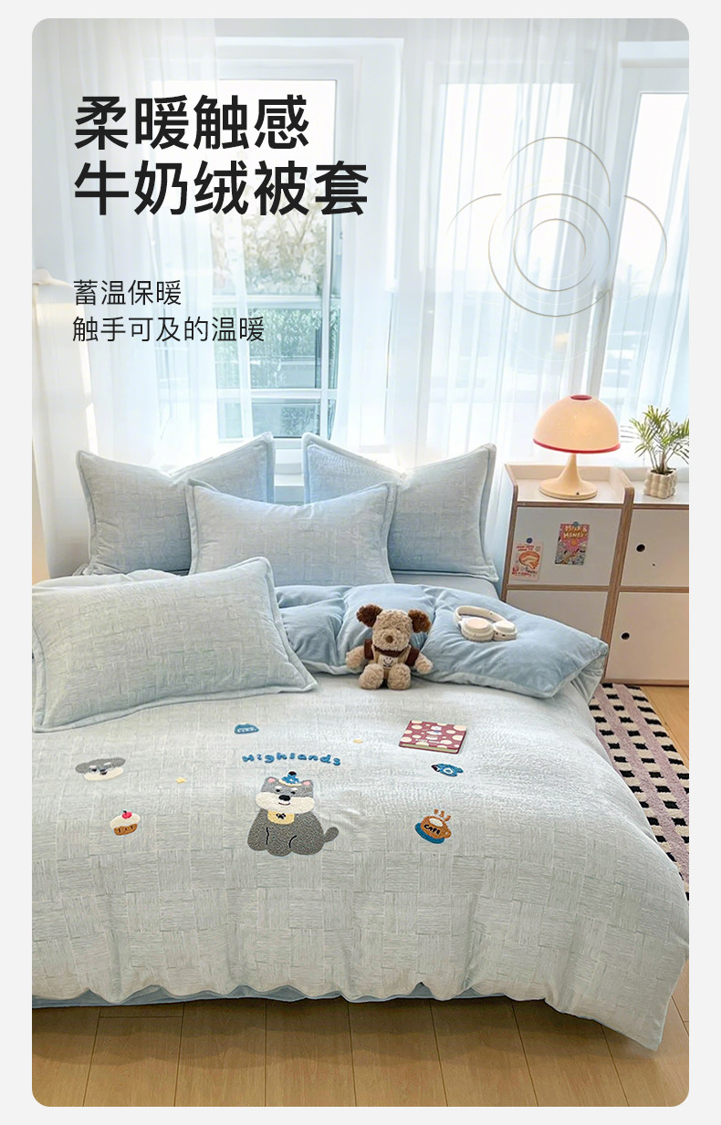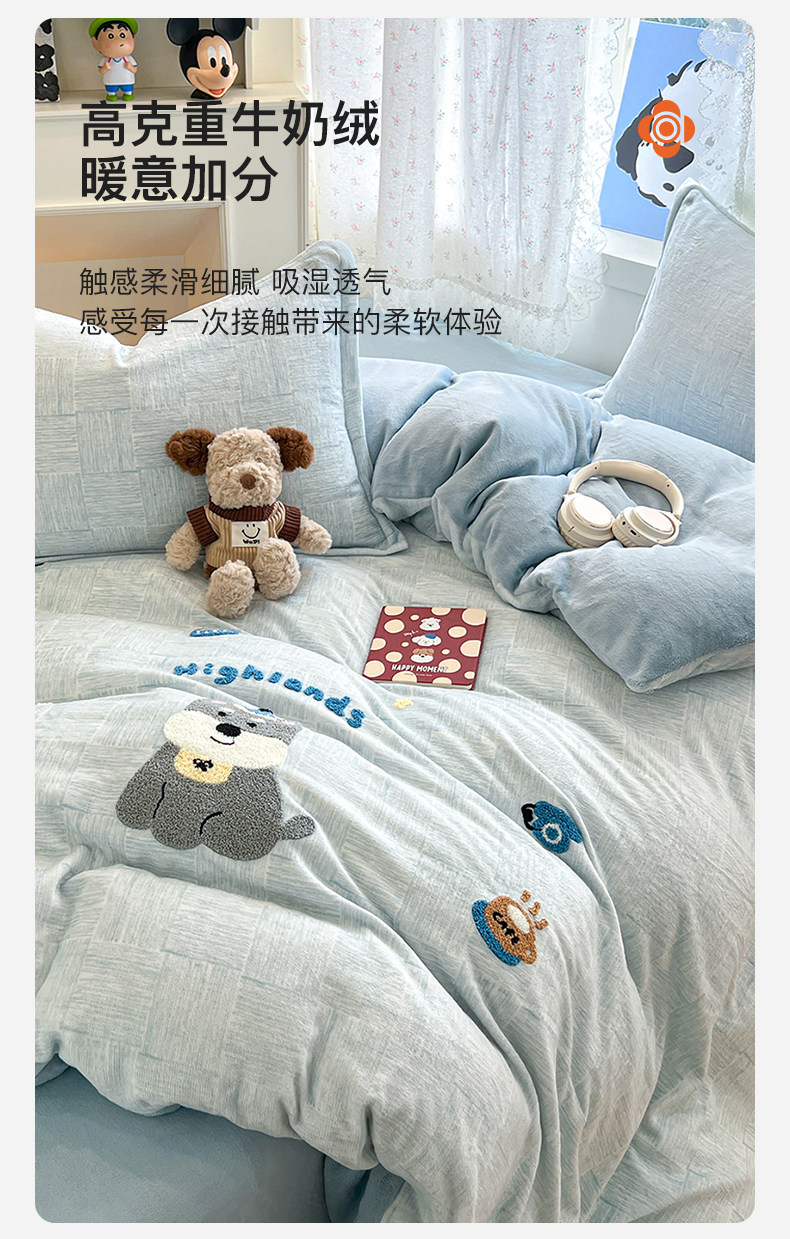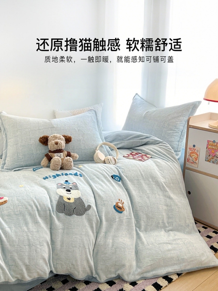 猫咪熊兔【毛巾绣牛奶绒面料 加厚保暖】