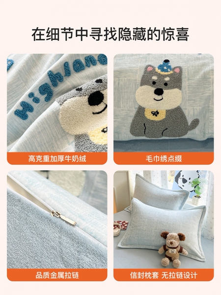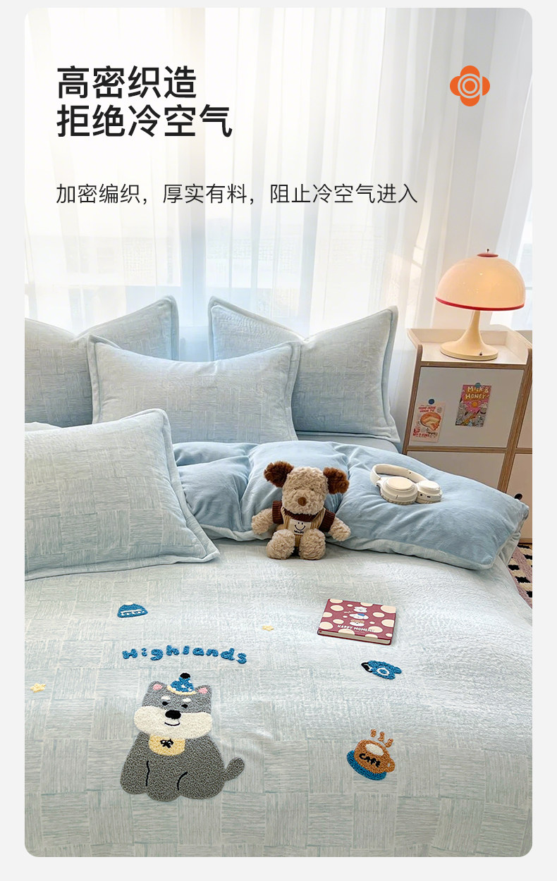 咖啡小狗【毛巾绣牛奶绒面料 加厚保暖】