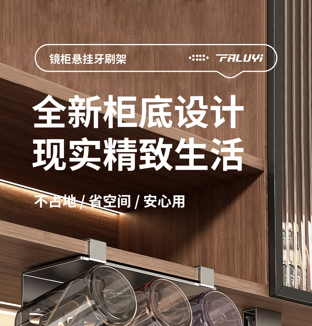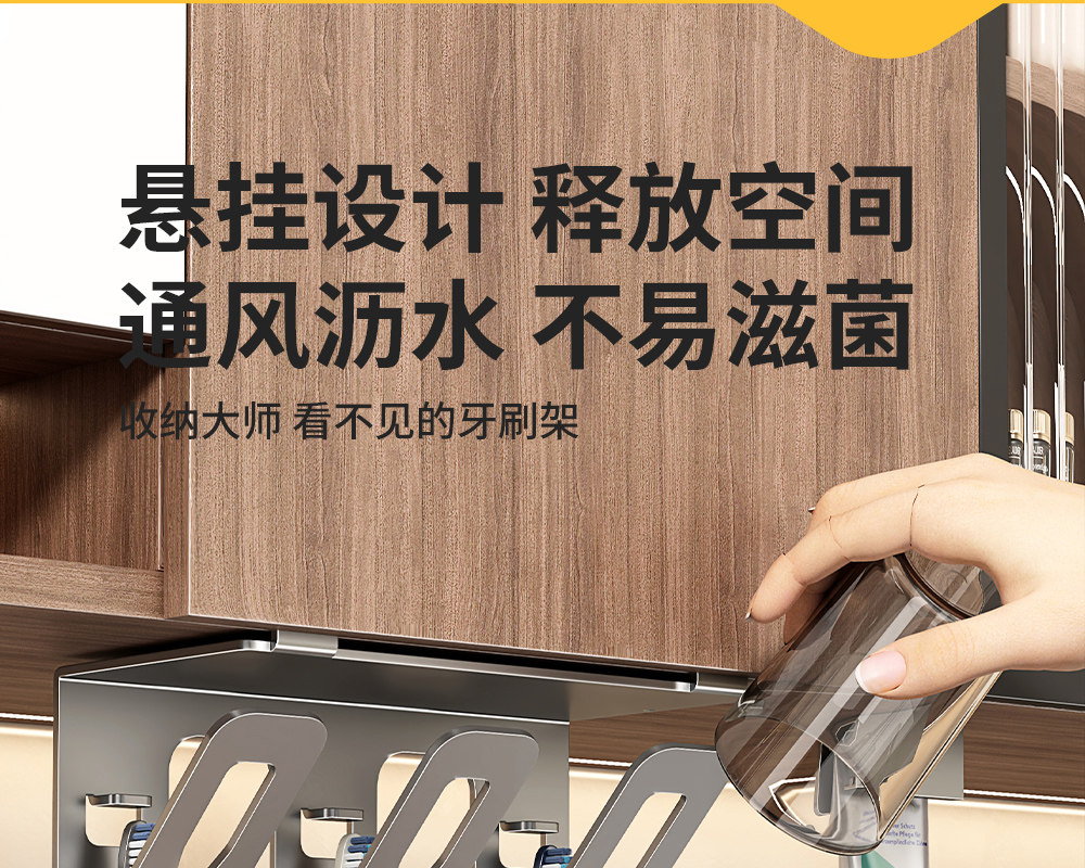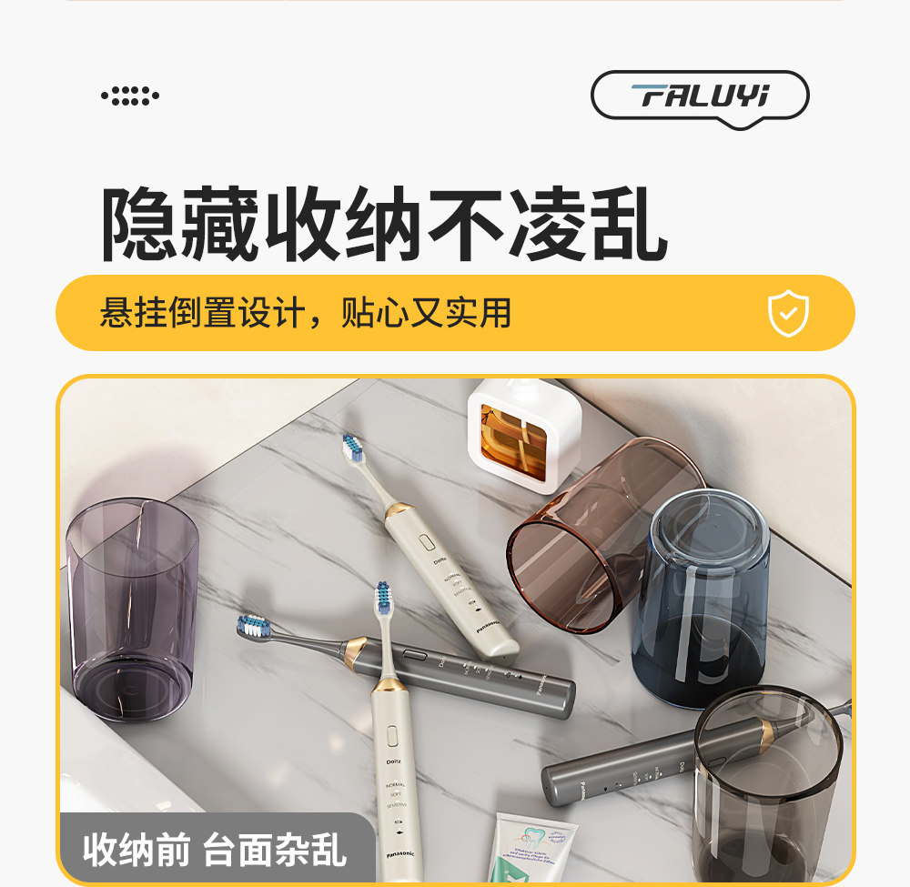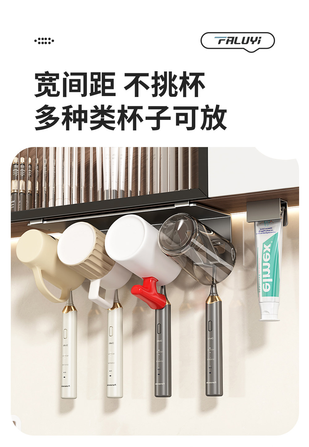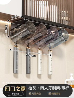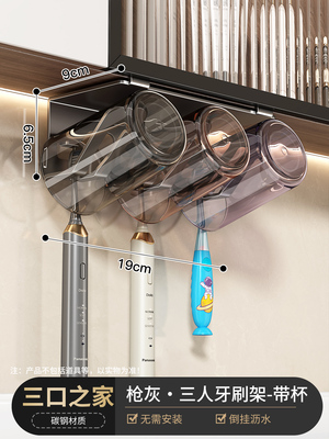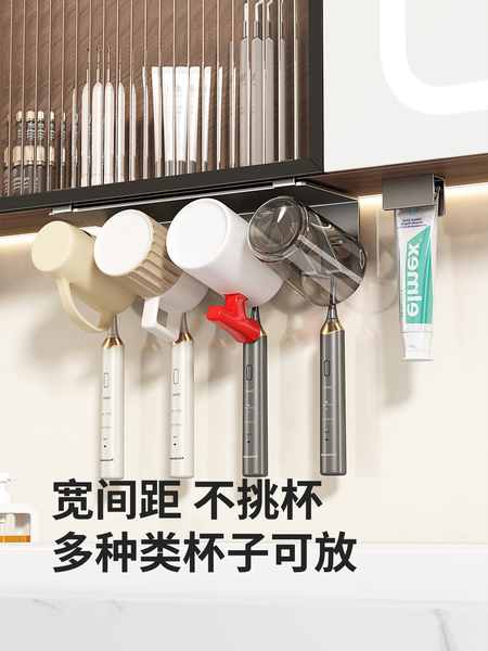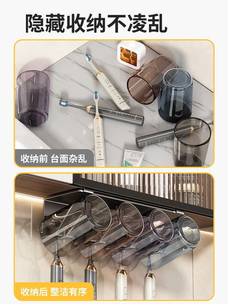 镜柜下牙刷置物架免打孔卫生间洗漱台壁挂漱口杯牙杯电动刷牙杯子