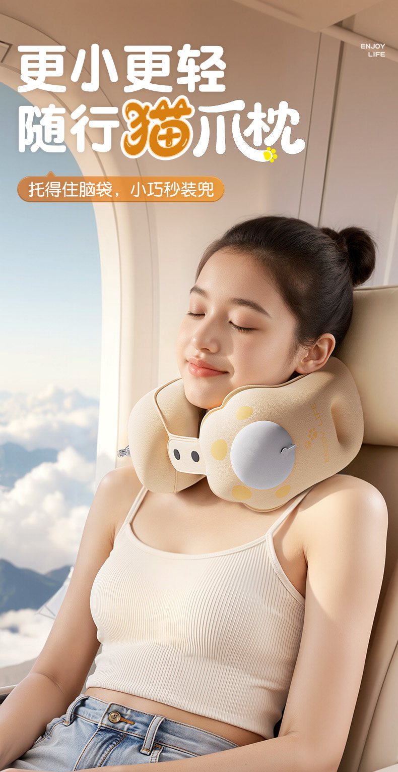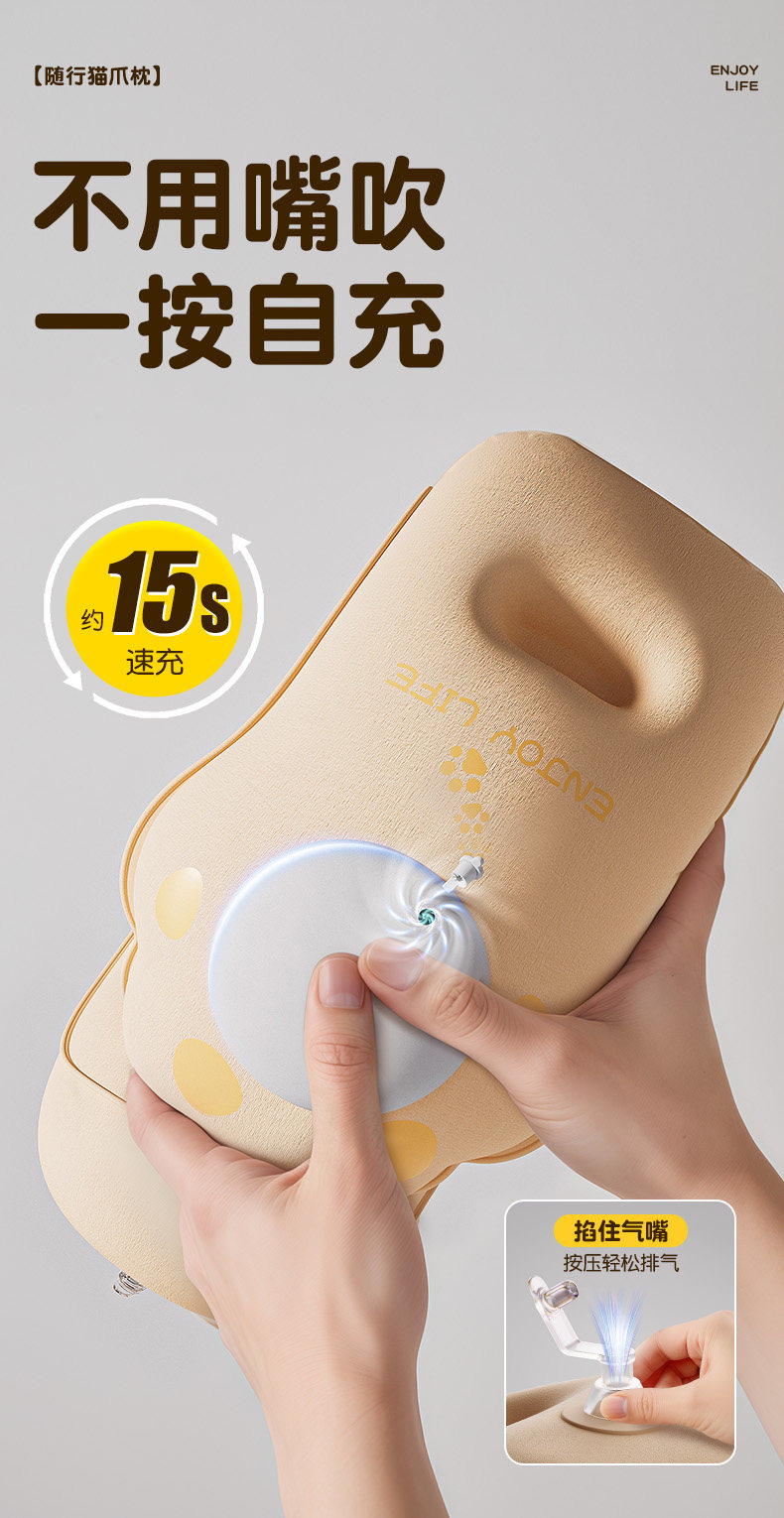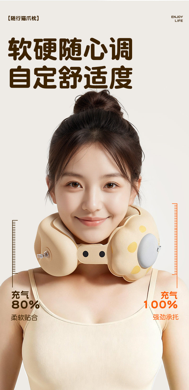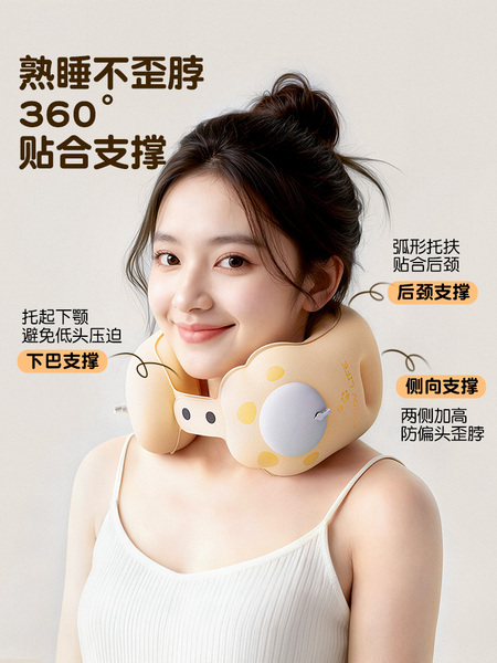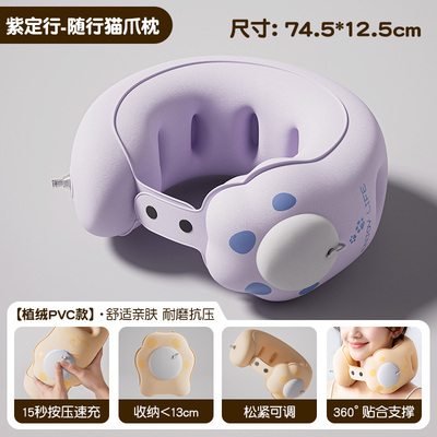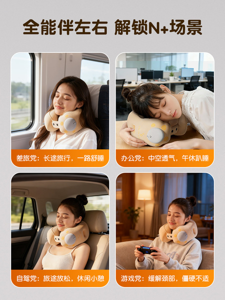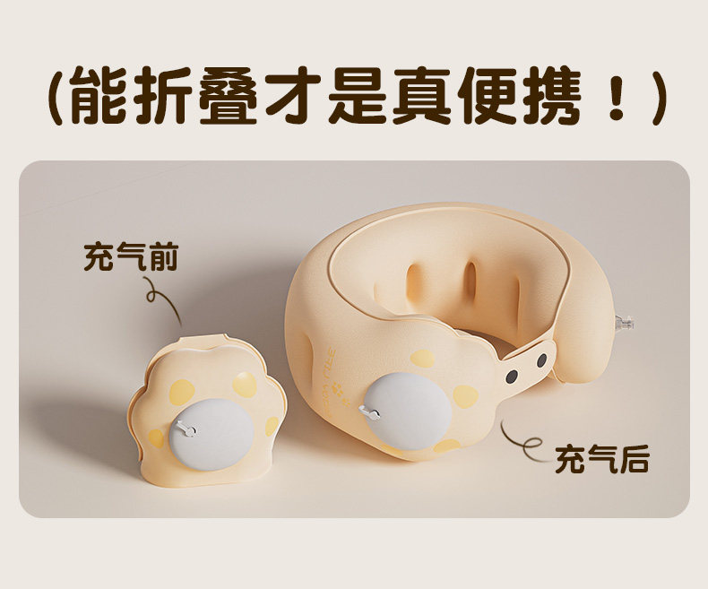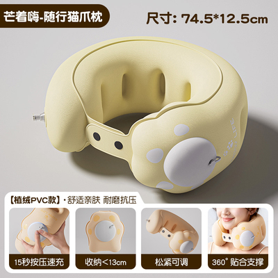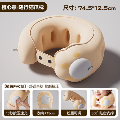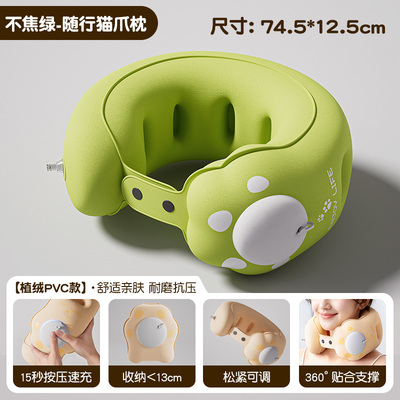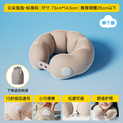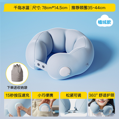 按压充气u型枕便携旅行枕头护颈枕u形枕长途飞机儿童高铁睡觉神器