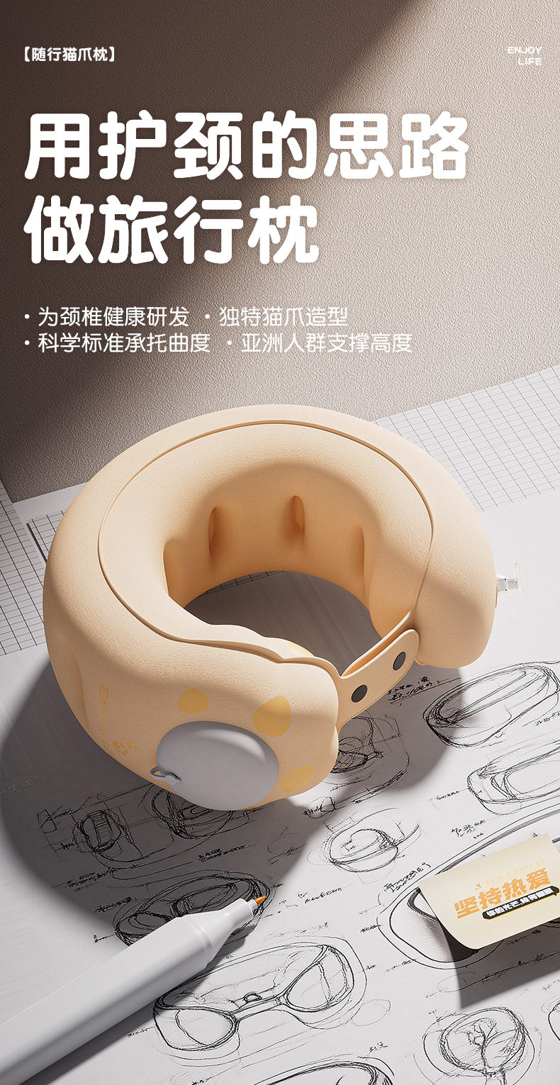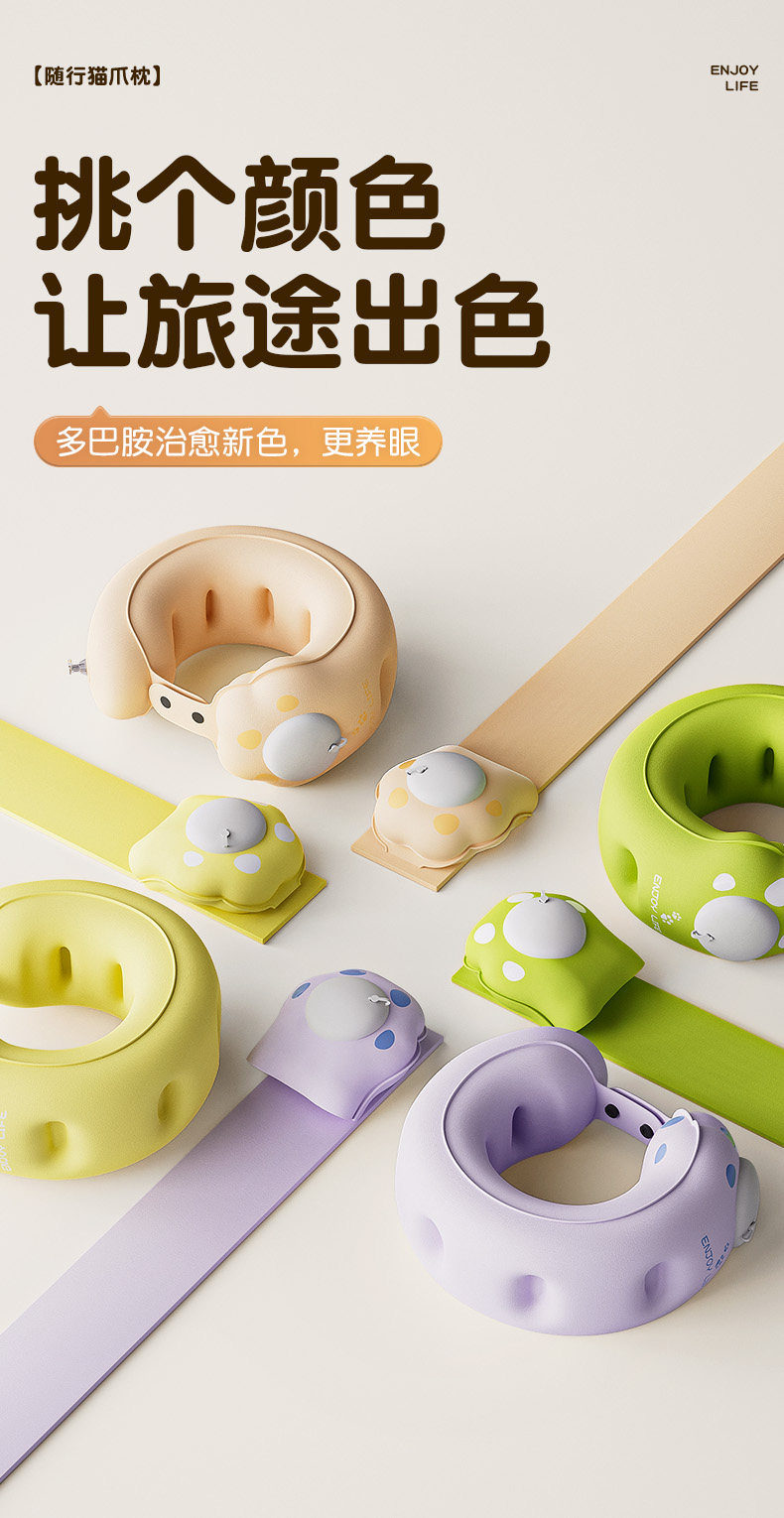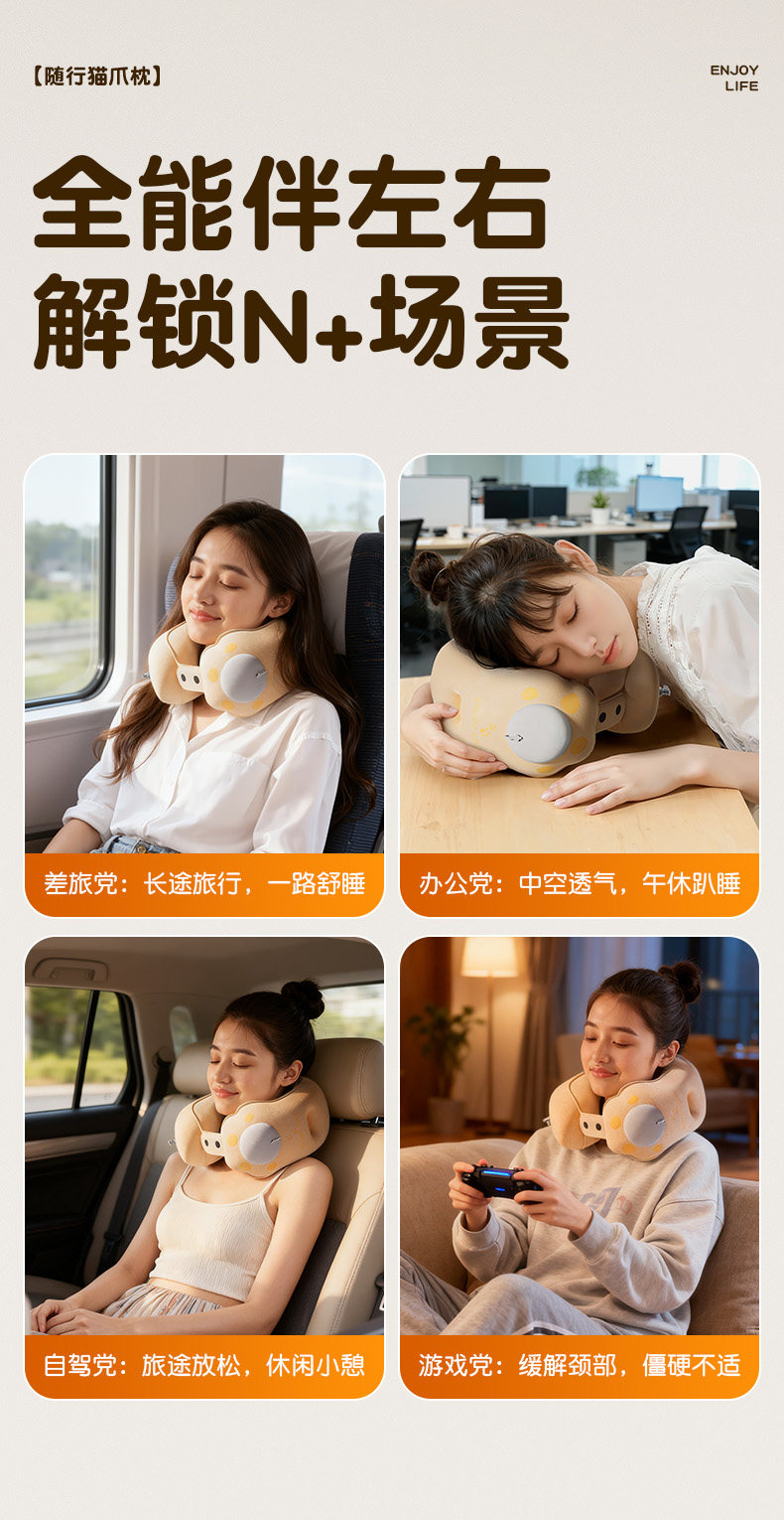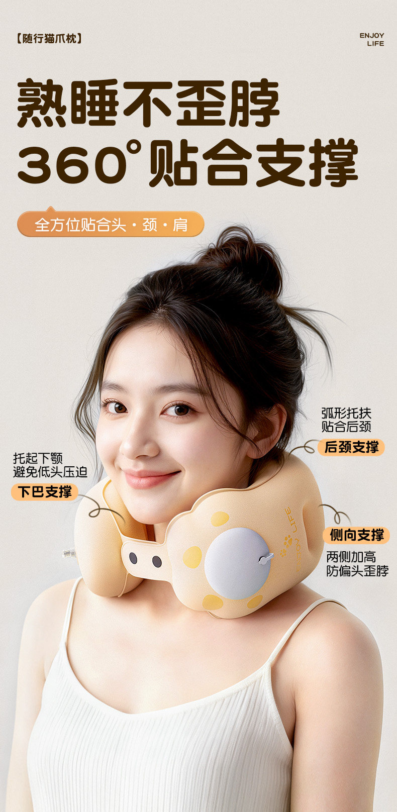按压充气u型枕便携旅行枕头护颈枕u形枕长途飞机儿童高铁睡觉神器