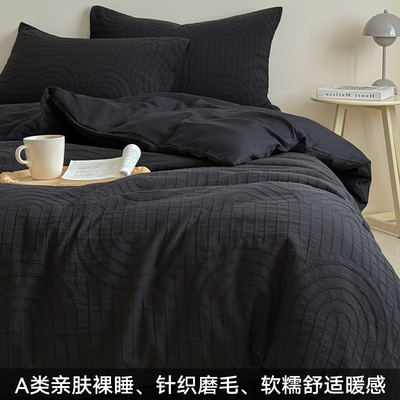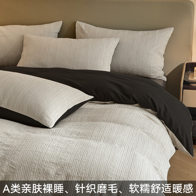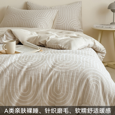 A类裸睡全棉针织棉四件套纯棉磨毛床单被套冬季加厚床上用品床笠4