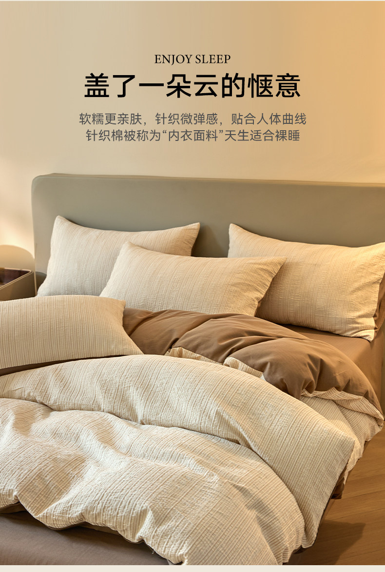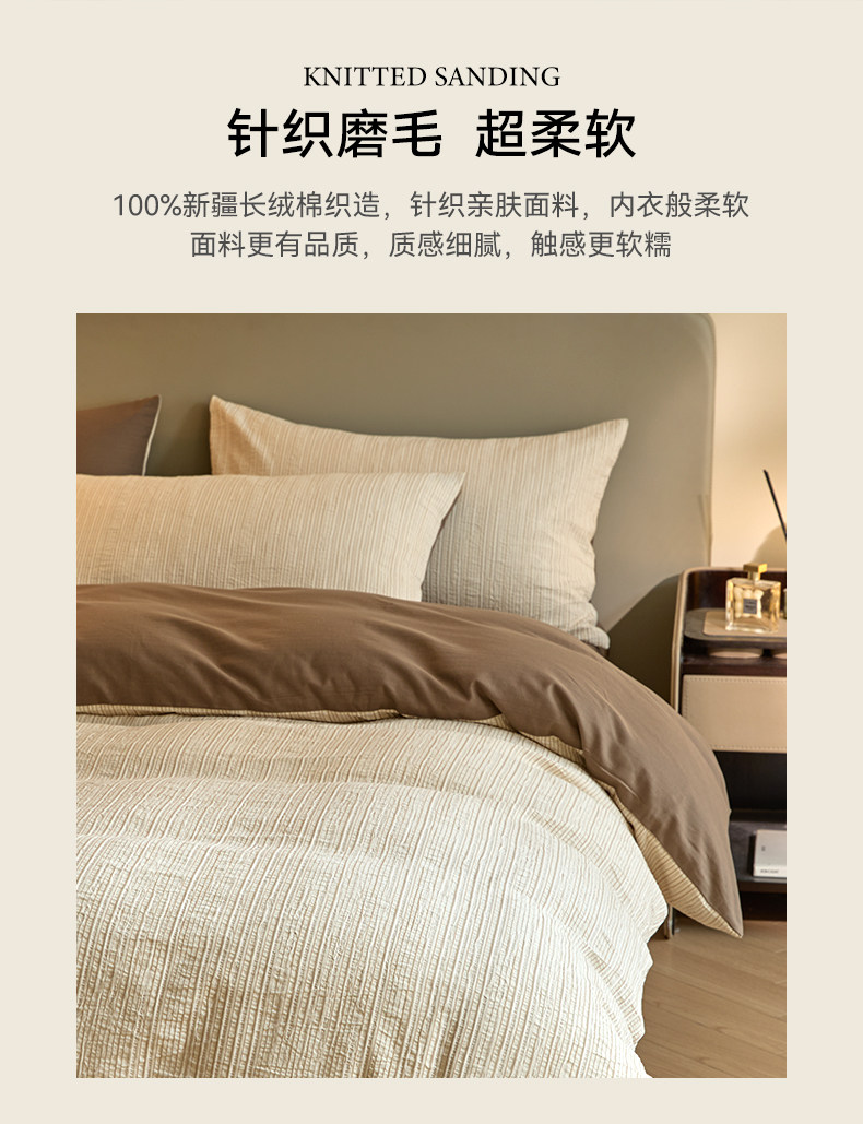 素雅肌理-卡其【针织磨毛♥云感睡眠】A类亲肤裸睡