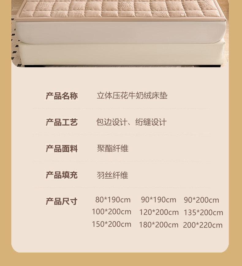 冬天加厚保暖牛奶绒床褥垫180x200家用卧室防滑褥子铺底毛毯铺床