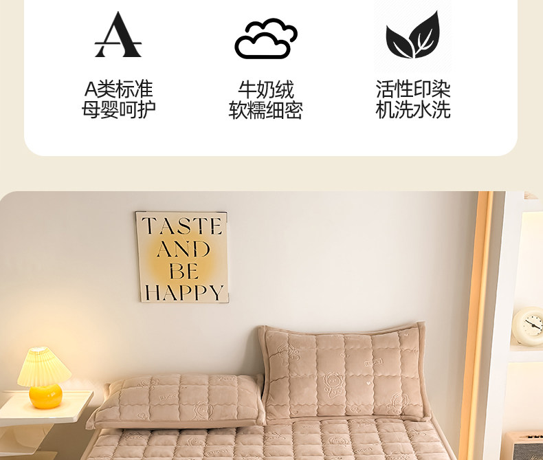 床垫三件套180x220cm+枕套一对【A类抗菌 防螨可机洗】