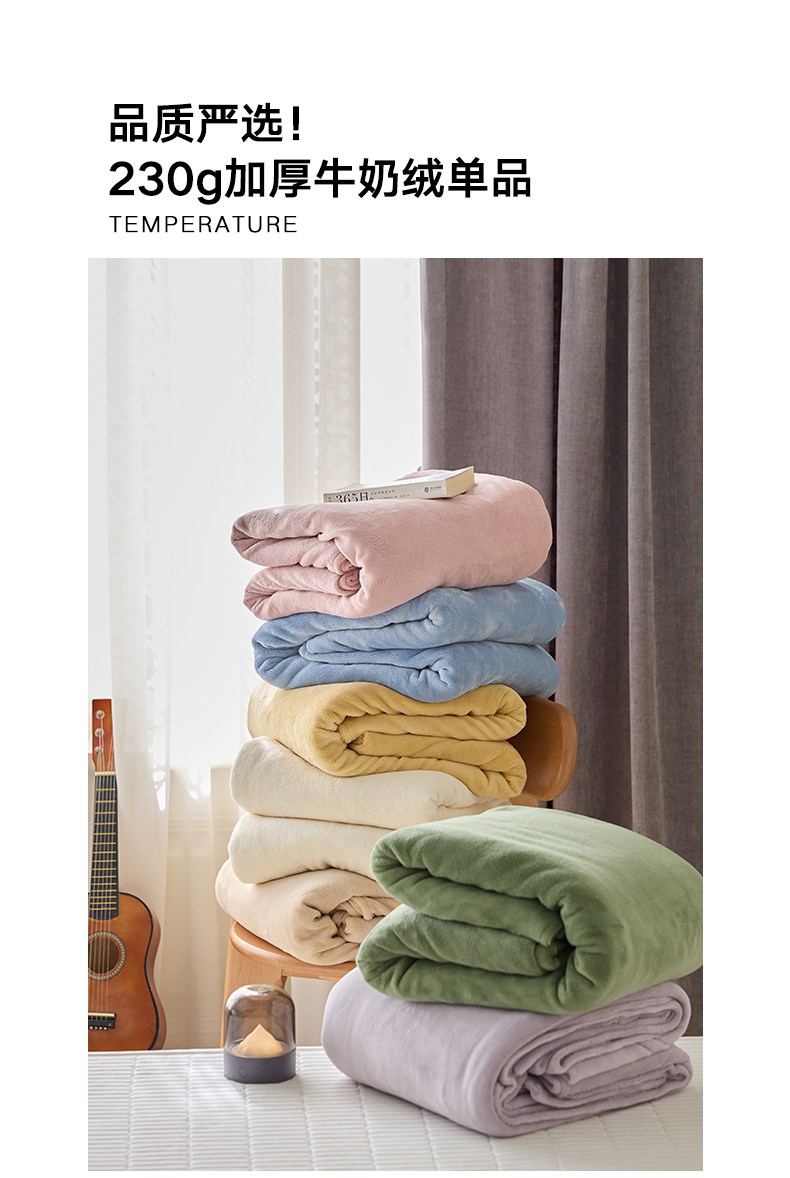 | 绒毛长短适中,柔软亲肤不扎人,抓在手里特别温暖,聚集了轻、薄、软、柔、糯的优点!躺下很快就暖和。 |