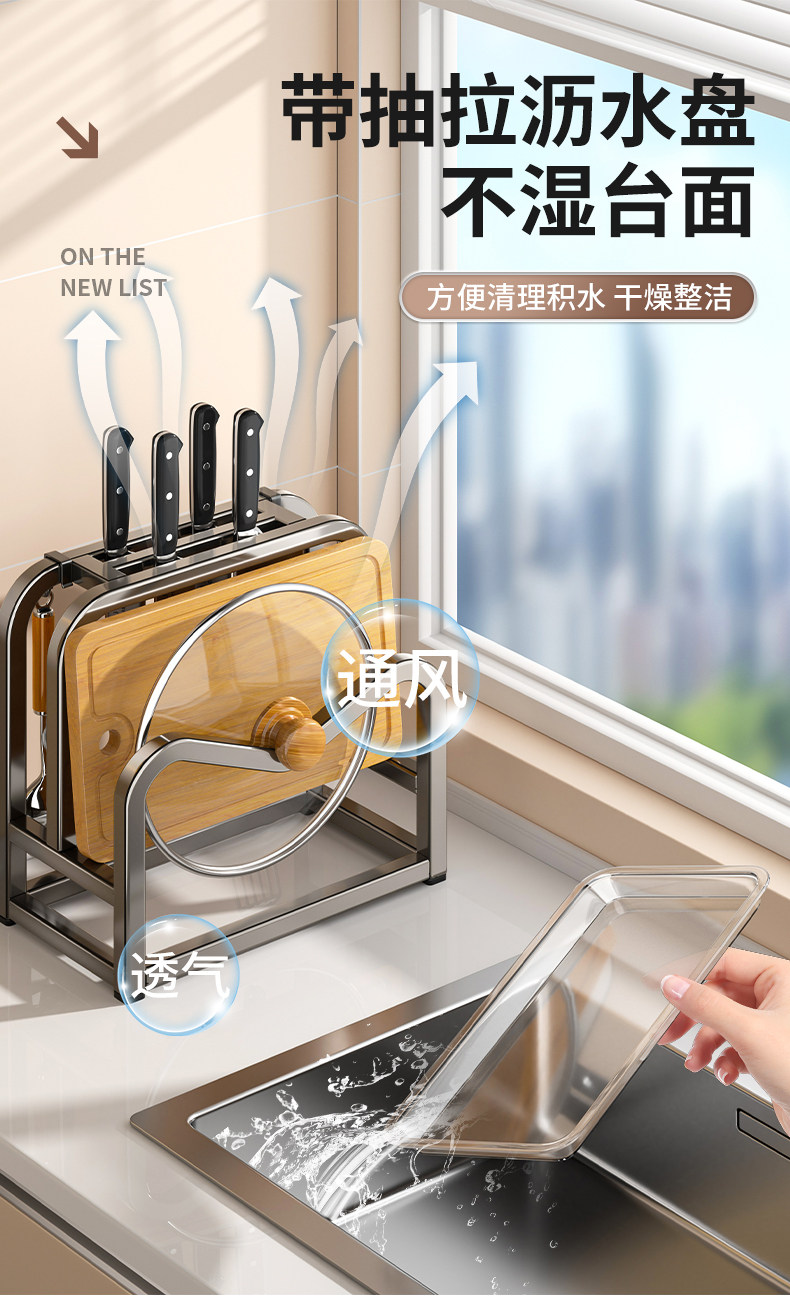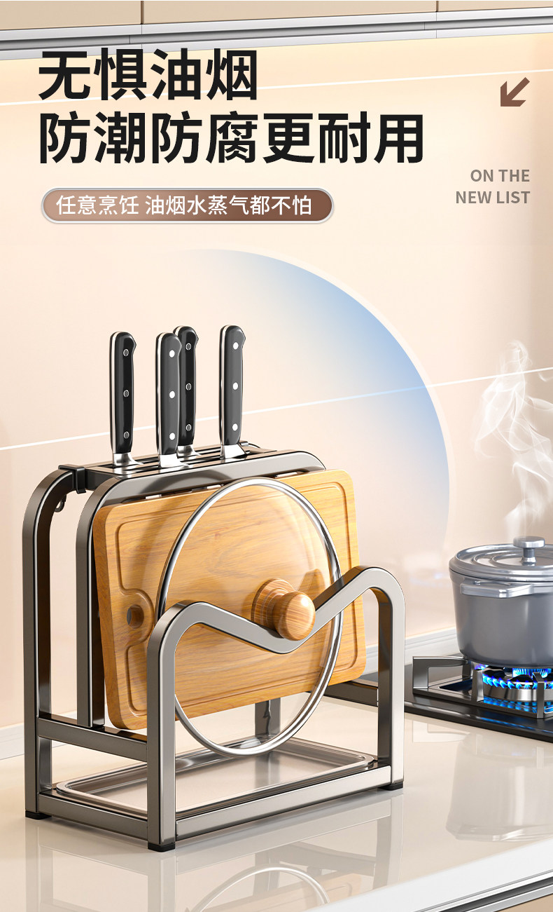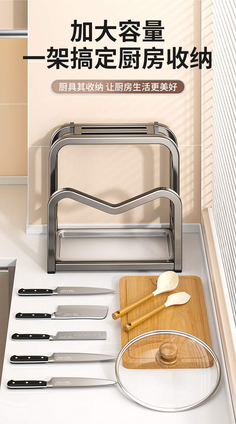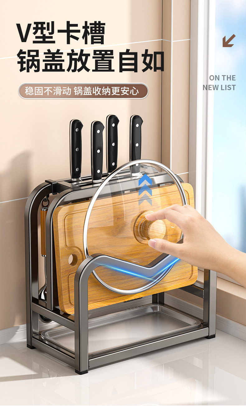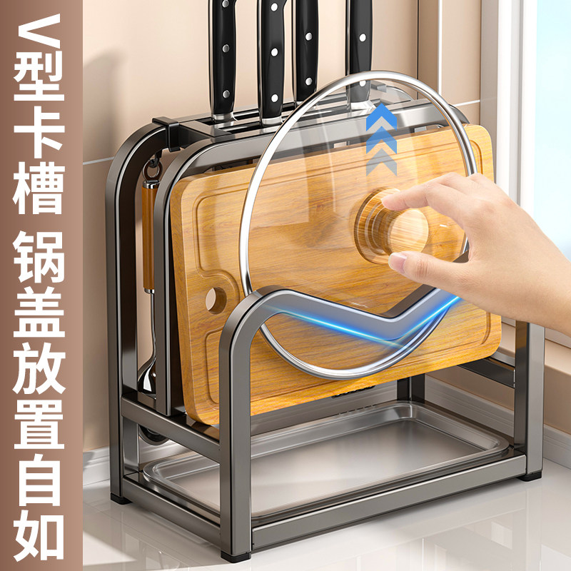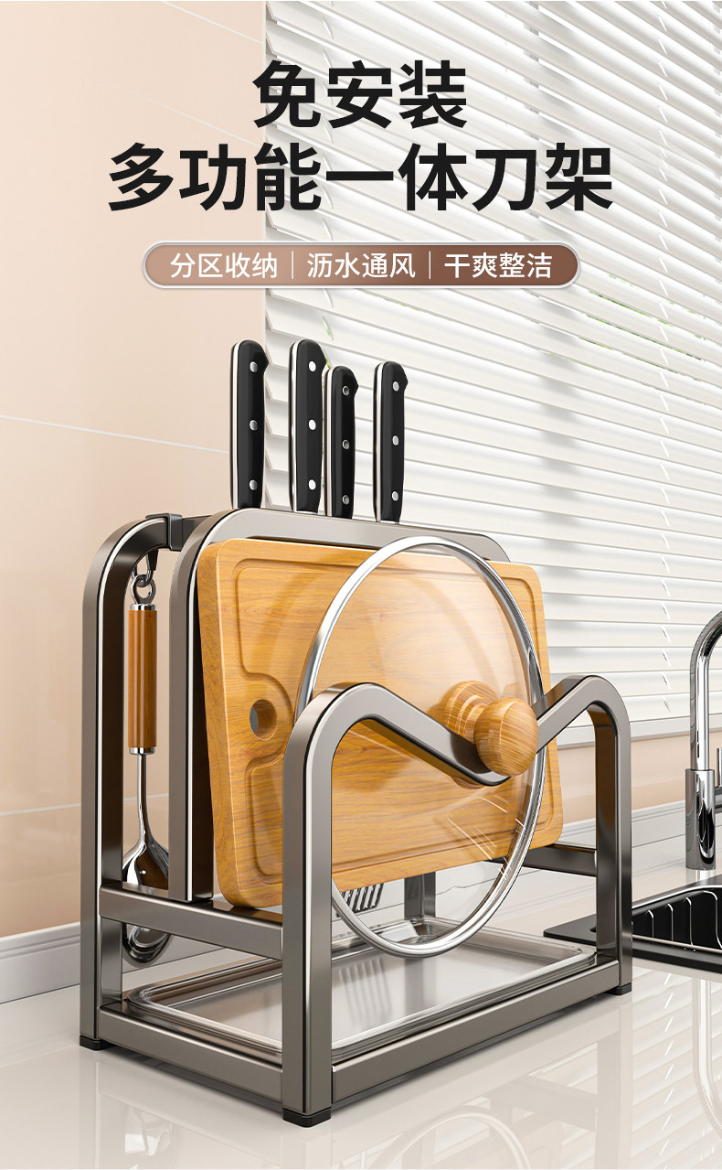 厨房刀架置物架多功能菜板刀具座台面菜刀砧板锅盖一体收纳放置架