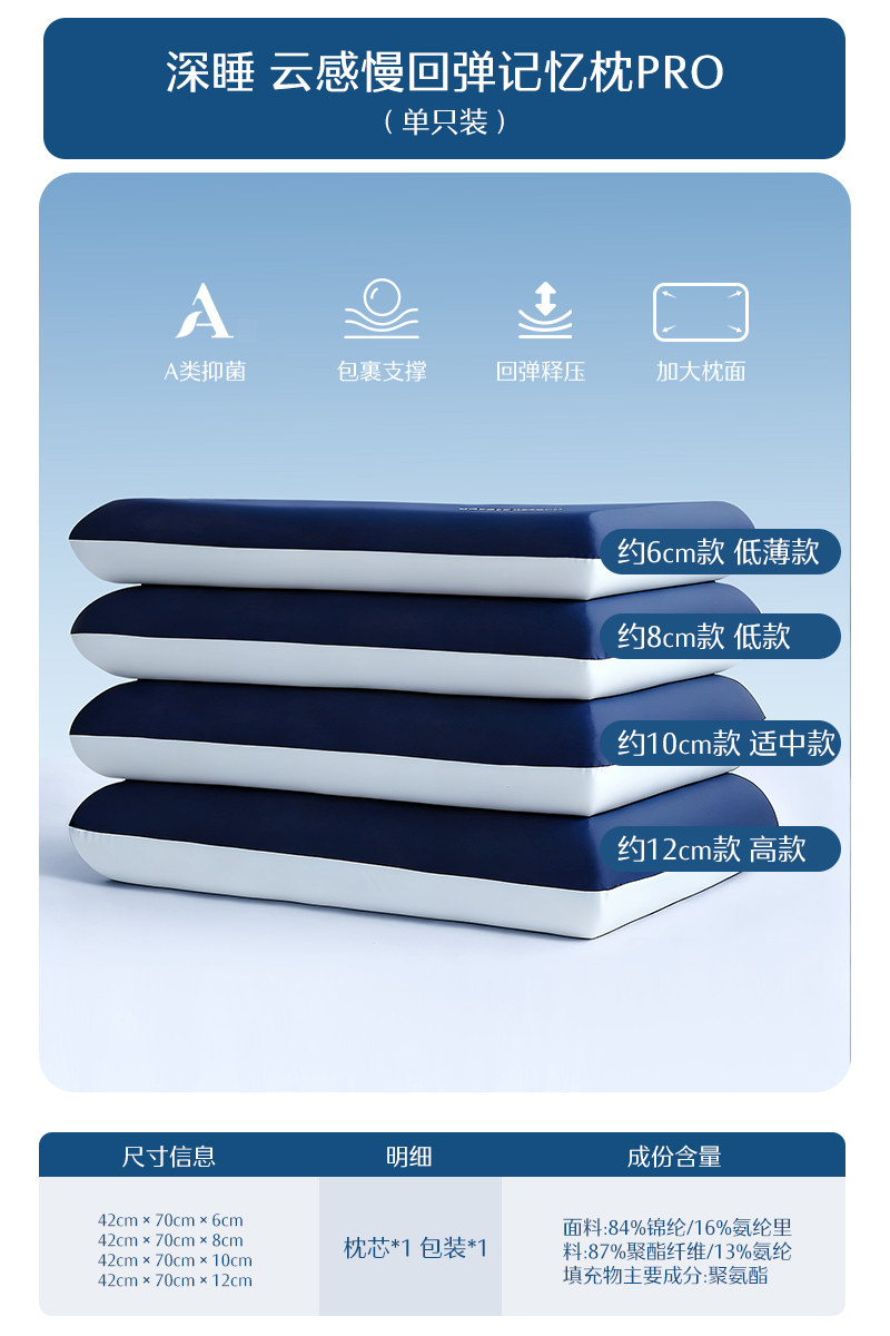 记忆枕【慢回弹+A类抑菌】深睡·云感Pro