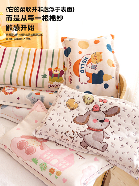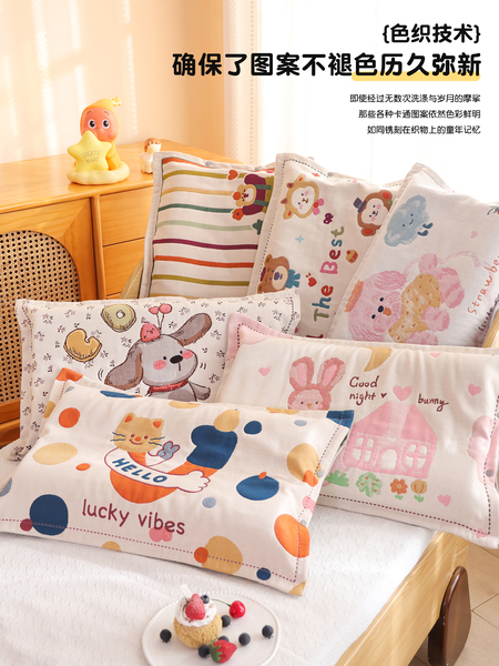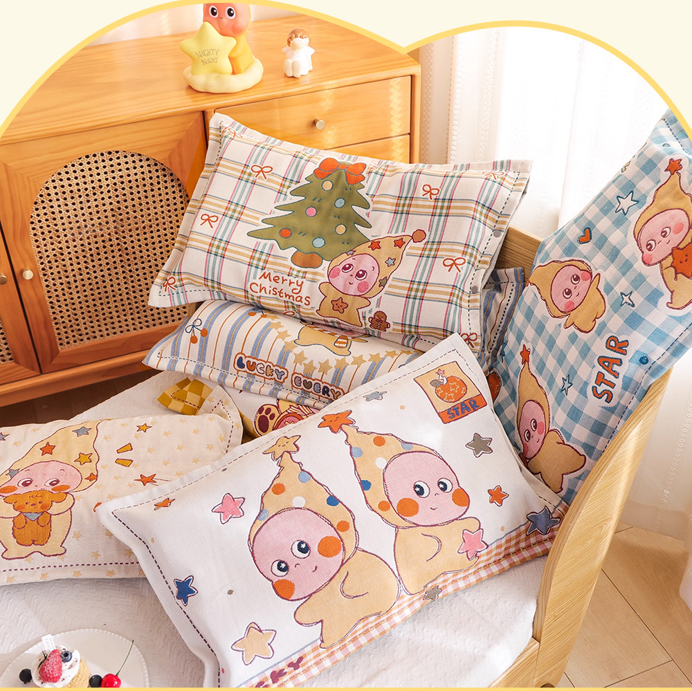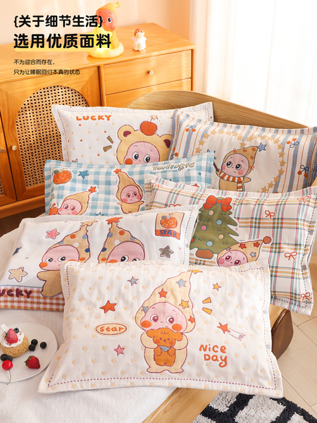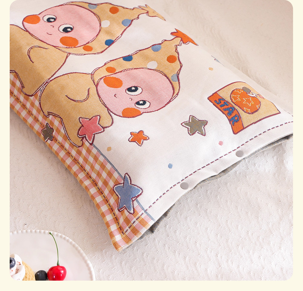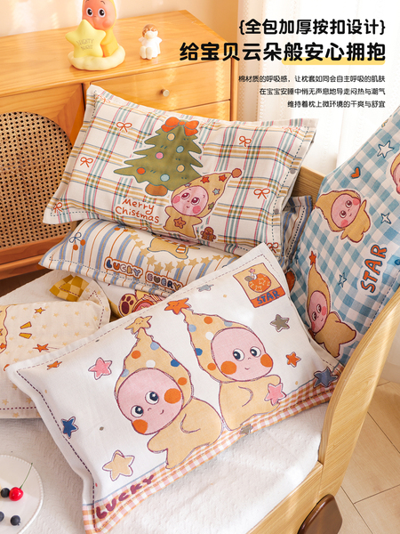 按扣式纯棉纱布卡通儿童枕套全棉全包宝宝家用加厚柔软枕芯内胆套