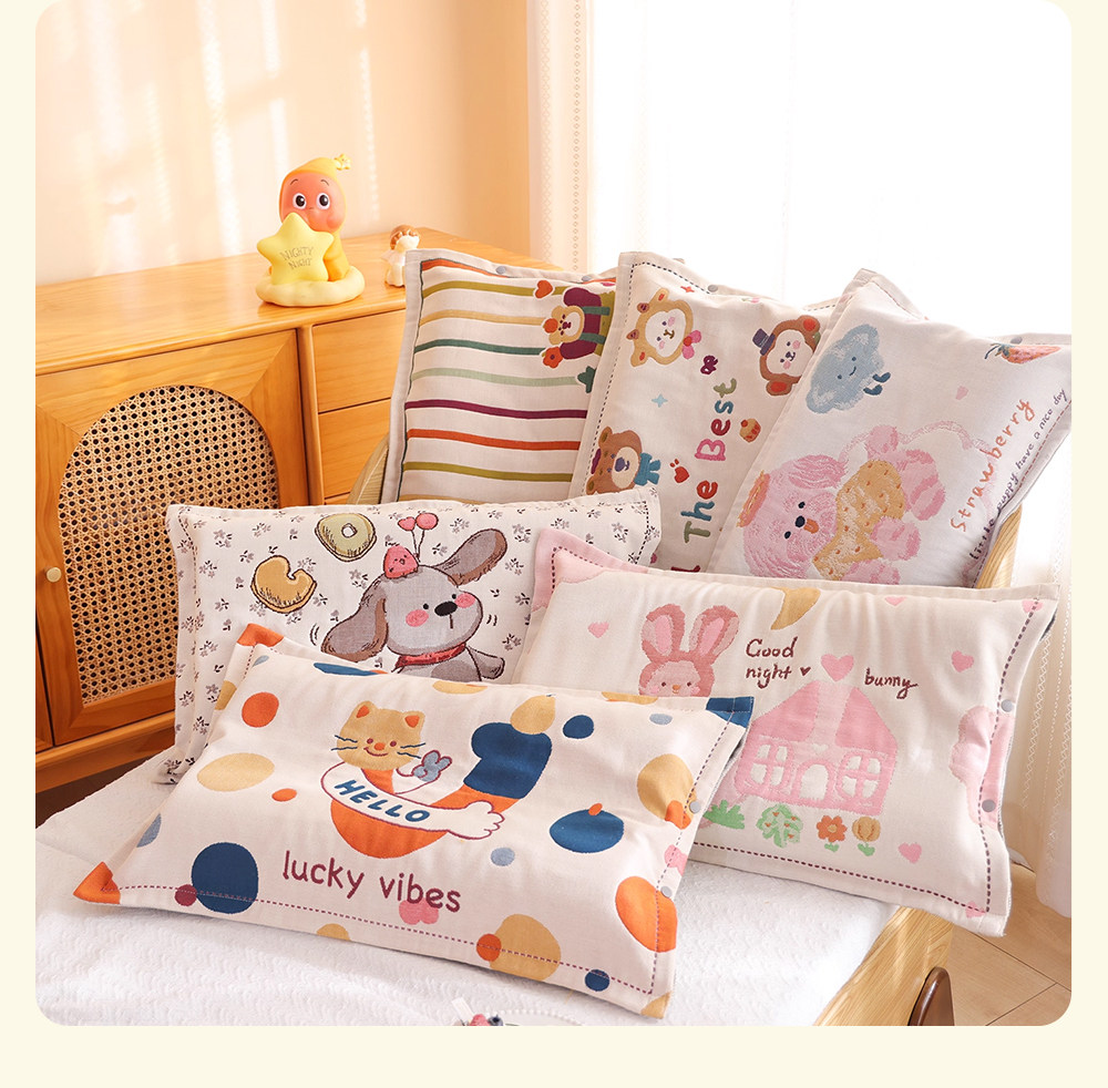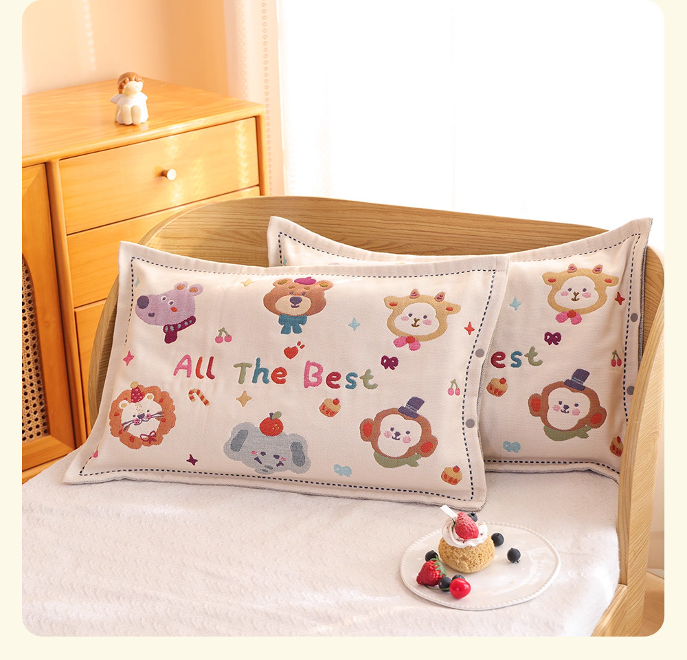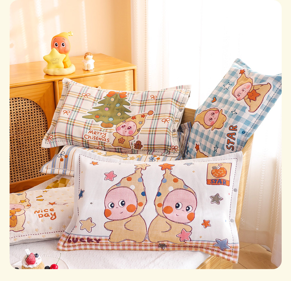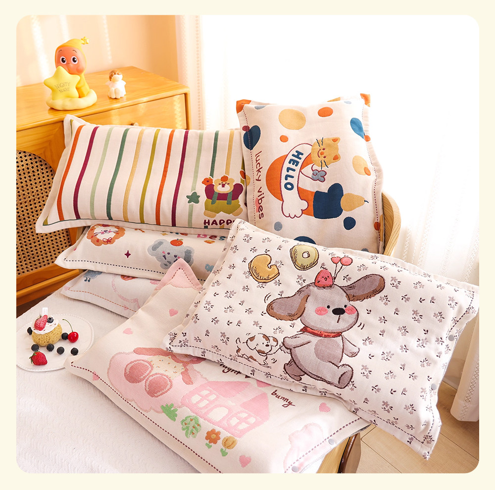 按扣式纯棉纱布卡通儿童枕套全棉全包宝宝家用加厚柔软枕芯内胆套