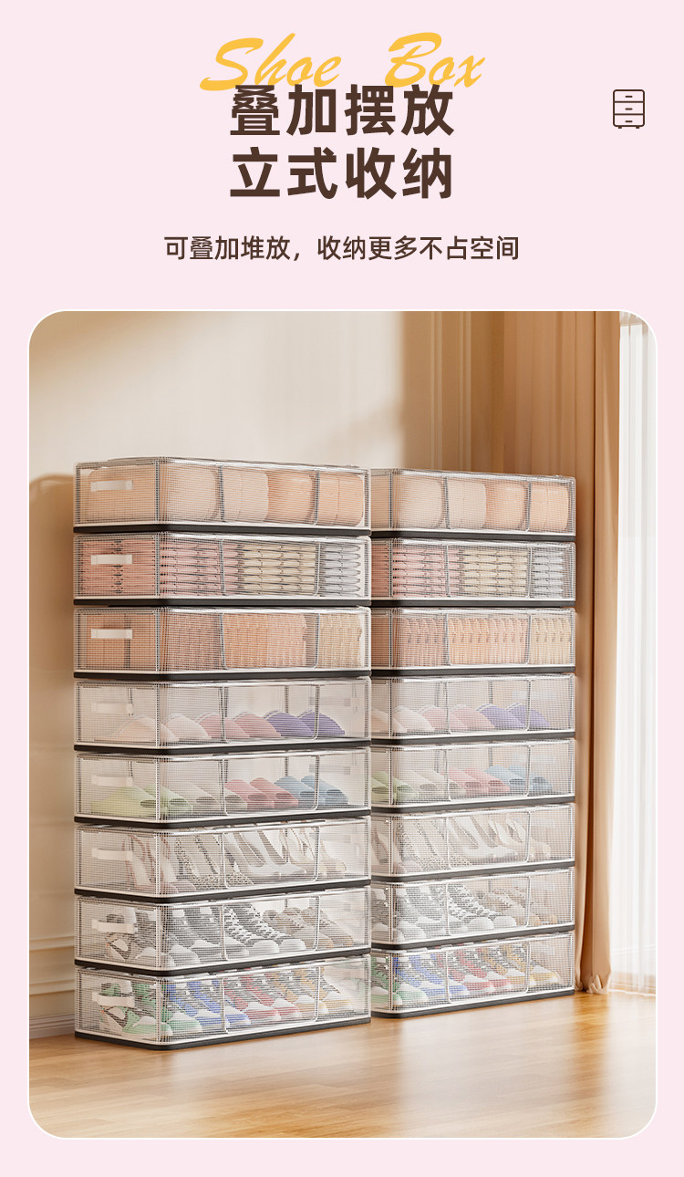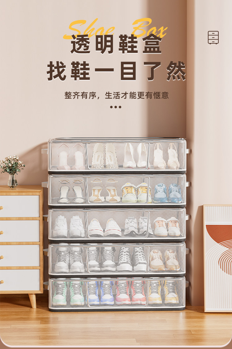 鞋子收纳神器鞋柜鞋盒透明省空间装存放靴子拖鞋专用可叠加整理箱