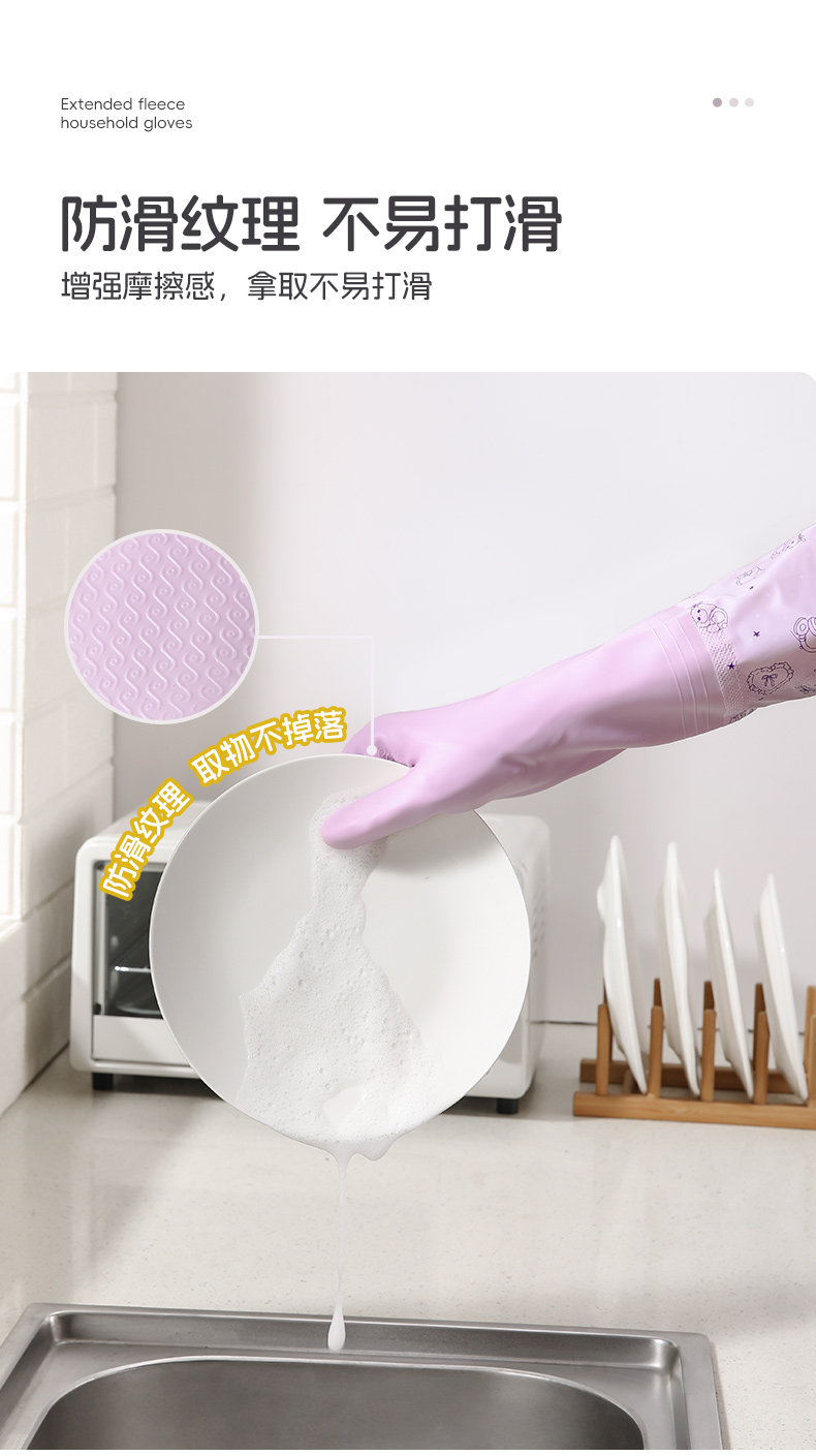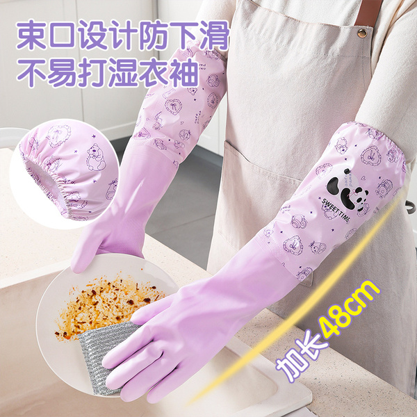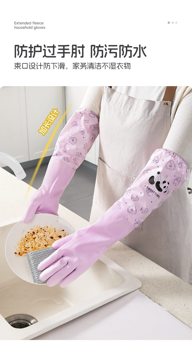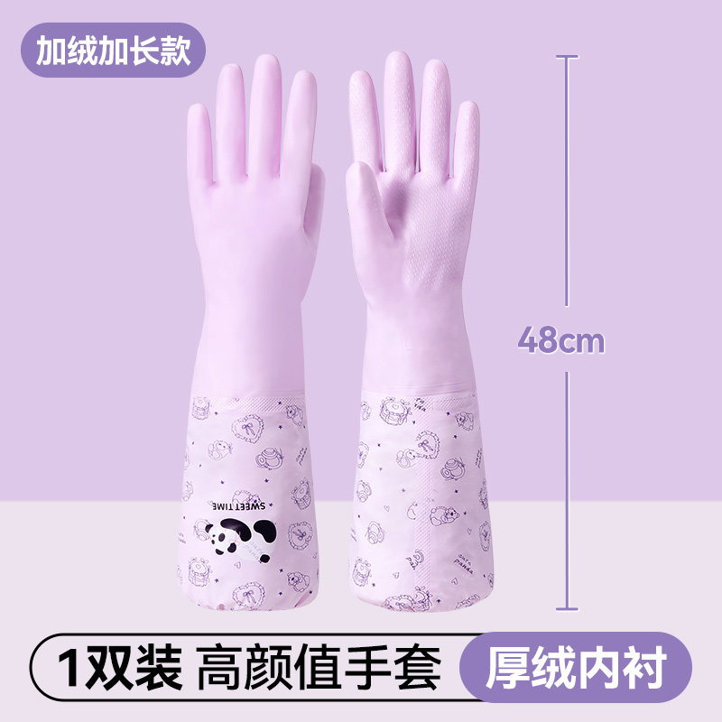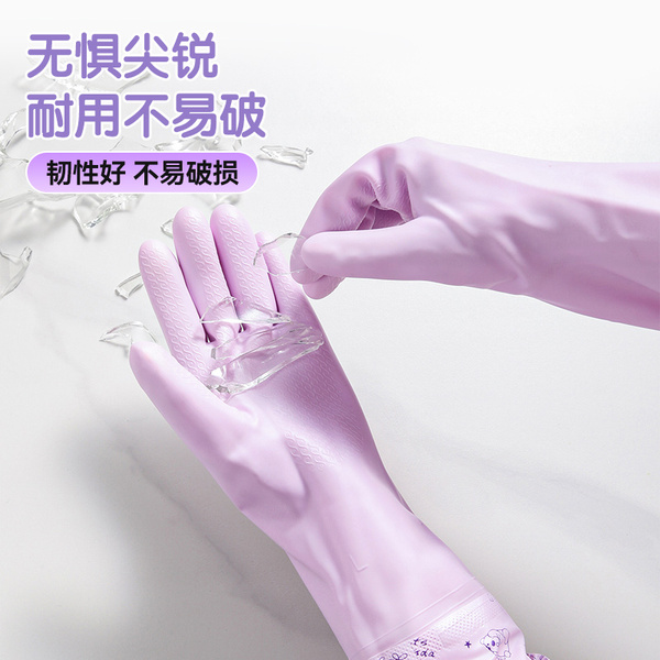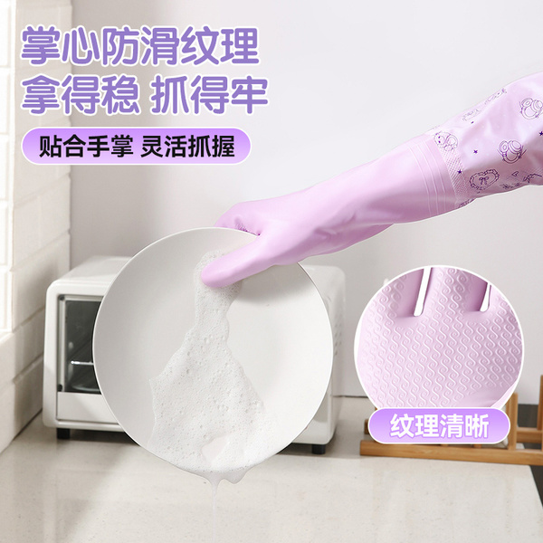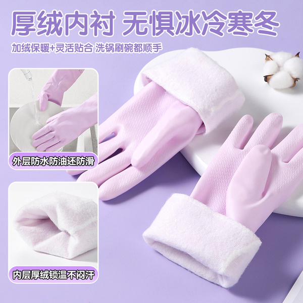 美丽雅加绒手套女防水耐用厨房家务洗碗洗衣服乳胶皮橡胶加厚清洁