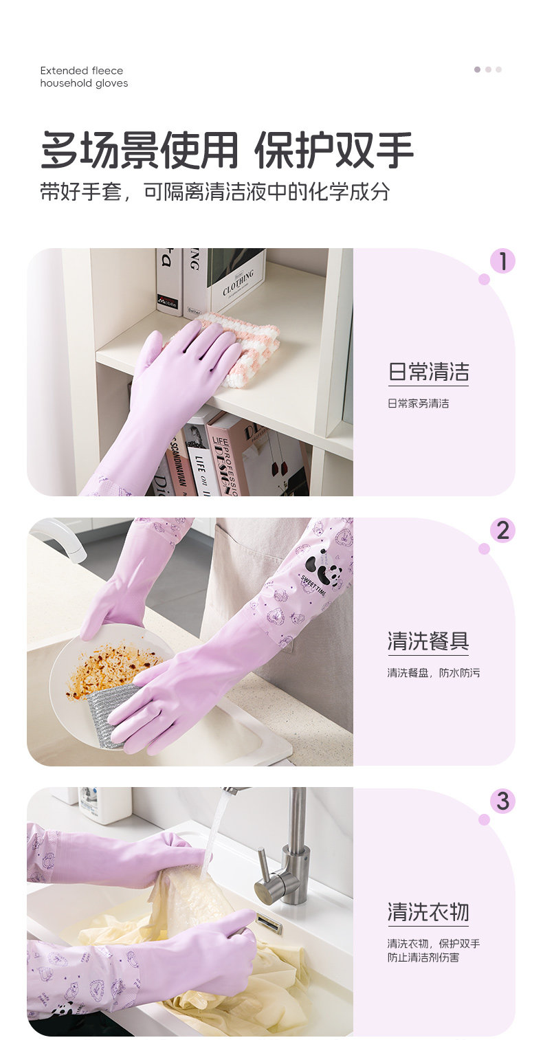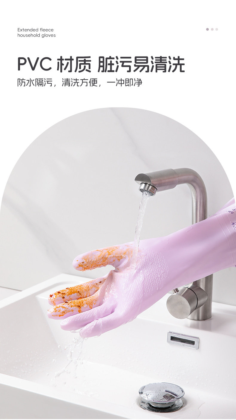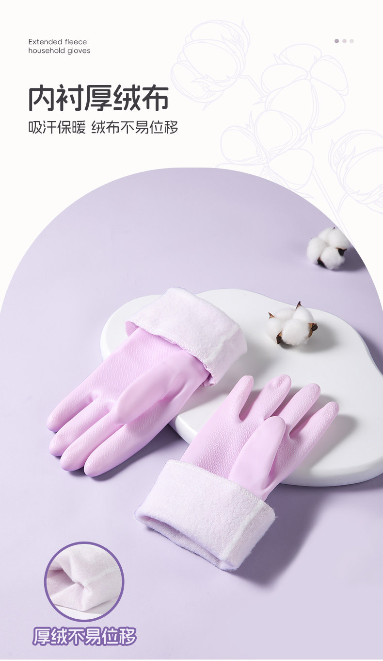 美丽雅加绒手套女防水耐用厨房家务洗碗洗衣服乳胶皮橡胶加厚清洁