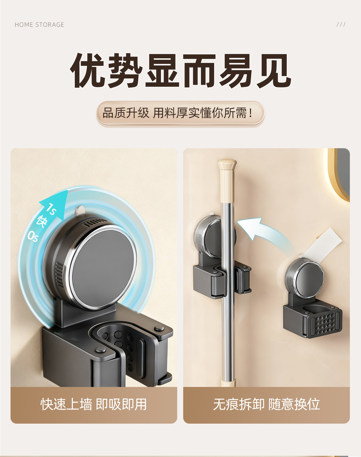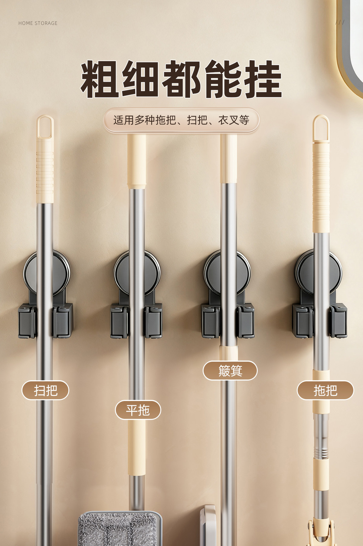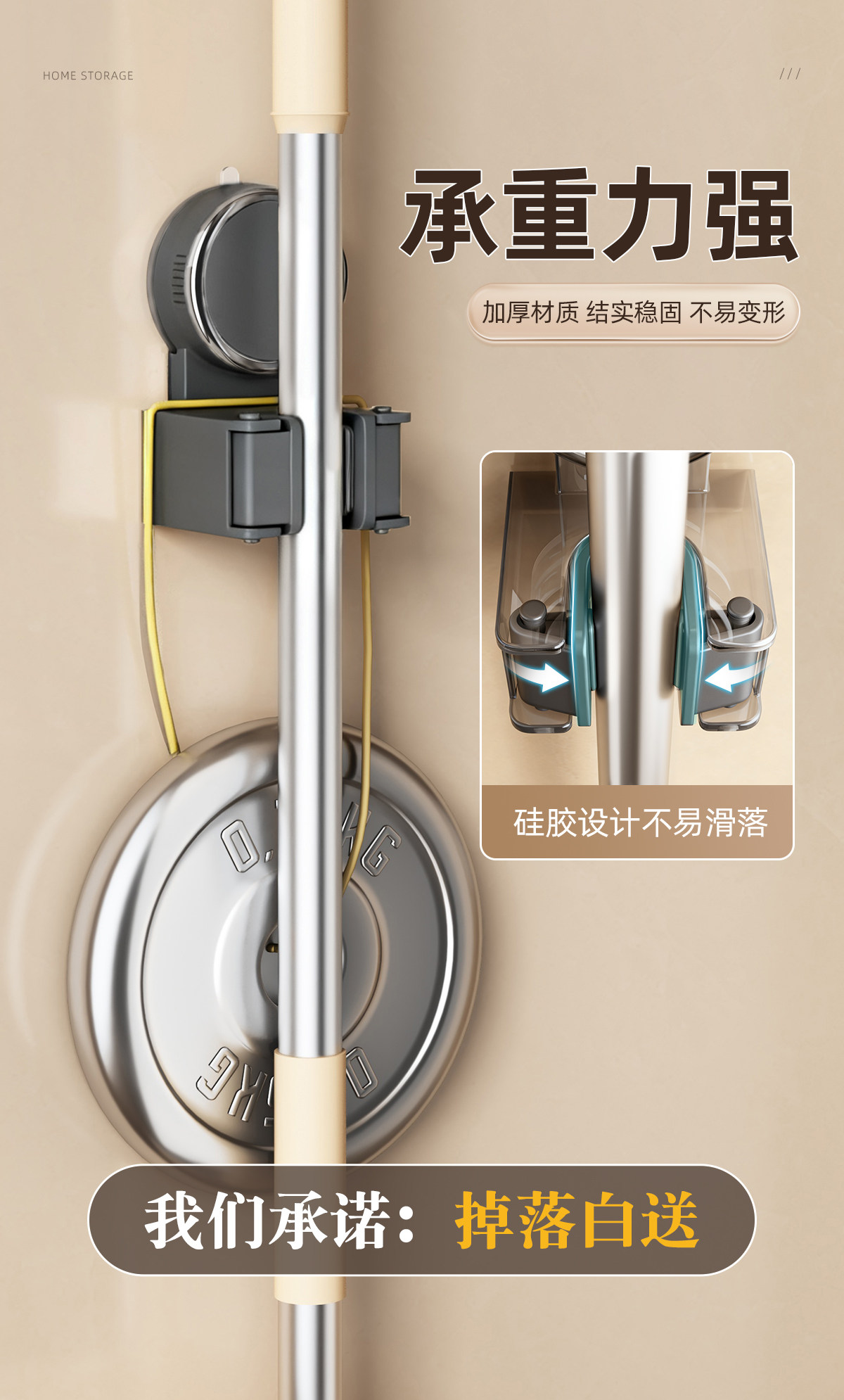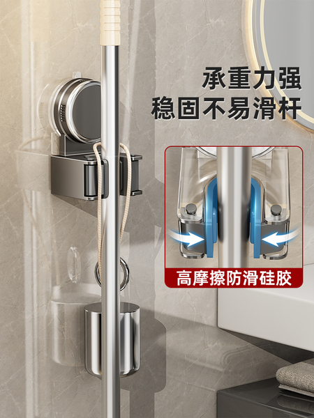 优勤拖把壁挂夹免打孔强力吸盘挂钩扫把固定神器阳台卫生间置物架