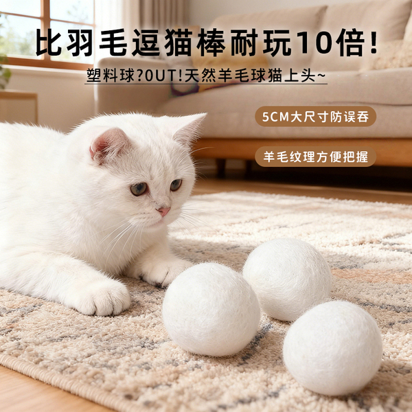 家宠必备玩具【3个装】5.5厘米羊毛静音球