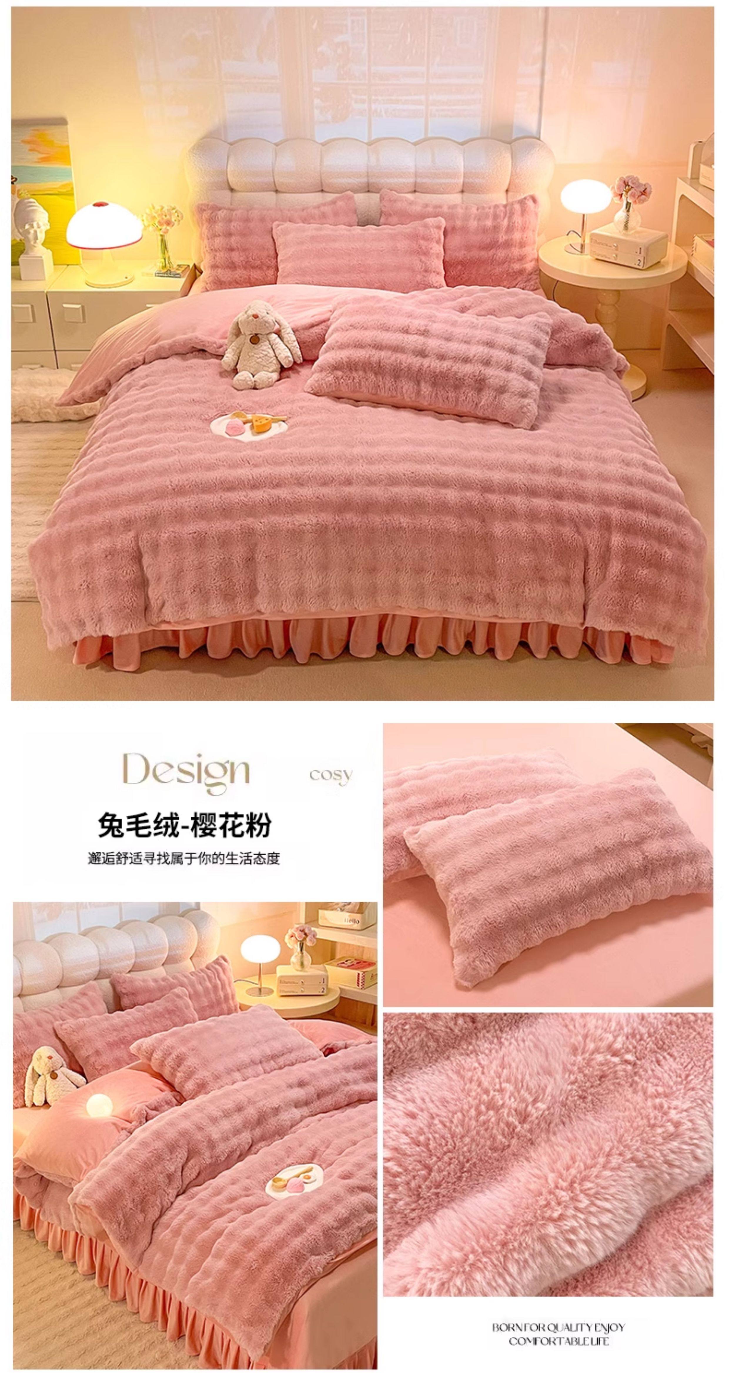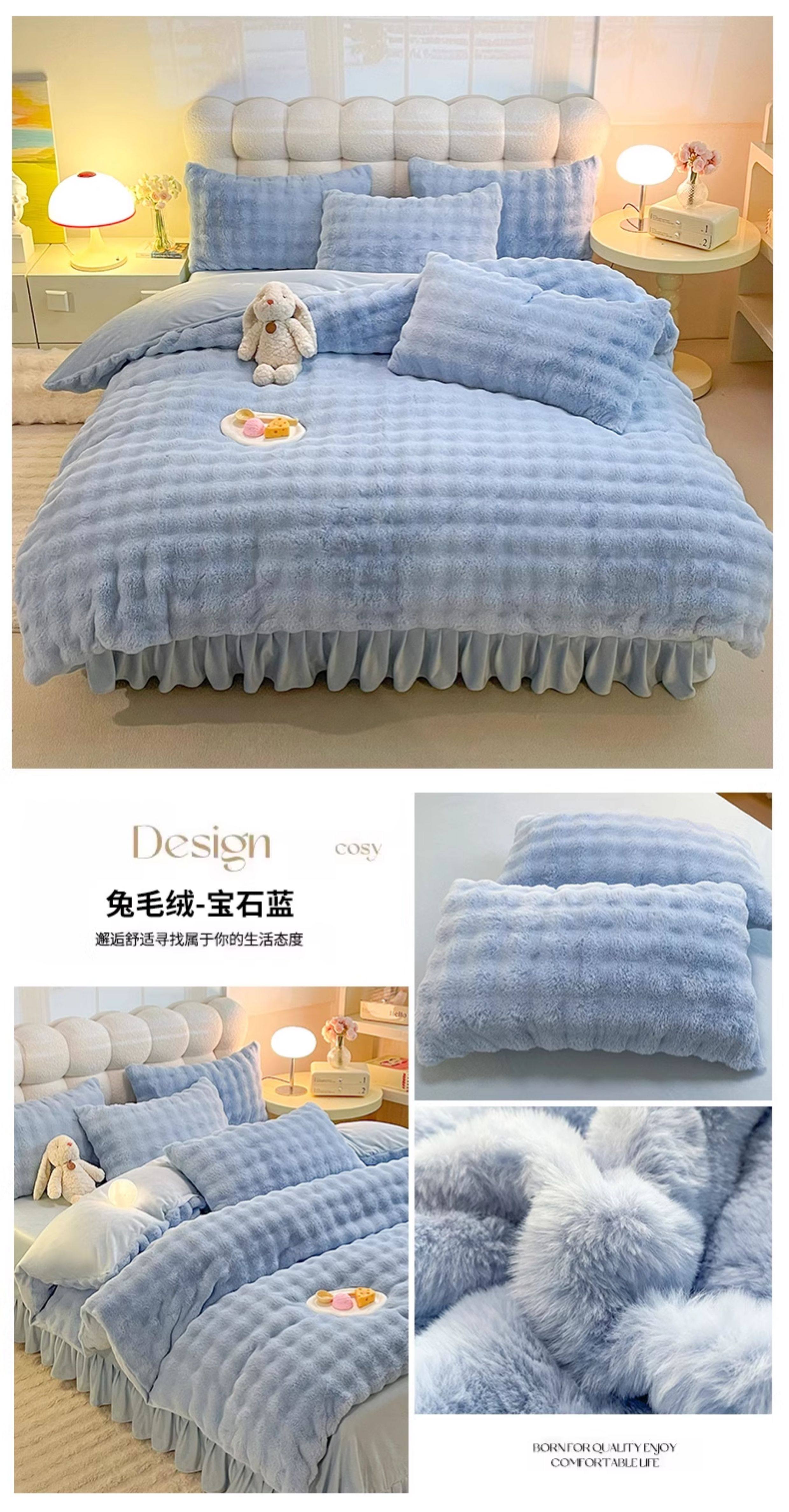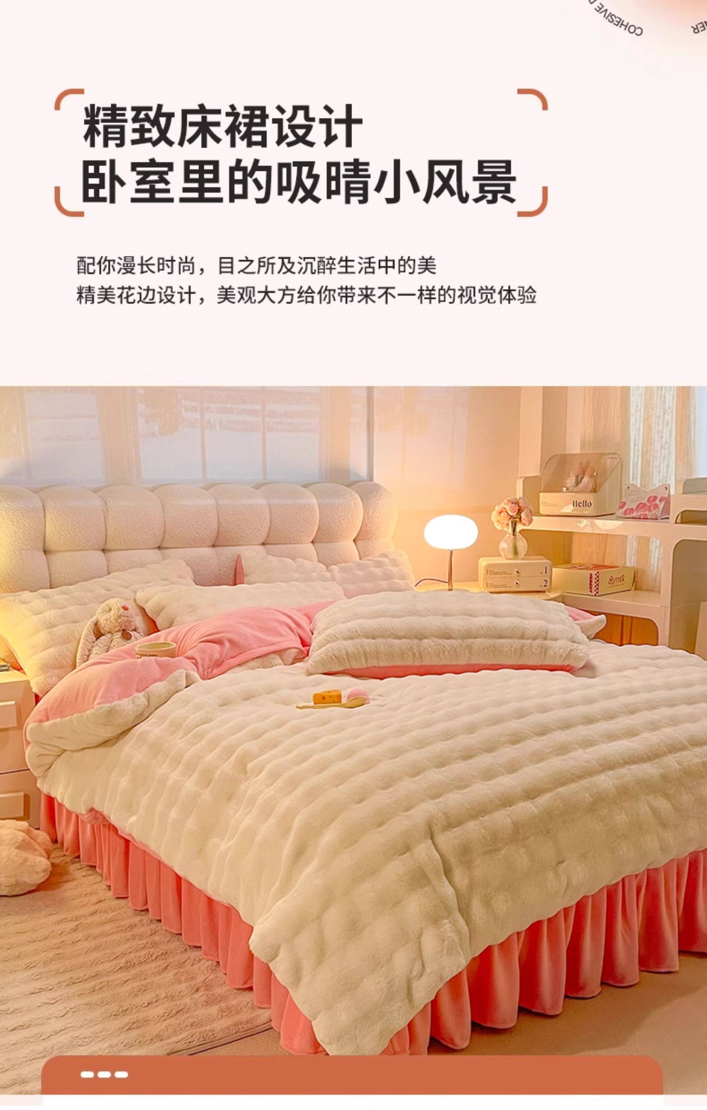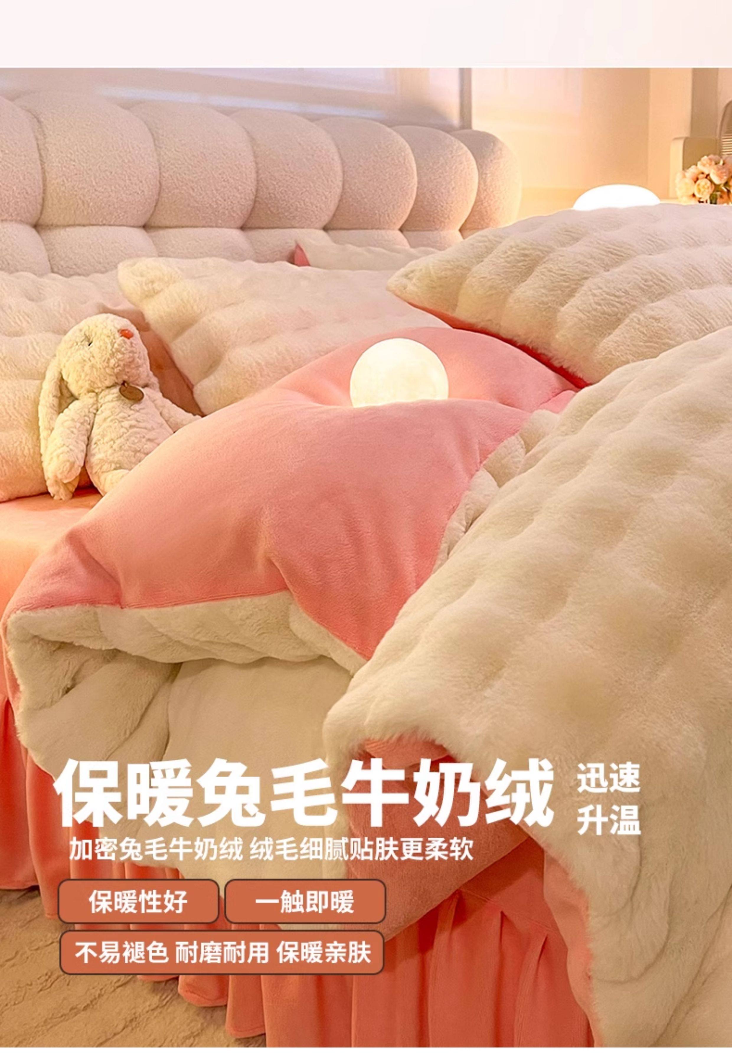 2026新款兔毛牛奶绒床裙四件套冬季加厚保暖珊瑚绒床单被套三件套