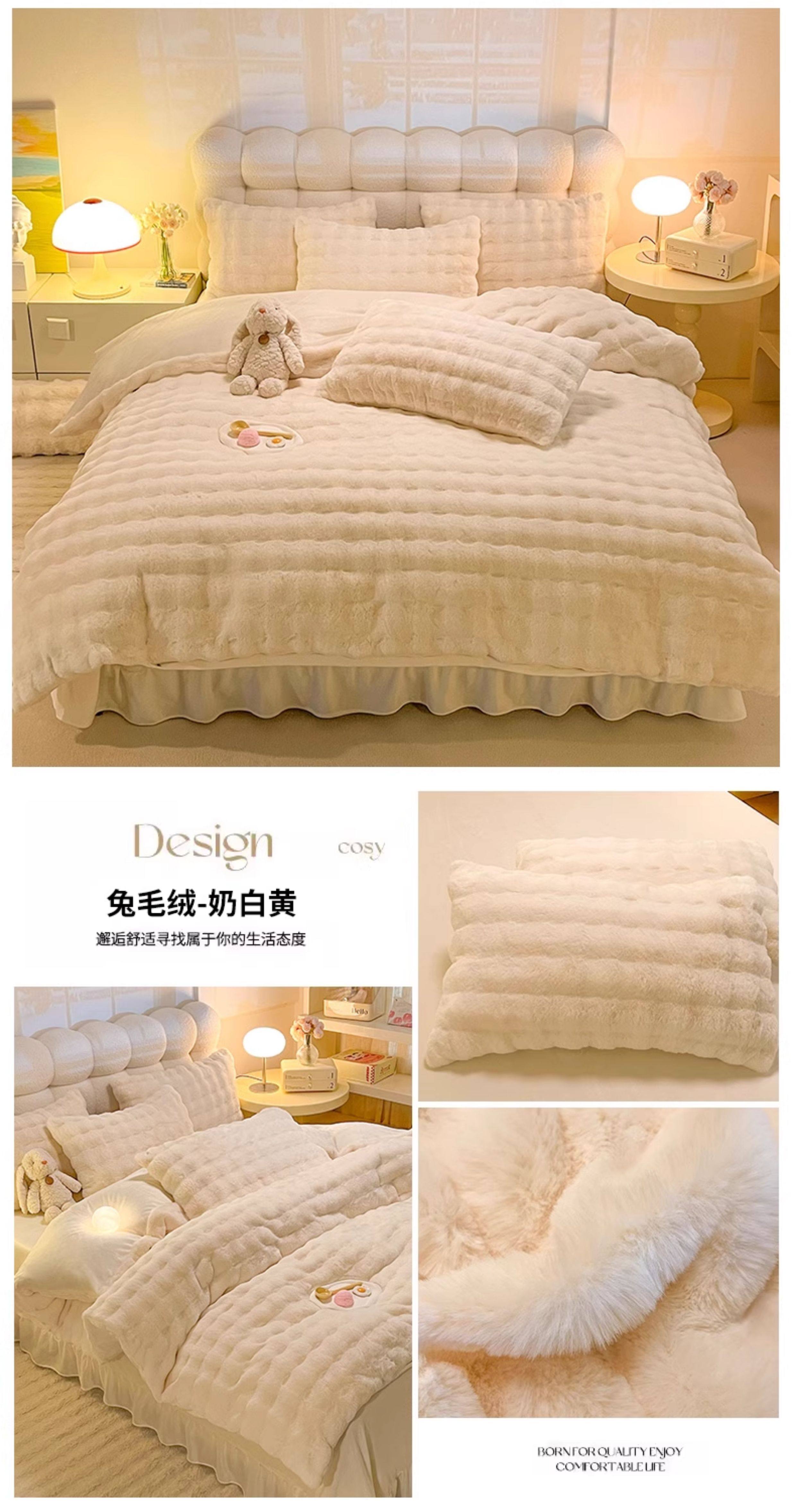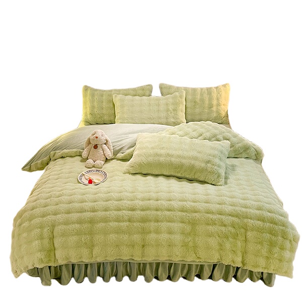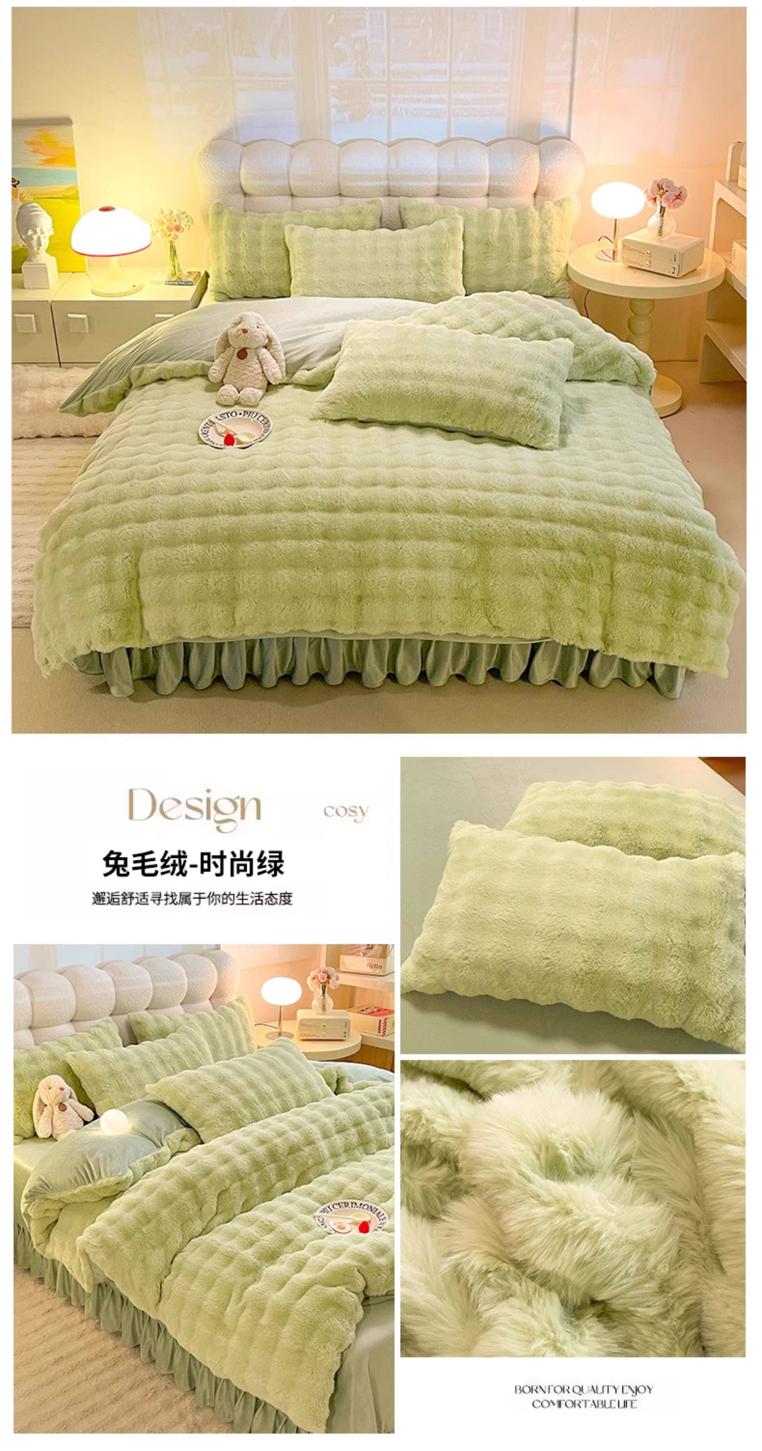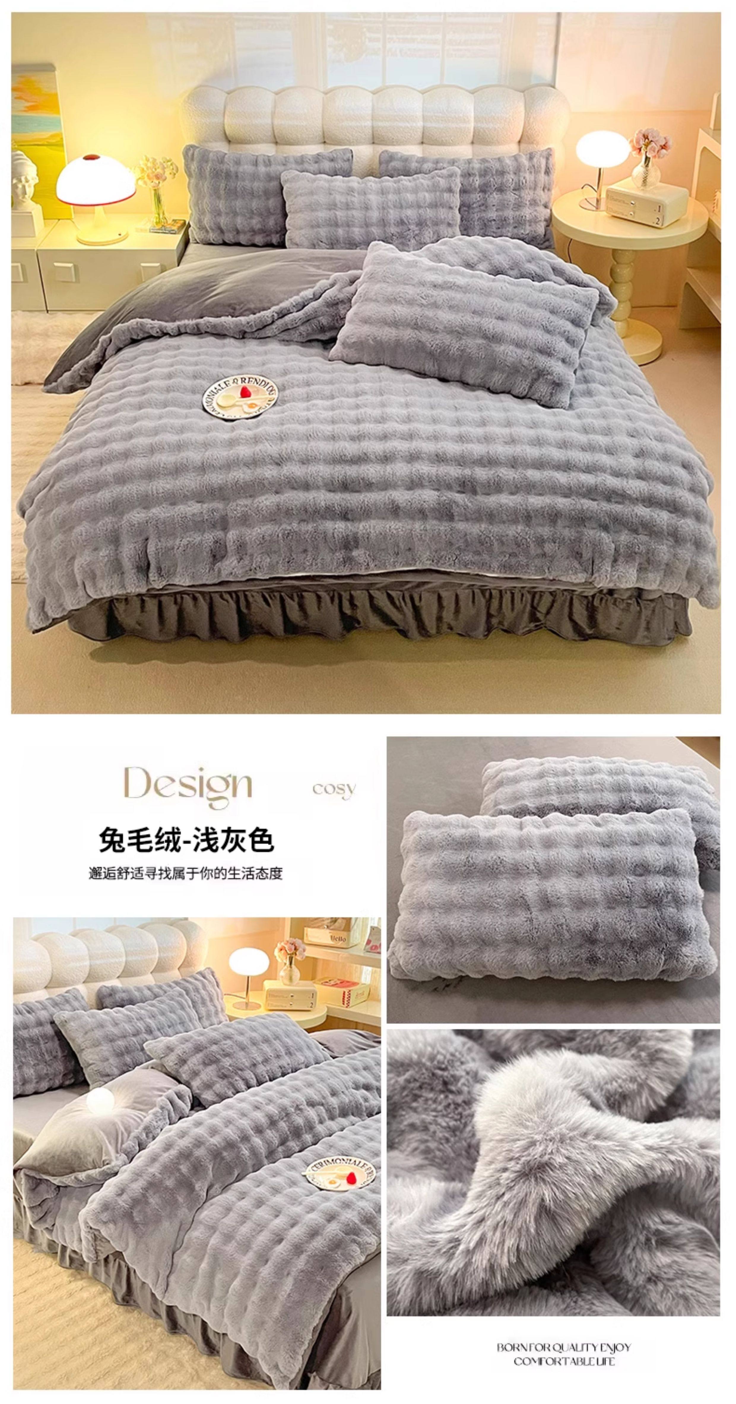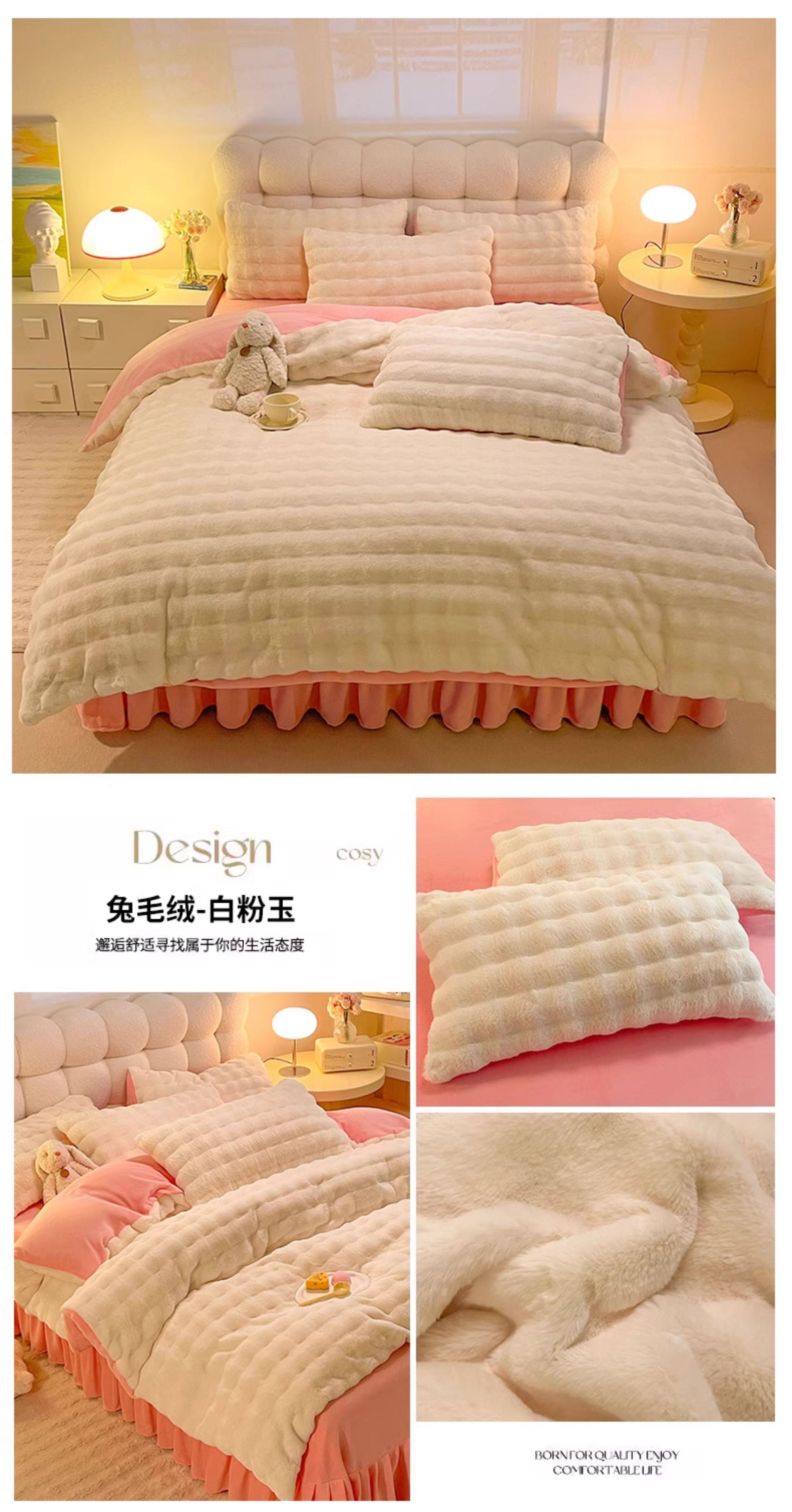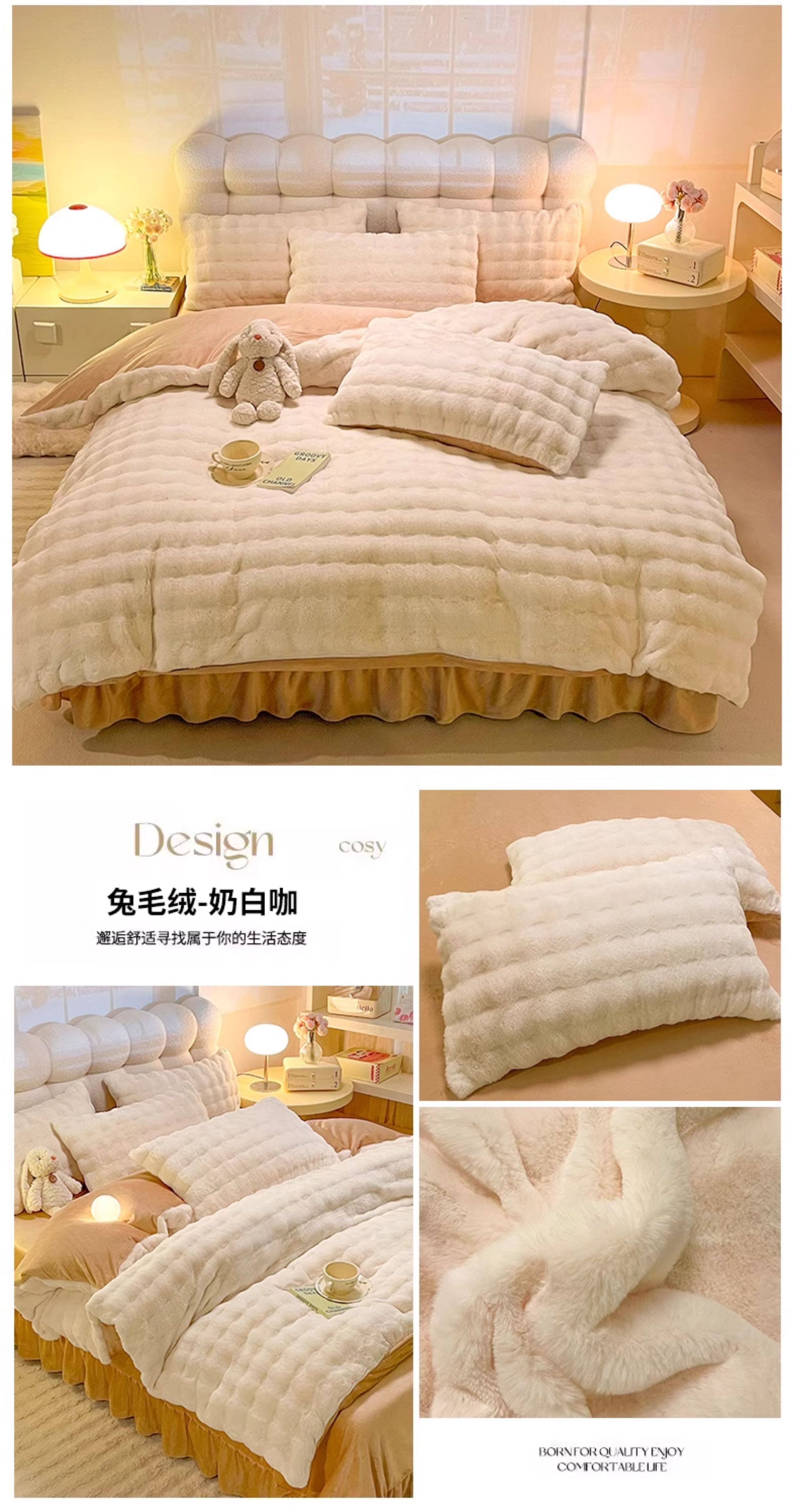 2026新款兔毛牛奶绒床裙四件套冬季加厚保暖珊瑚绒床单被套三件套