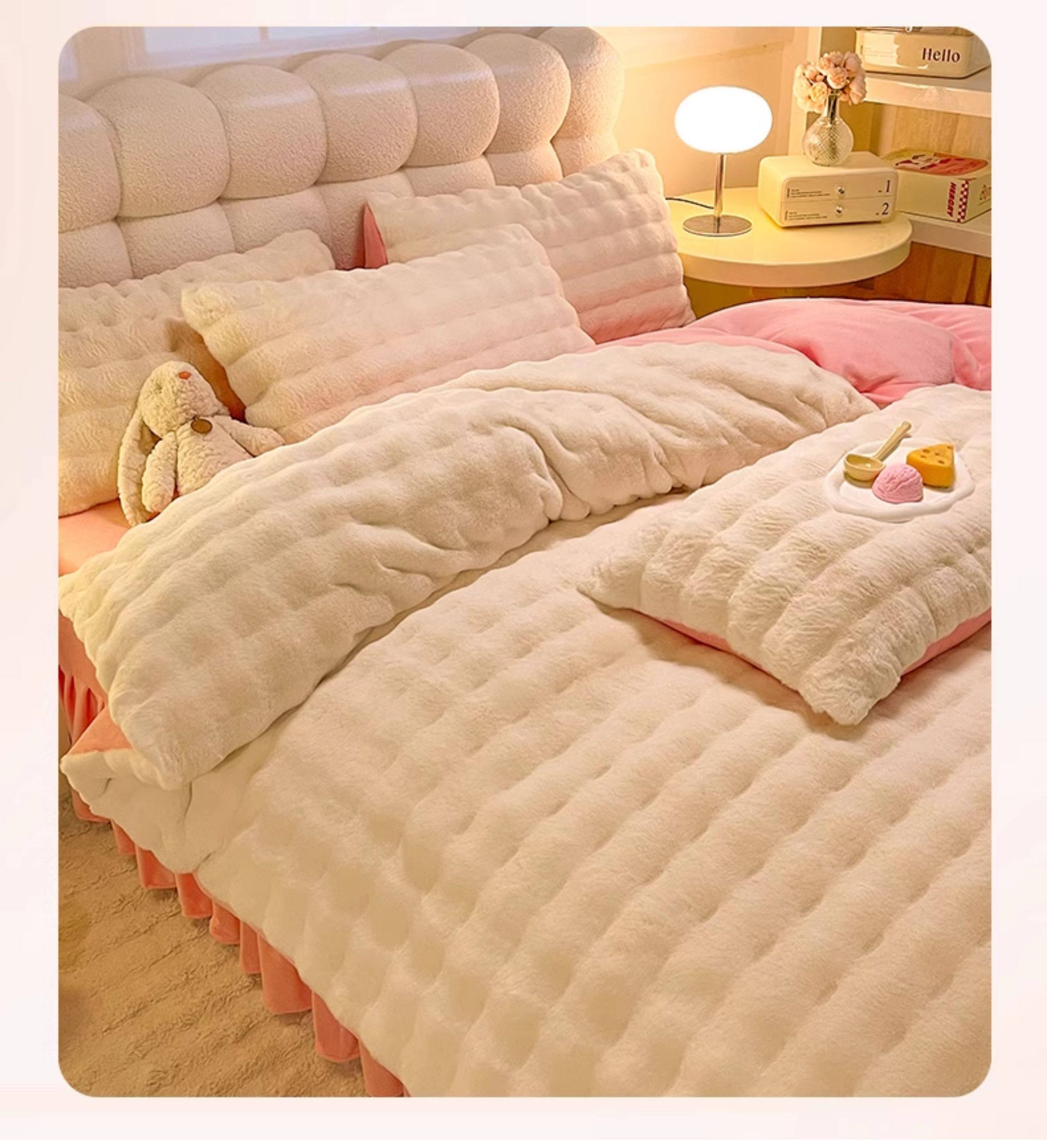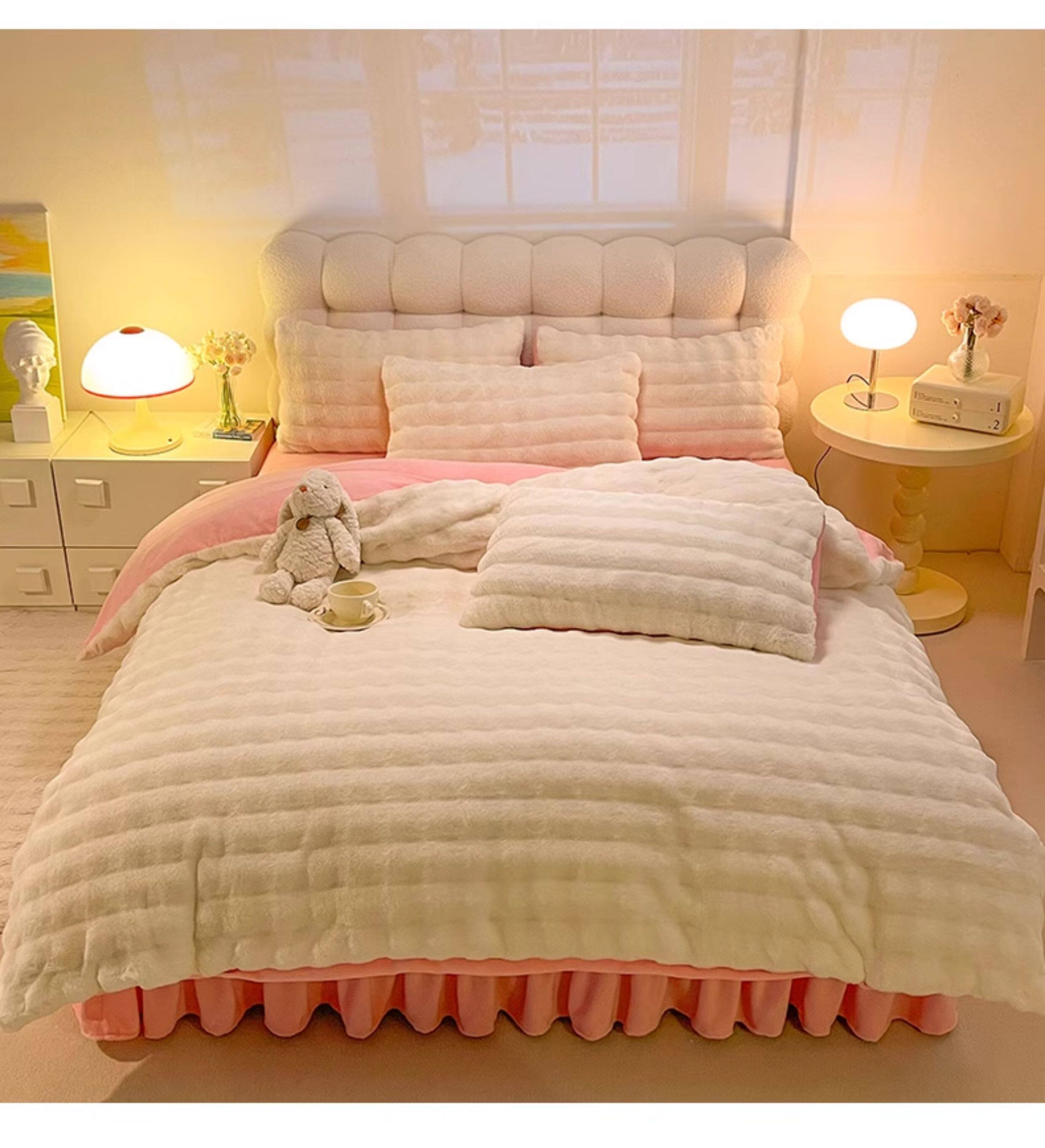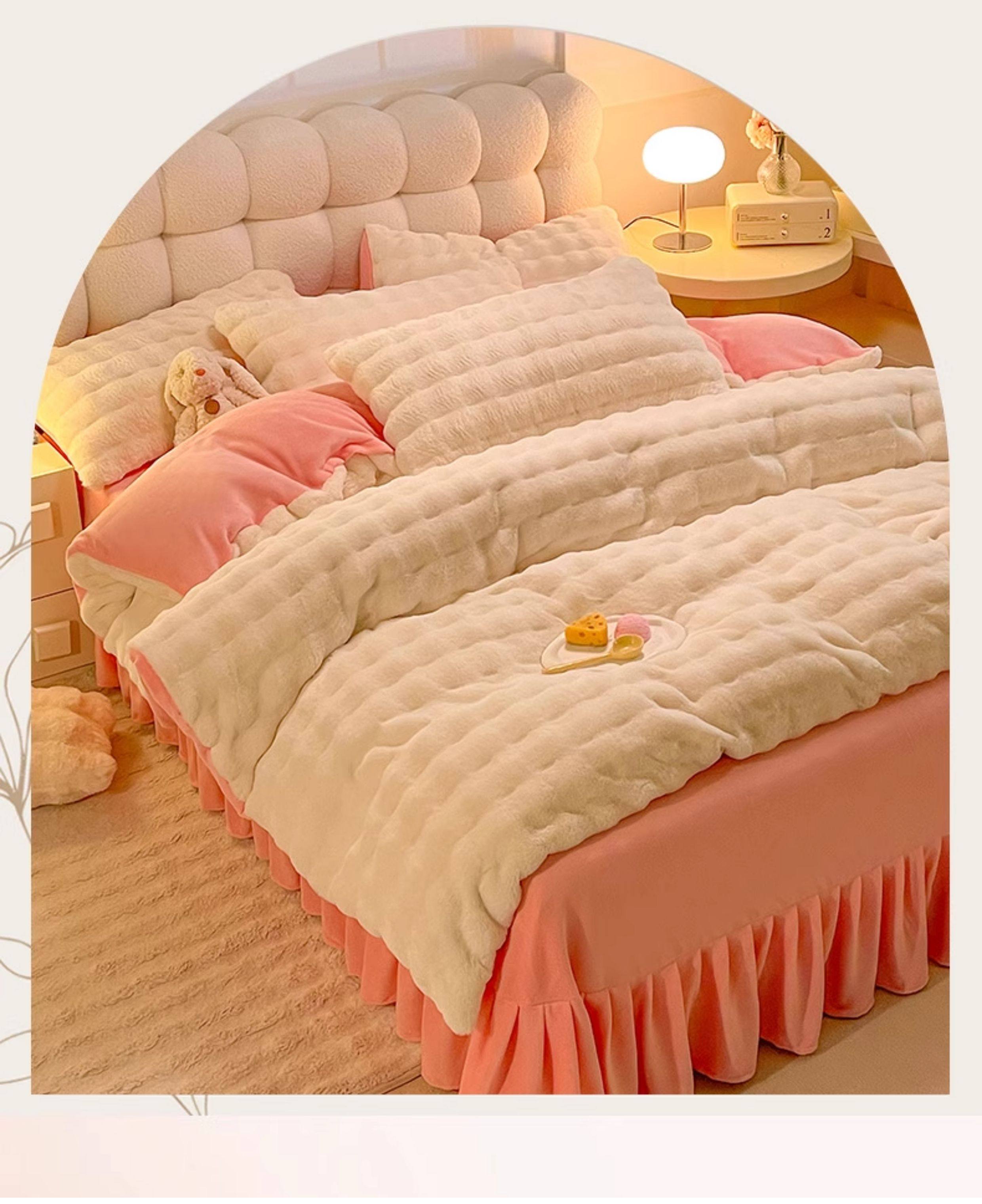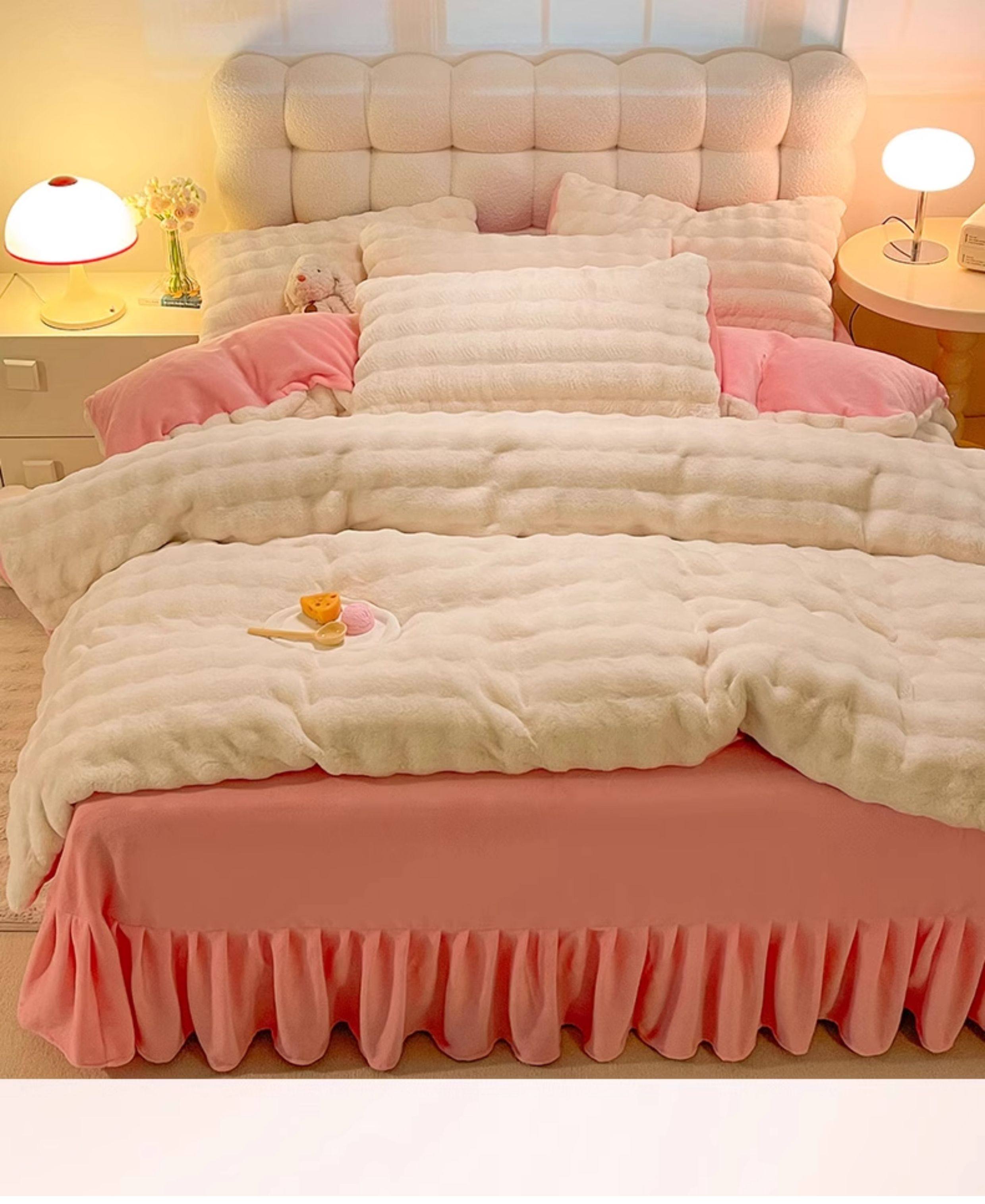 2026新款兔毛牛奶绒床裙四件套冬季加厚保暖珊瑚绒床单被套三件套