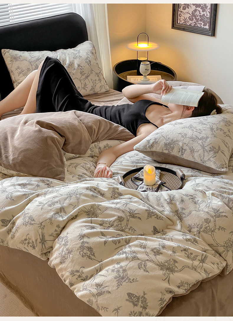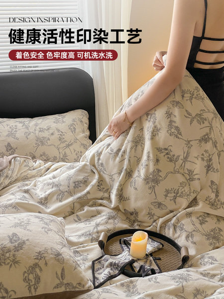 无印良品冬季牛奶绒床上四件套2025新款珊瑚绒床单被套床品三件套