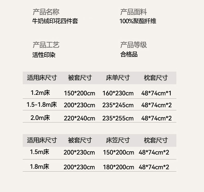 1.8m床笠款四件套【适合200*230cm被子】