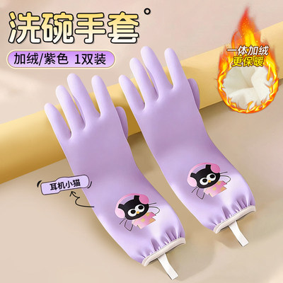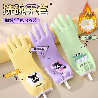 洗碗手套厨房家务清洁耐用型秋冬加厚防水洗衣服乳胶橡胶胶皮加绒