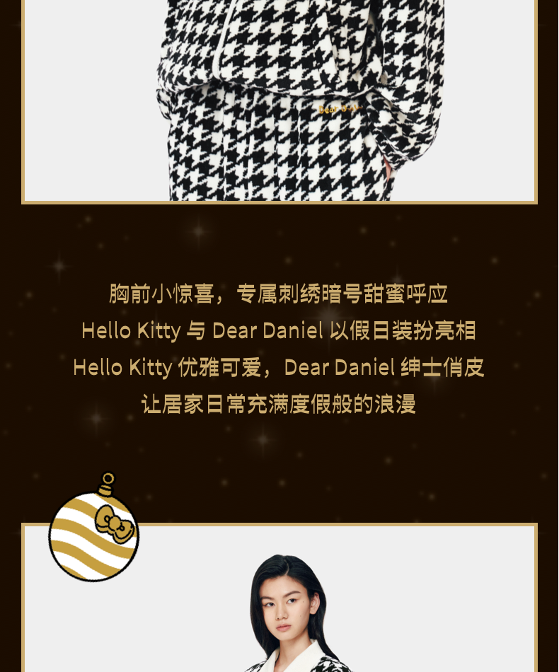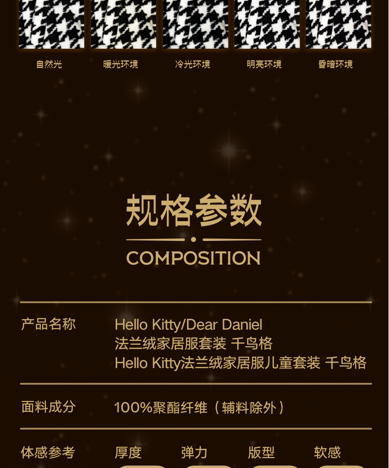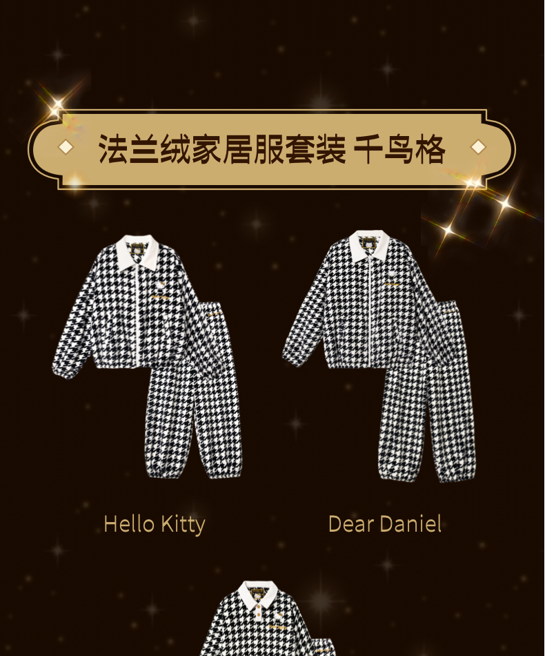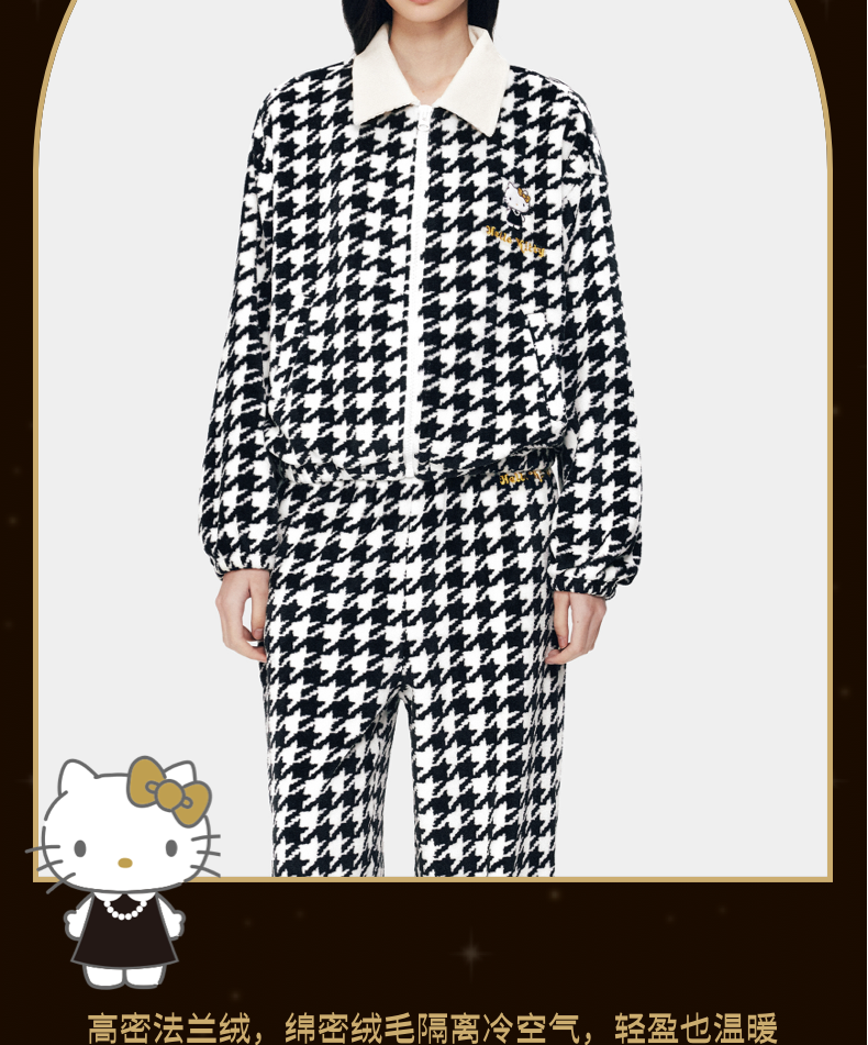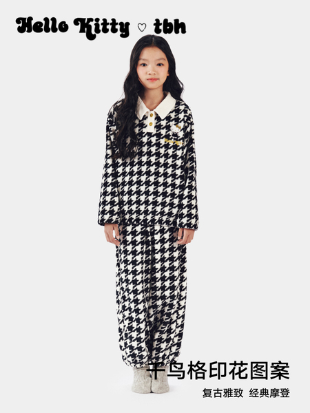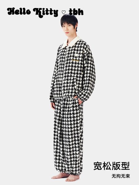 Hello Kitty法兰绒家居服套装 千鸟格