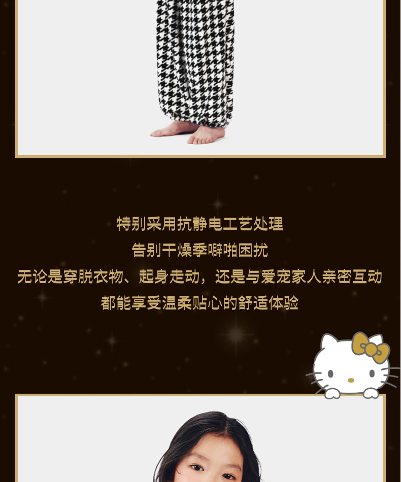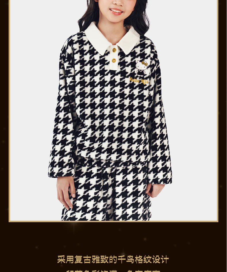 Hello Kitty法兰绒家居服儿童套装 千鸟格