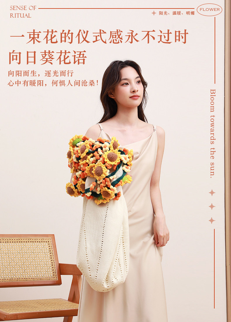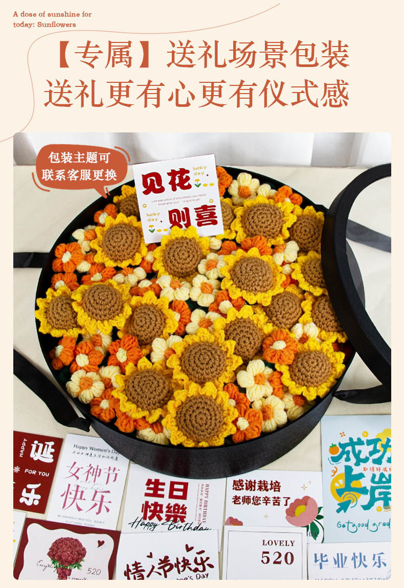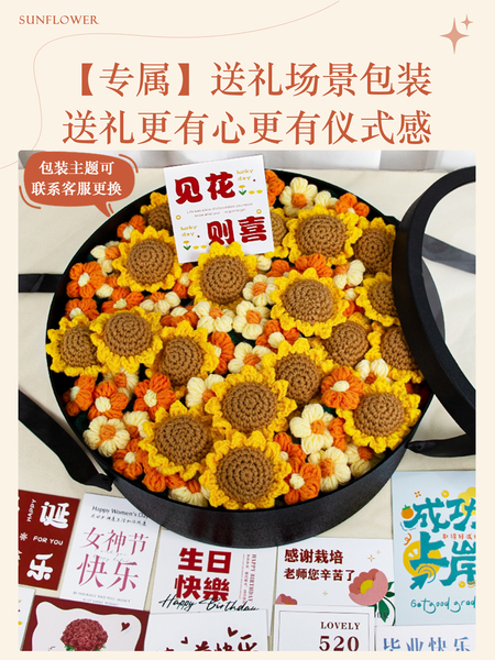 【向日葵】【中号-成品52朵-直径110cm】粉色精美礼盒礼袋